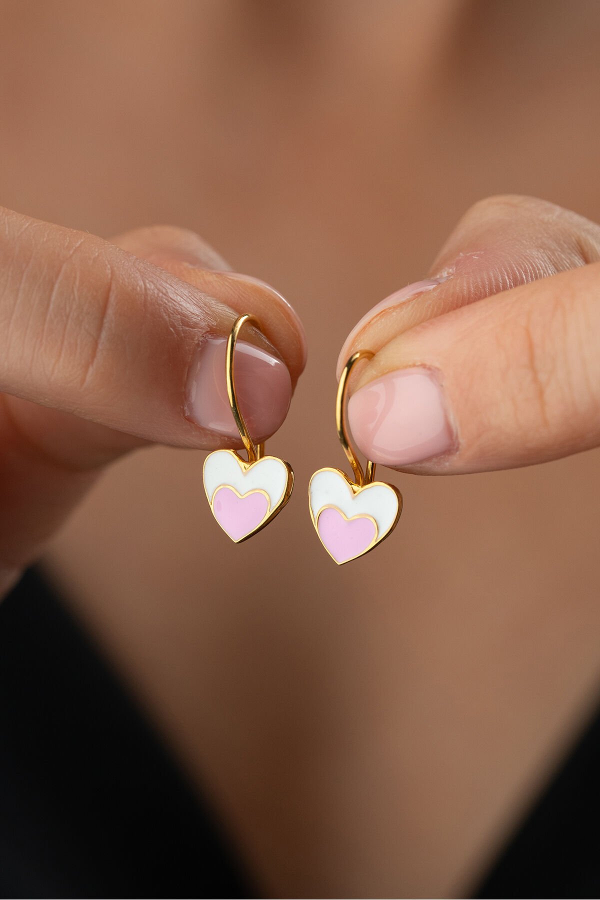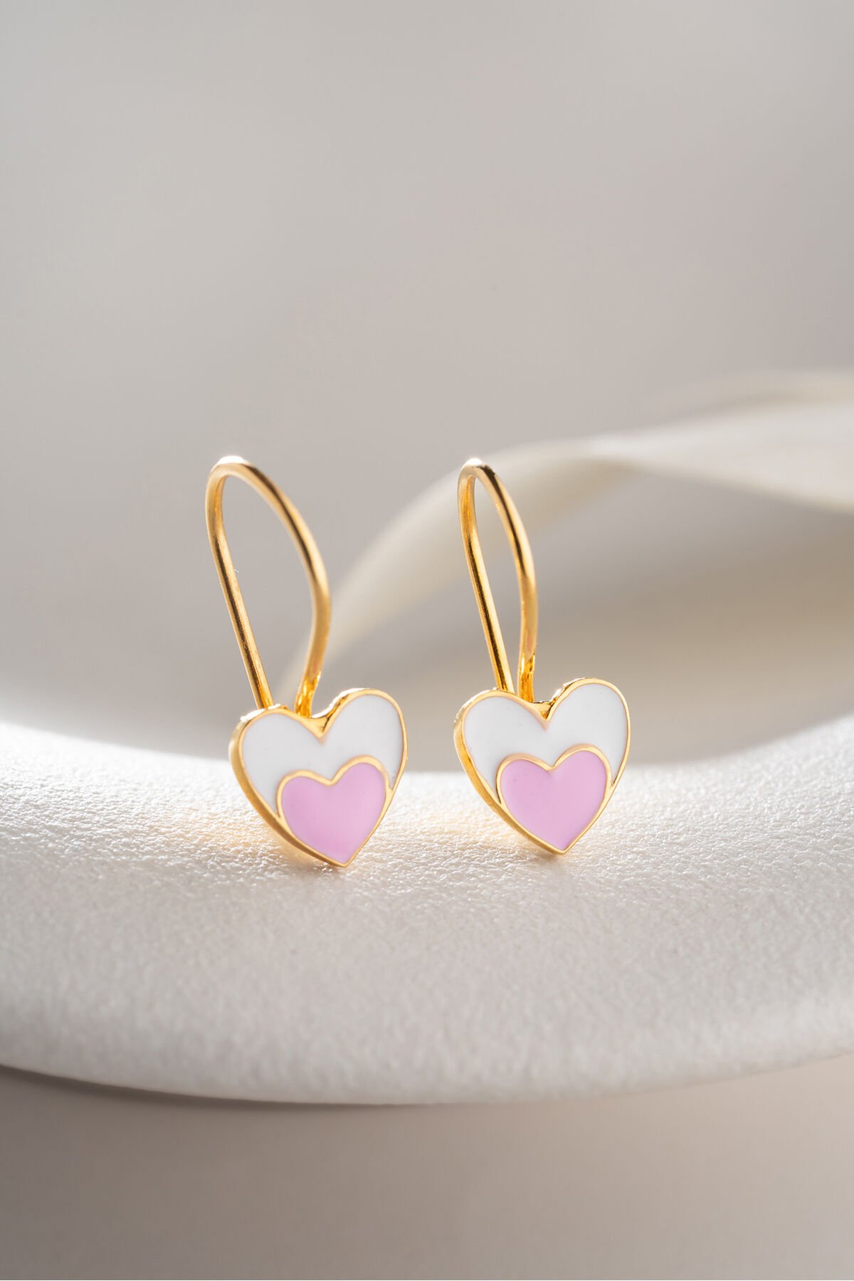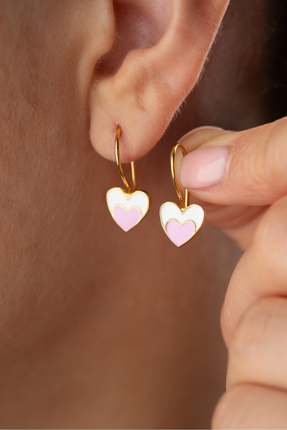 925 Ayar Gümüş Altın Kaplama Çocuk Kalpli Küpe