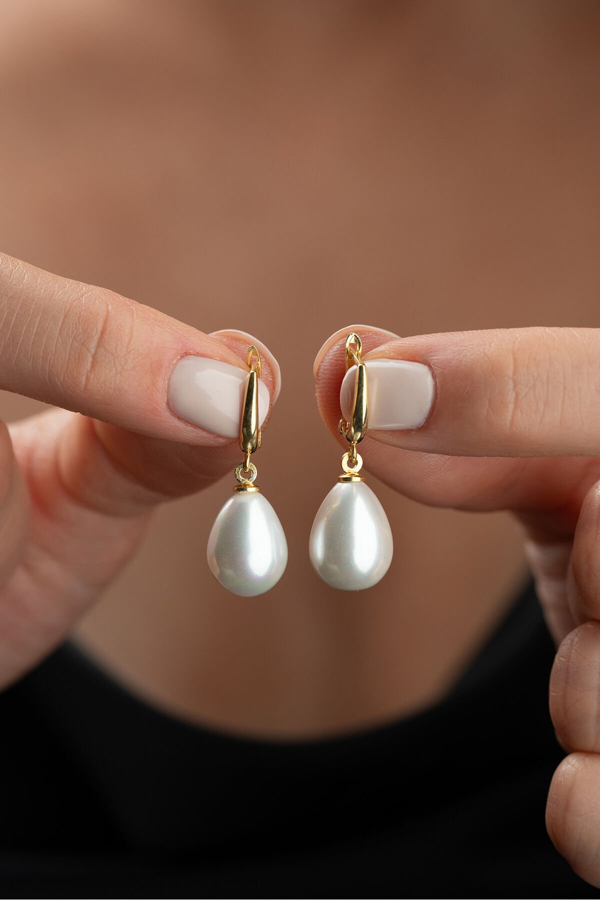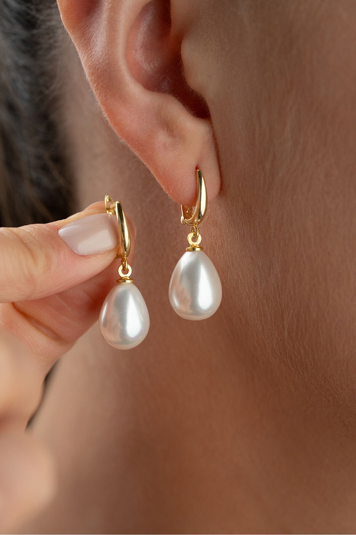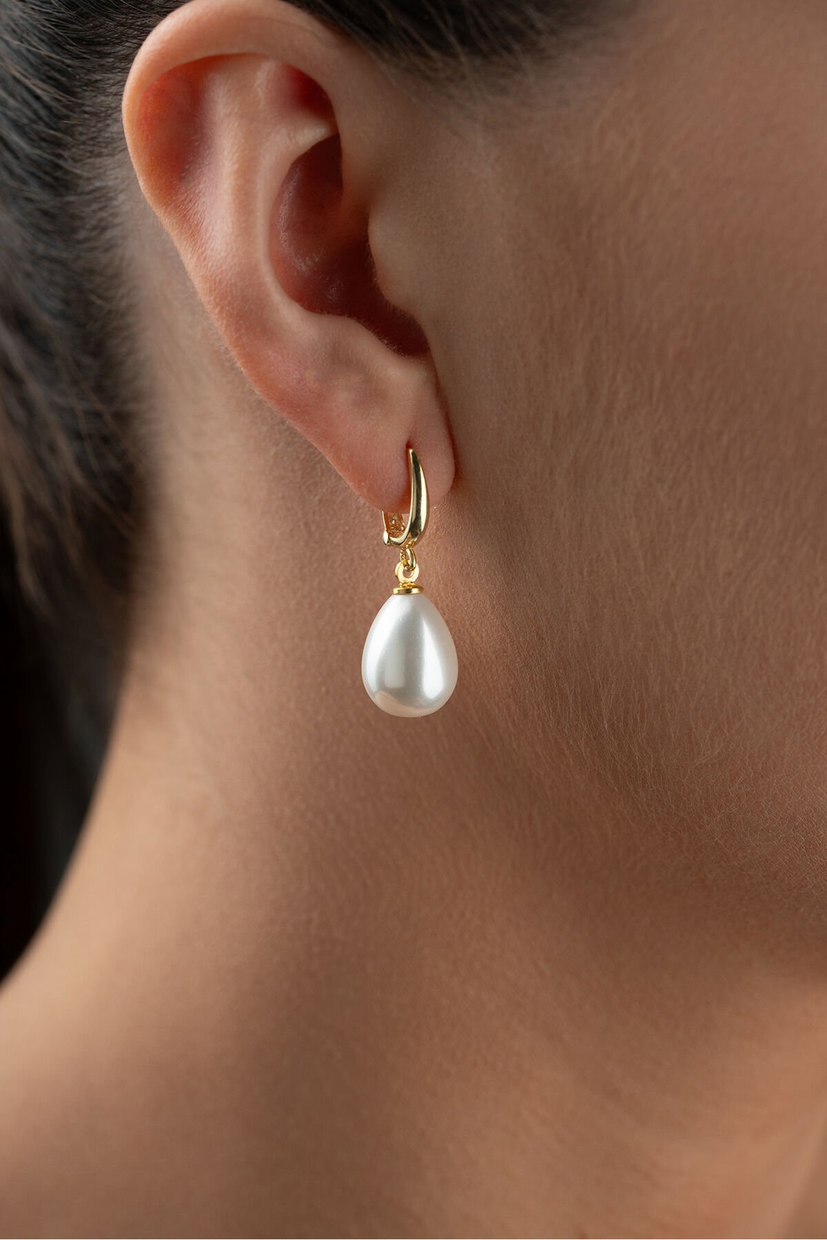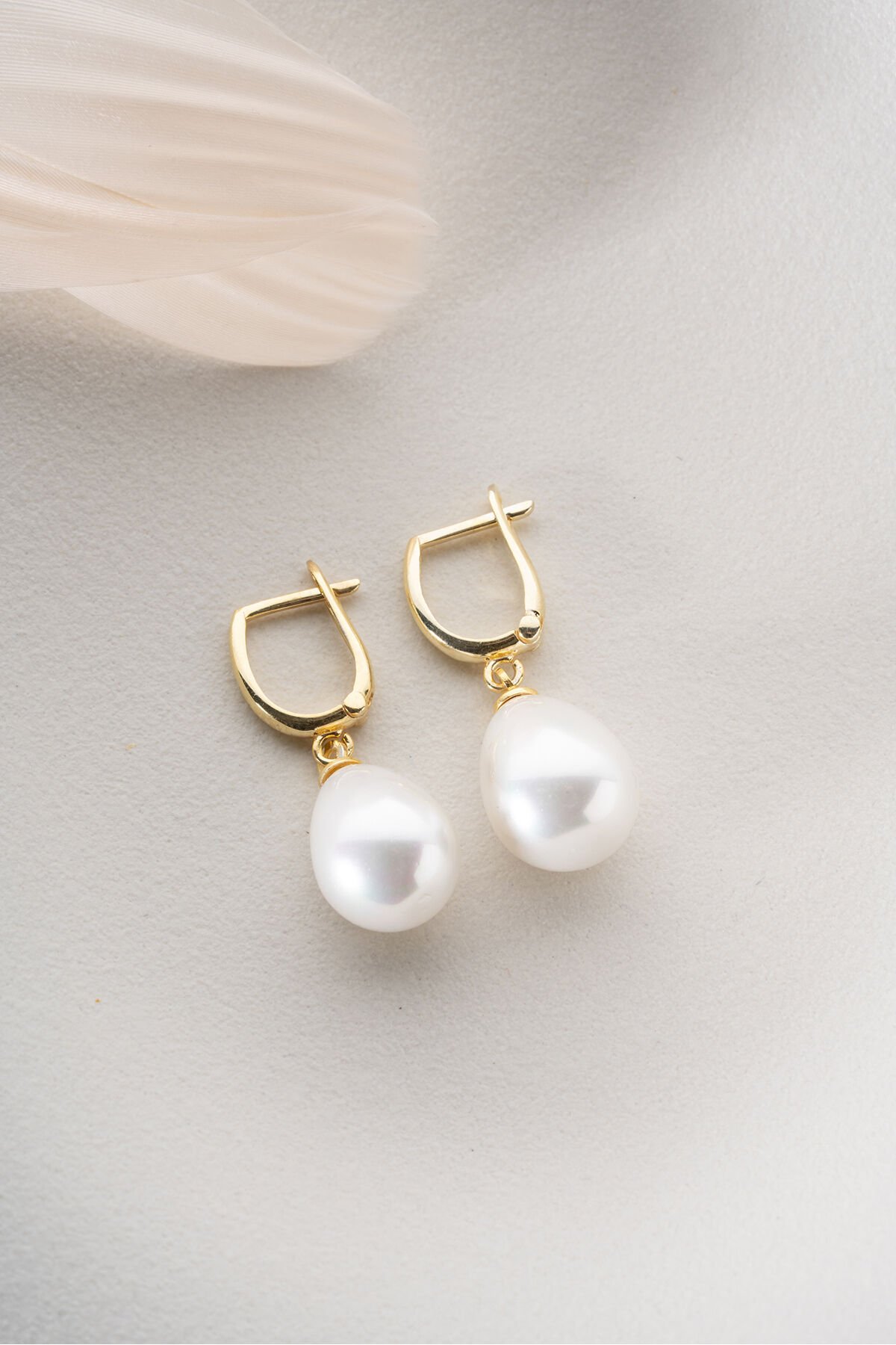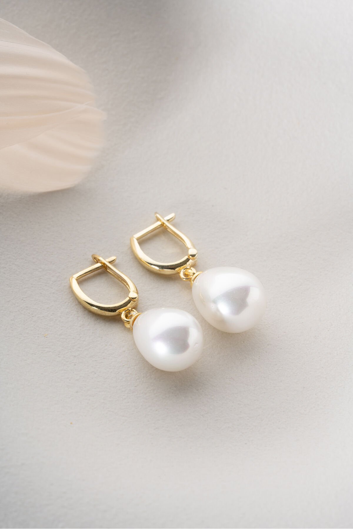 925 Ayar Gümüş Altın Kaplama Damla İnci Küpe