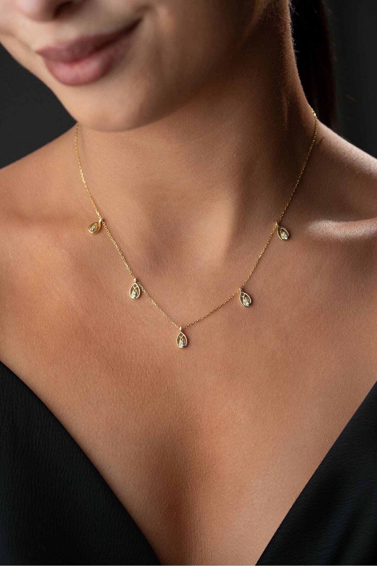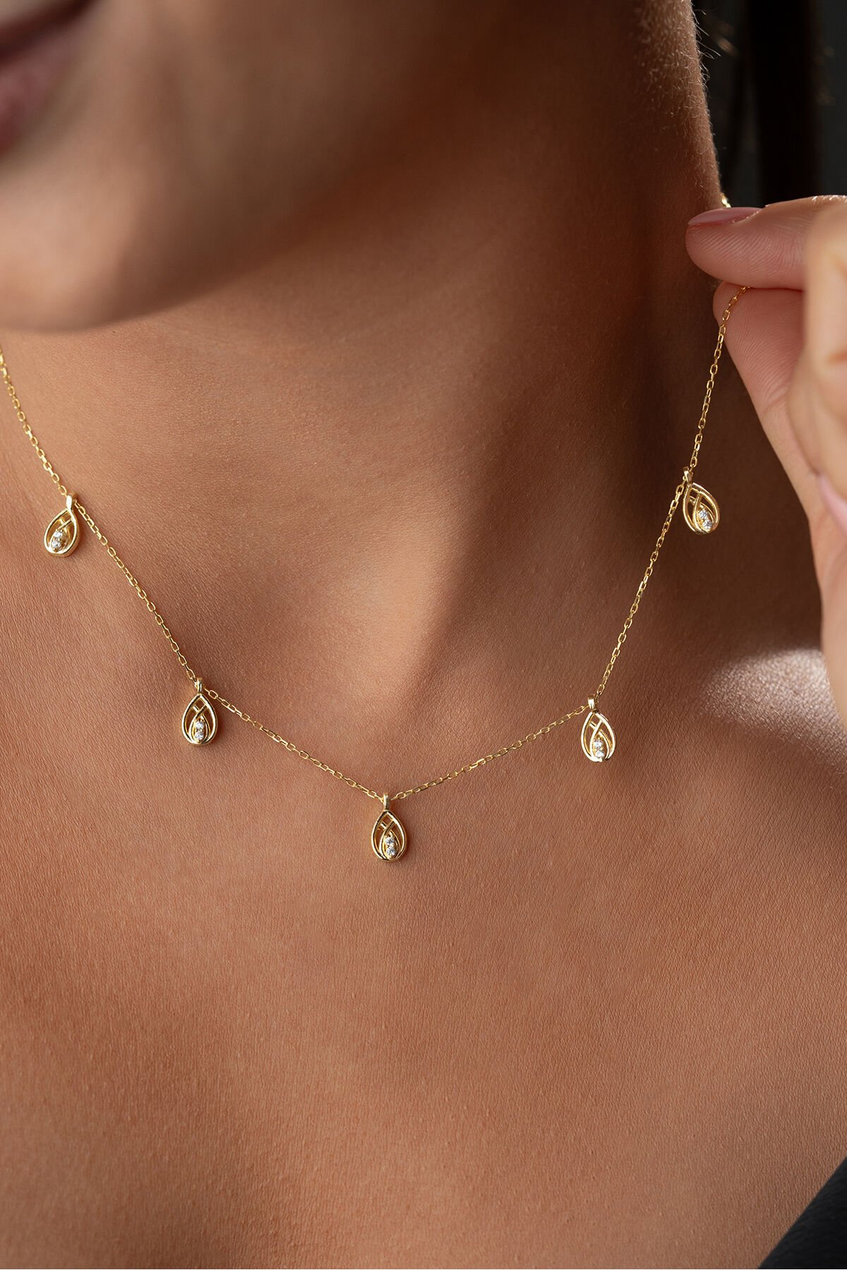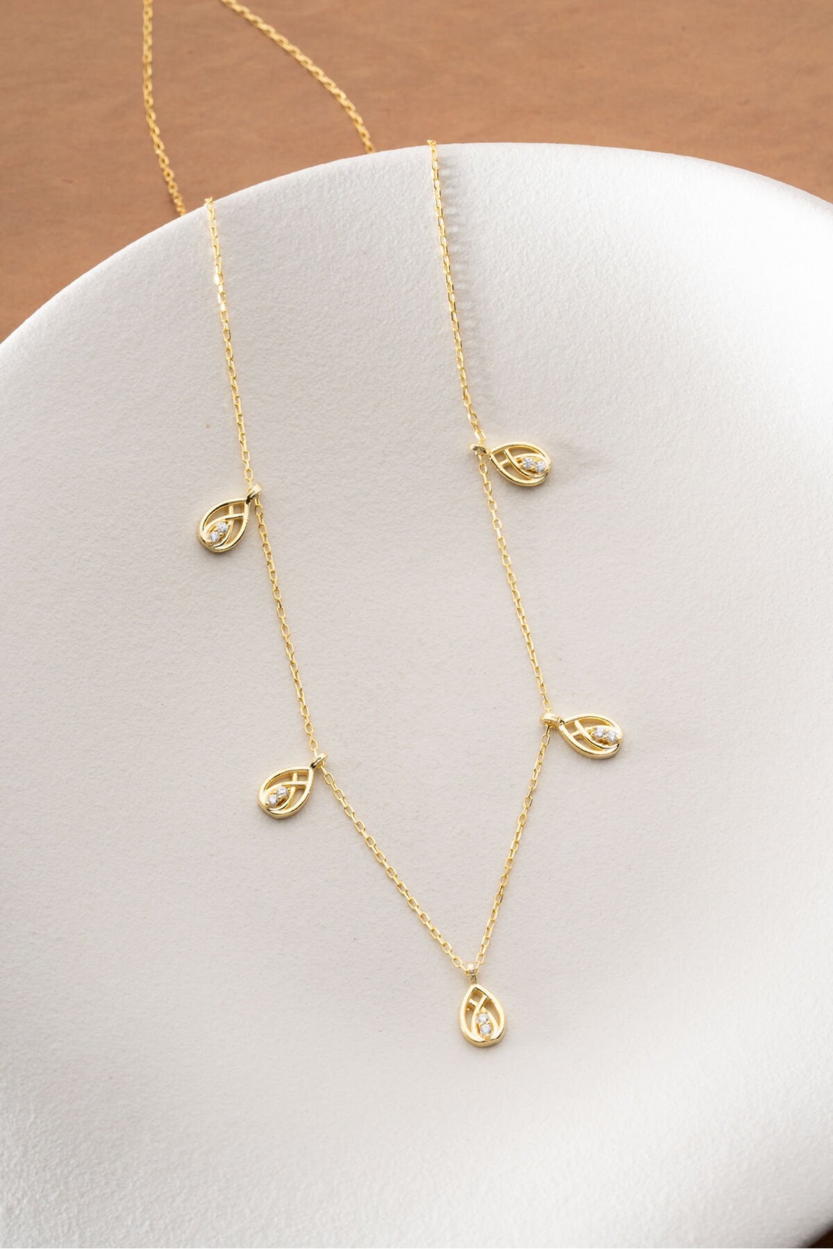 925 Ayar Gümüş Altın Kaplama Damla Model Şans Kolye