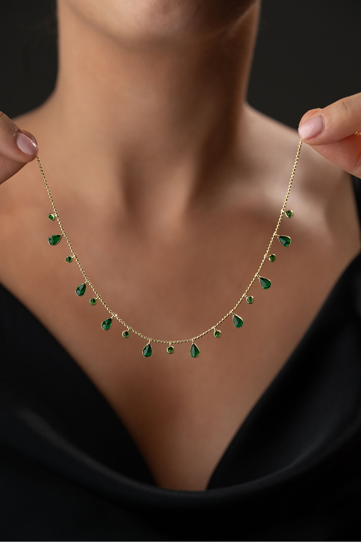 925 Ayar Gümüş Altın Kaplama Damla Model Trend Kolye