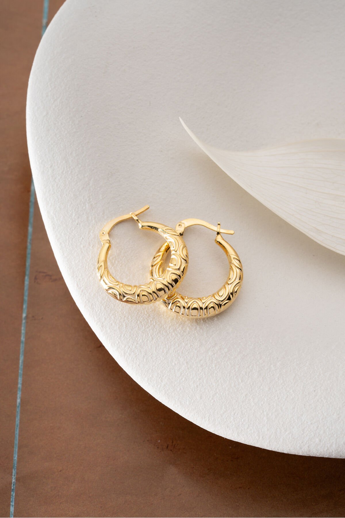 925 Ayar Gümüş Altın Kaplama Desenli Model Küpe