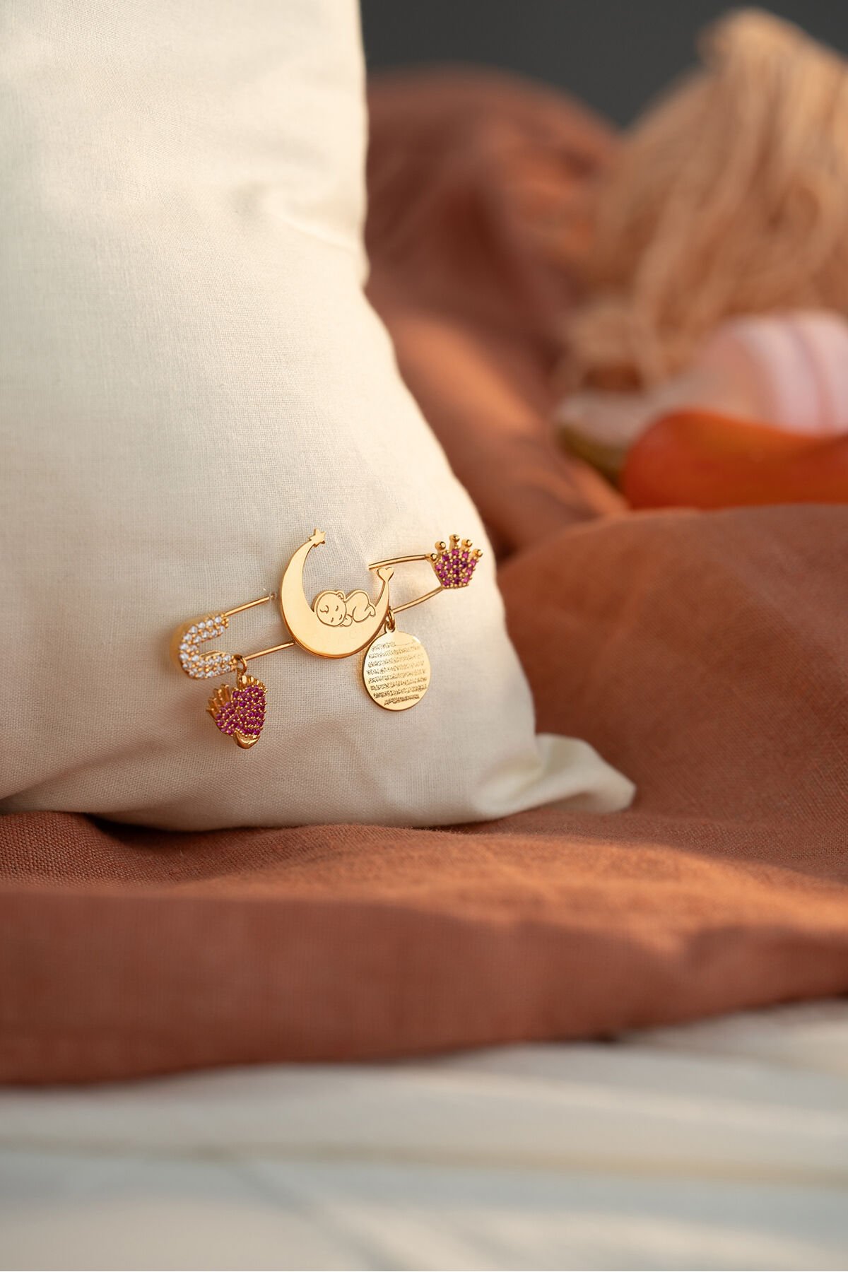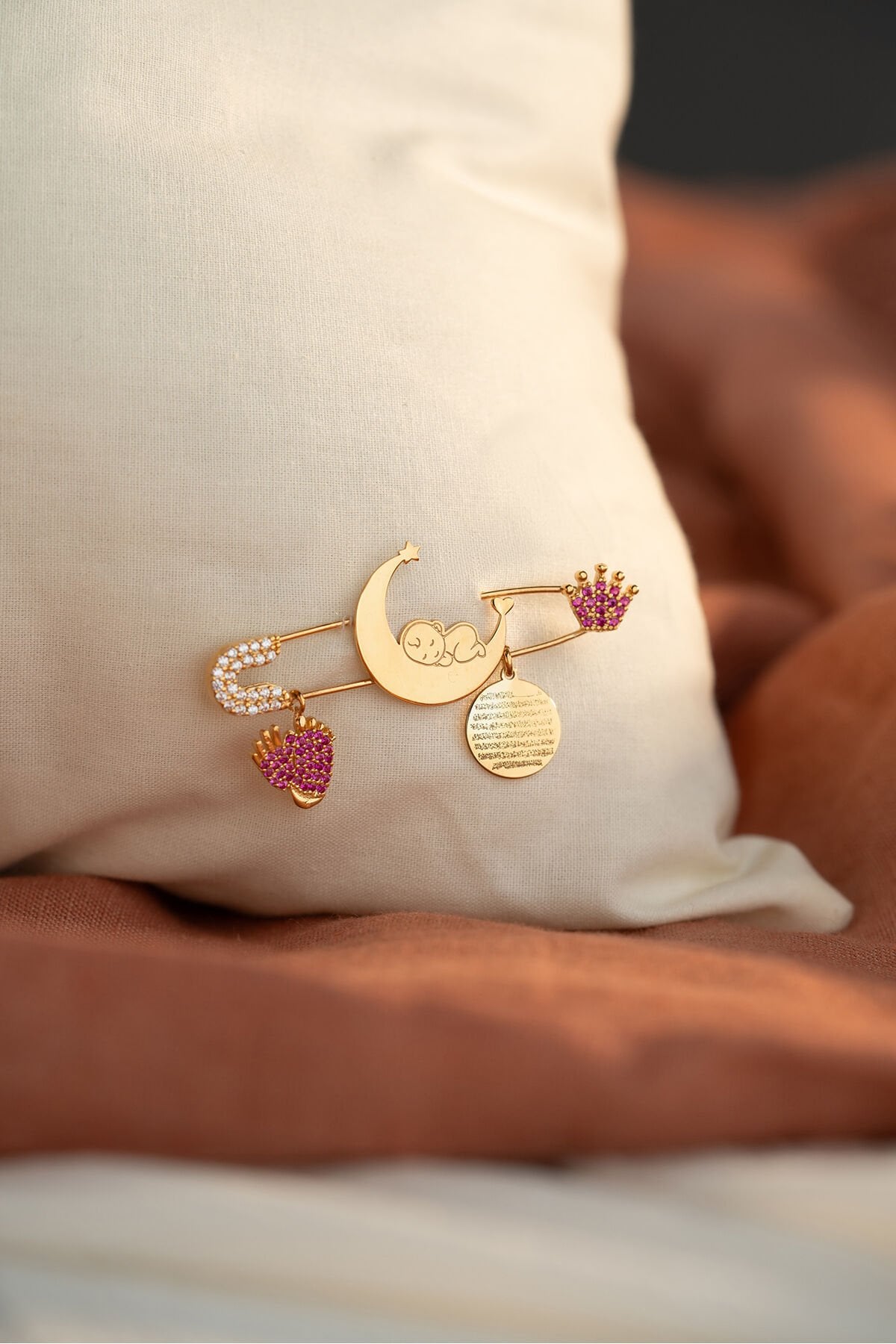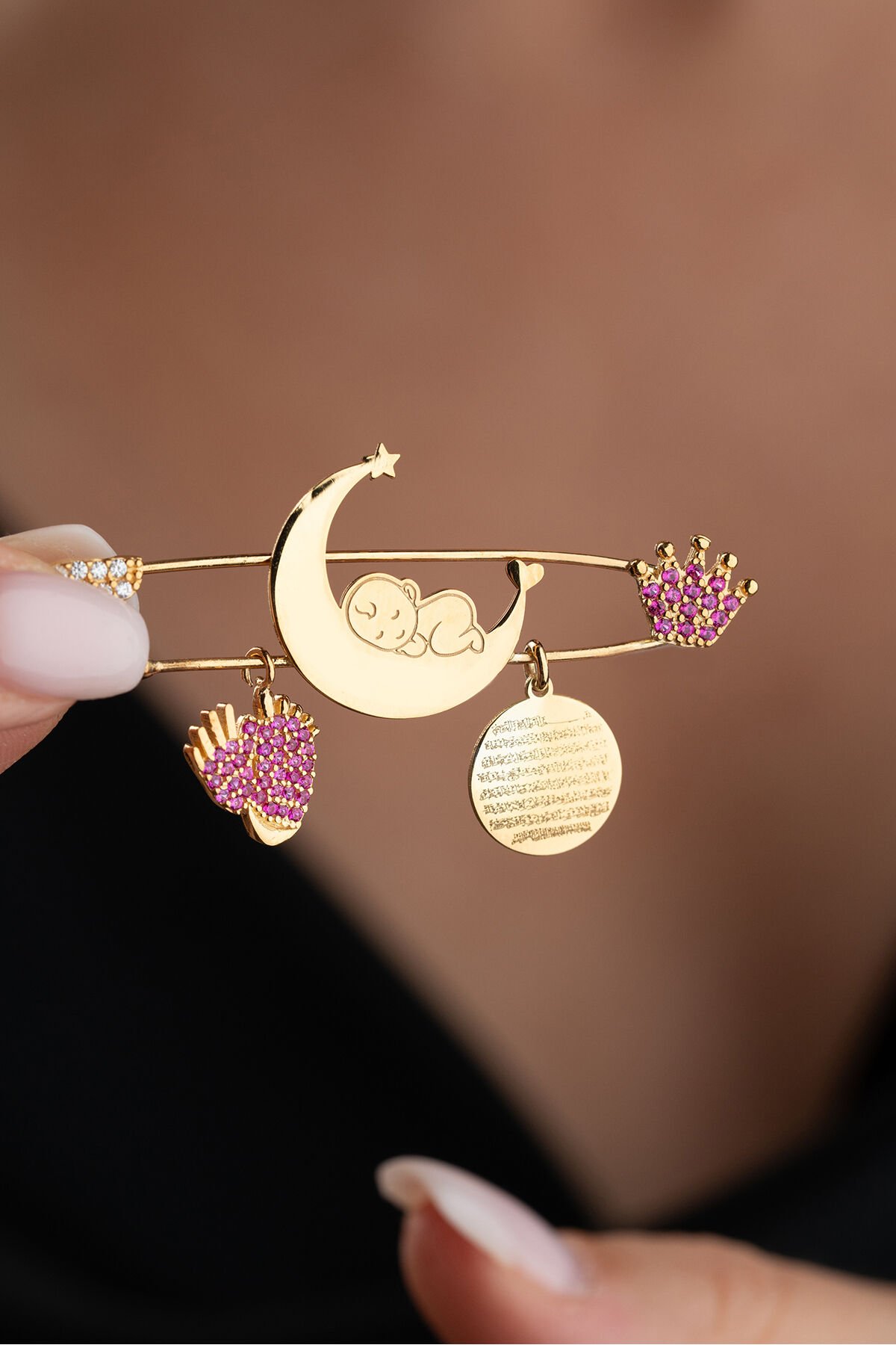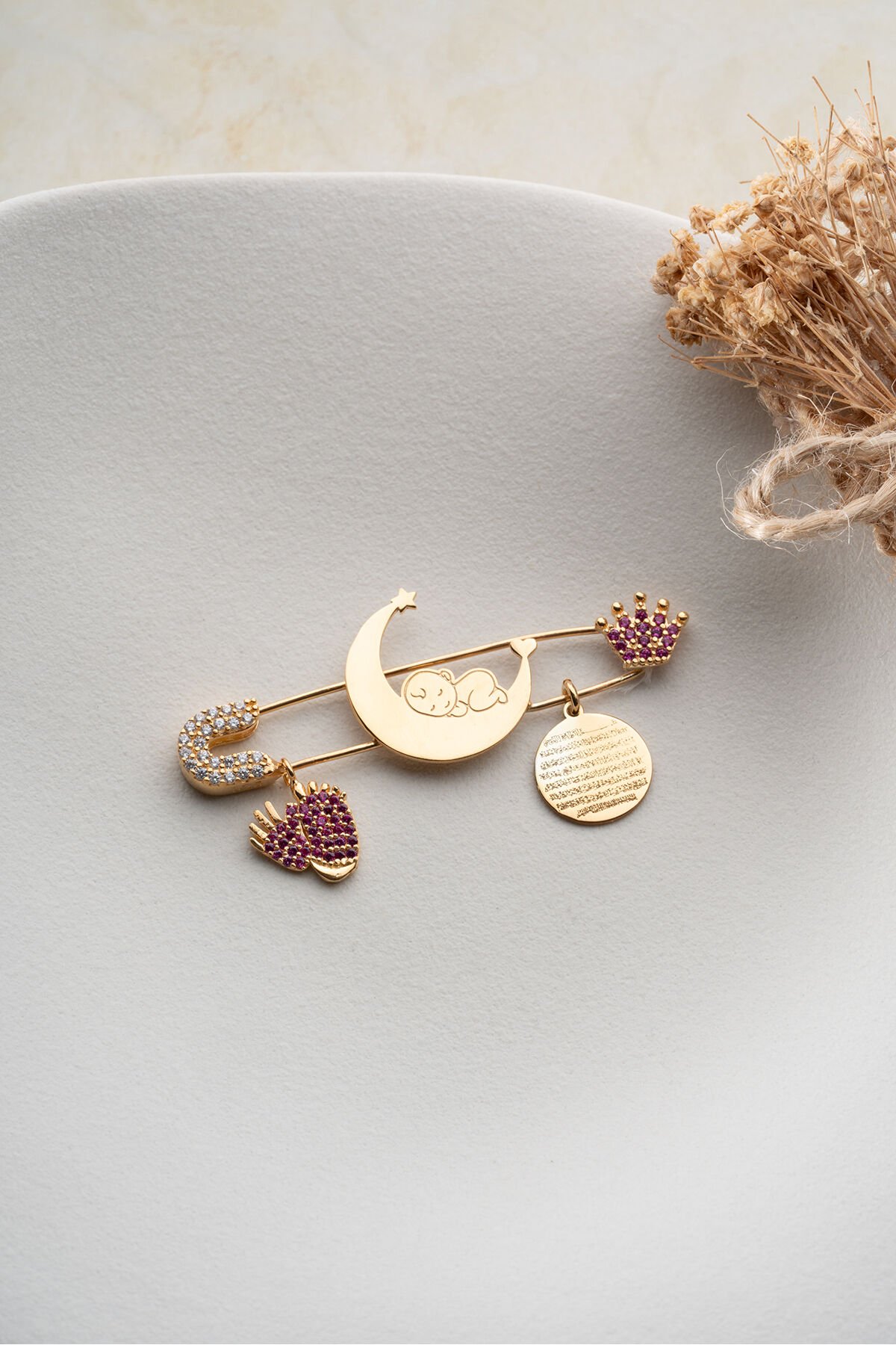 925 Ayar Gümüş Altın Kaplama Dualı Bebek İğnesi