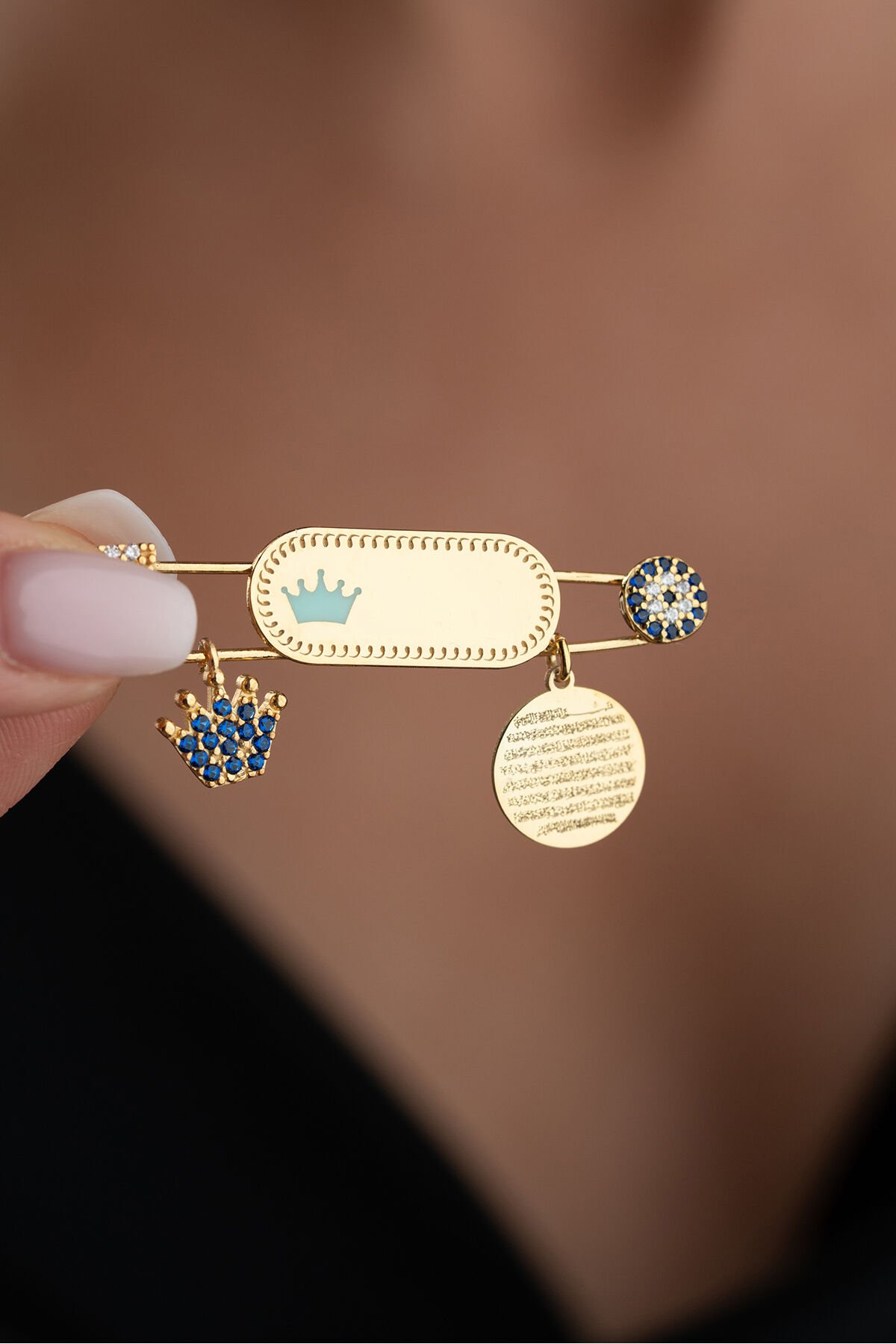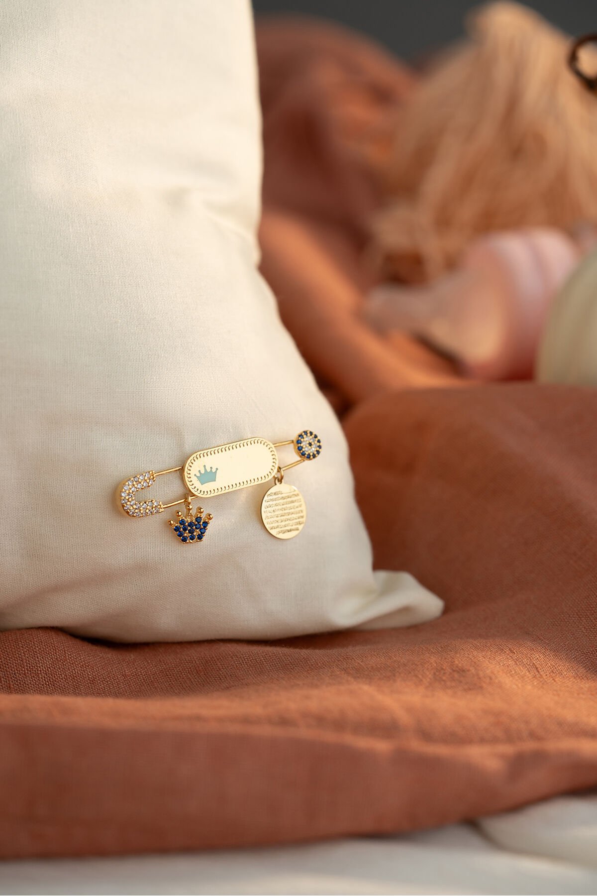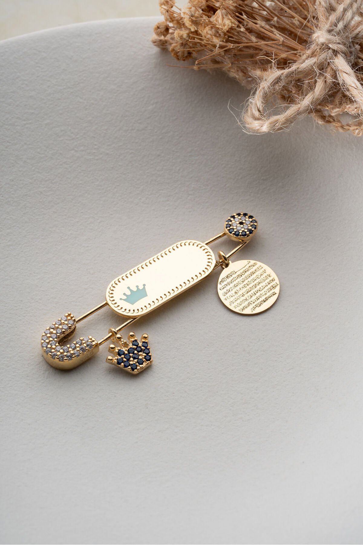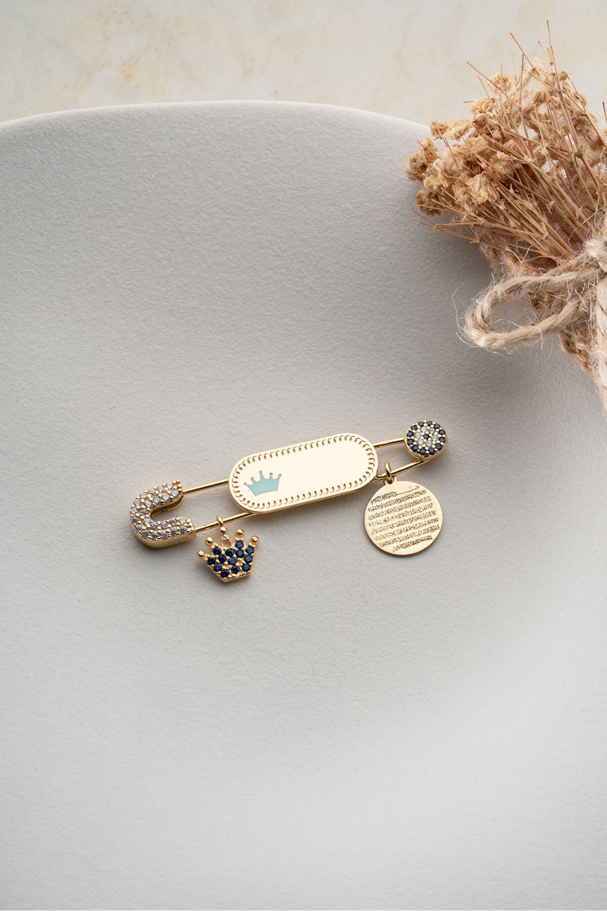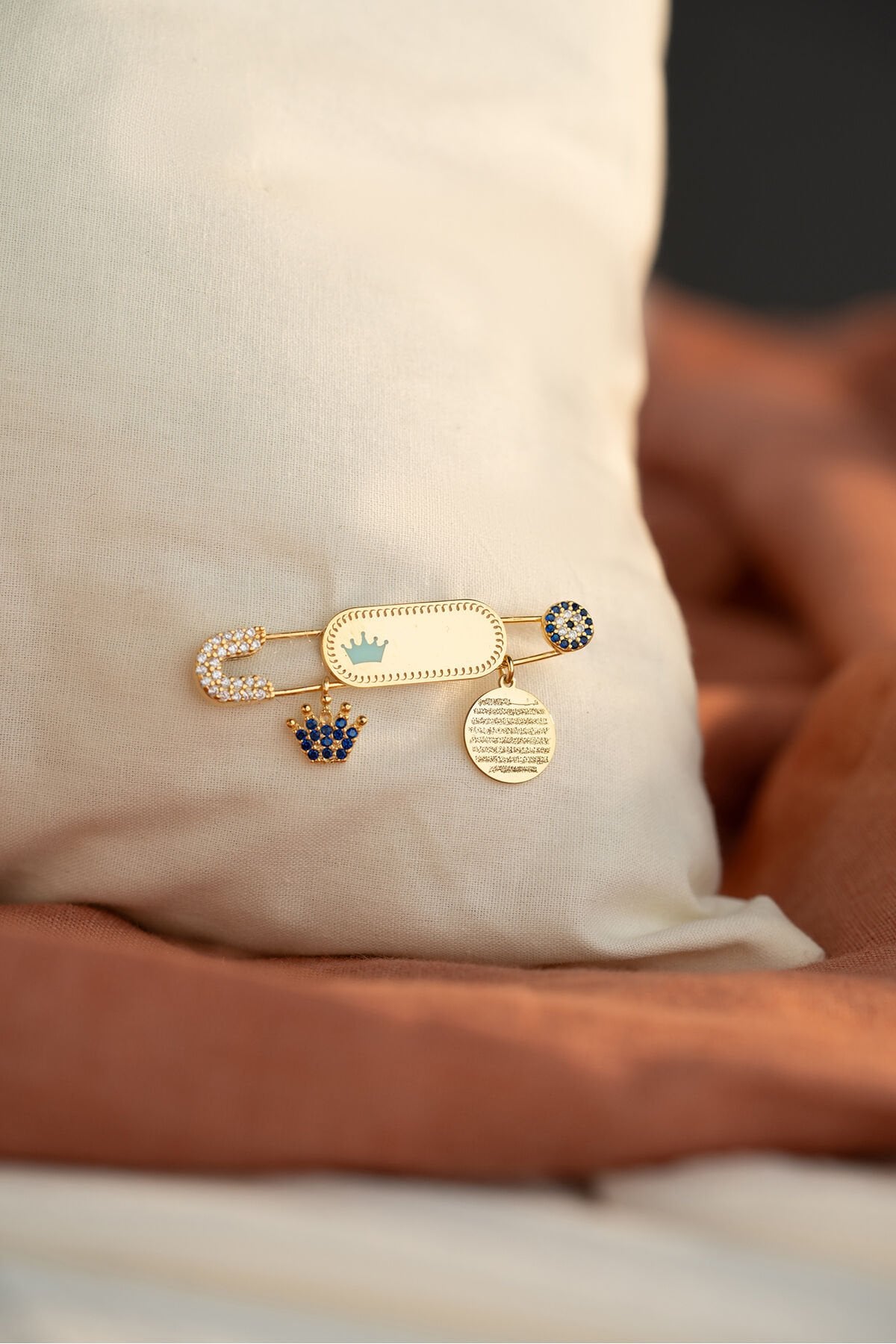 925 Ayar Gümüş Altın Kaplama Dualı Bebek İğnesi İsim Yazılabilen