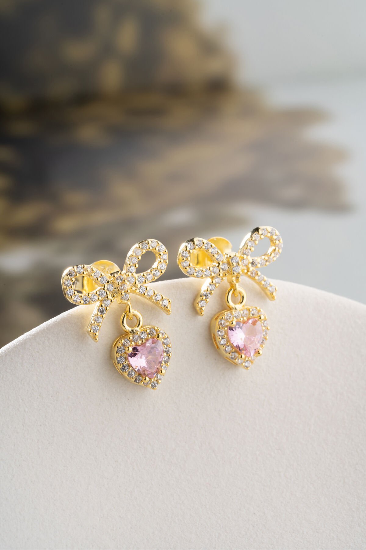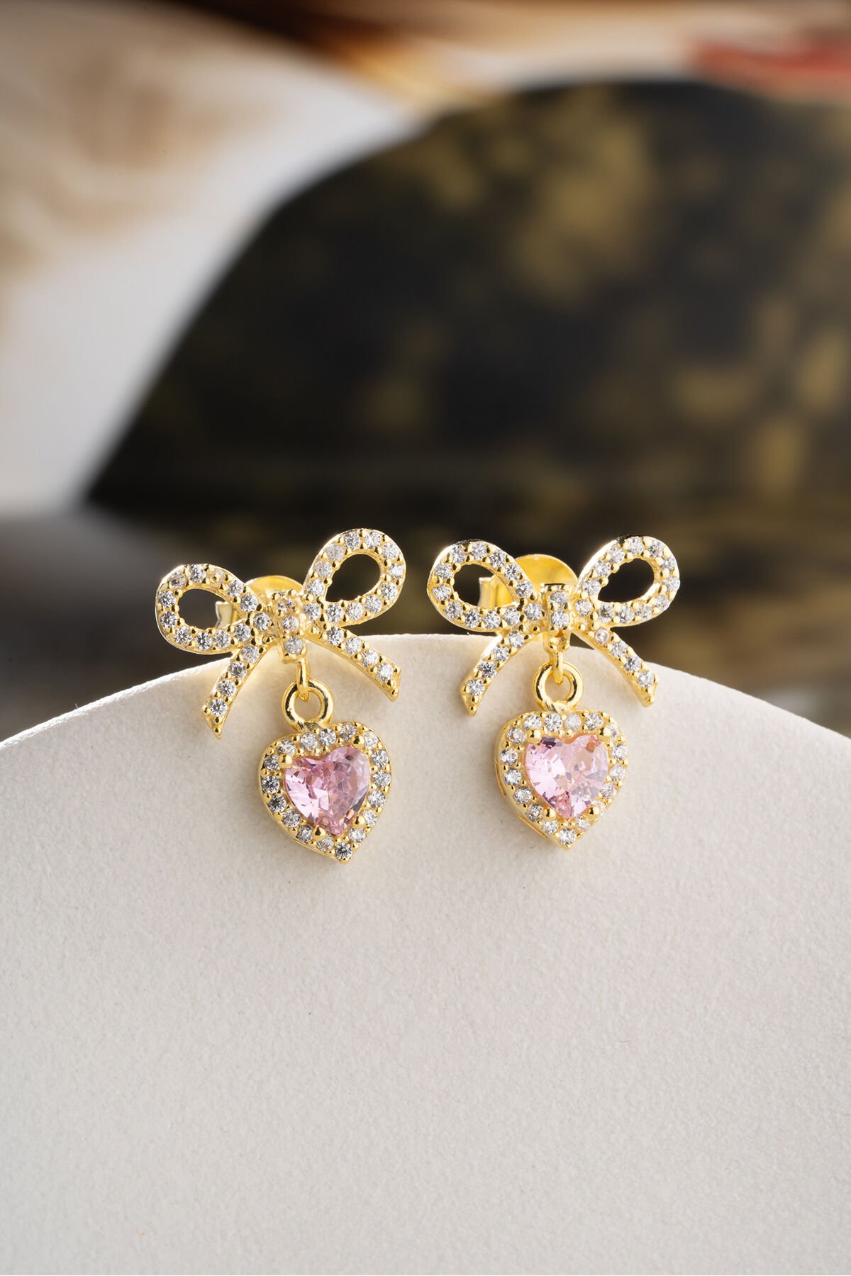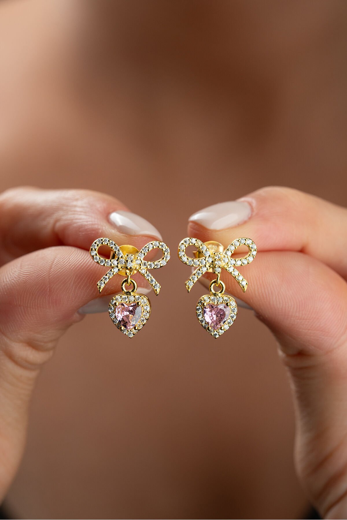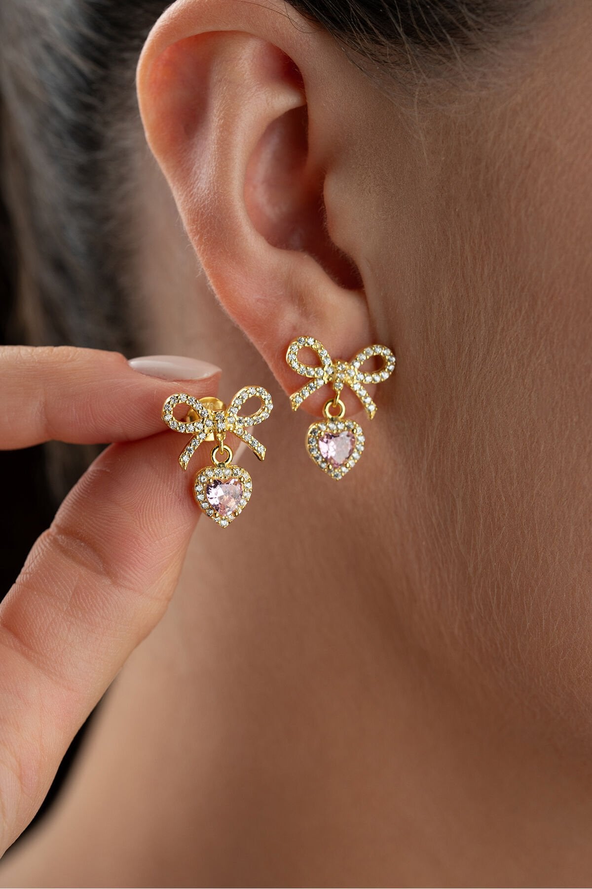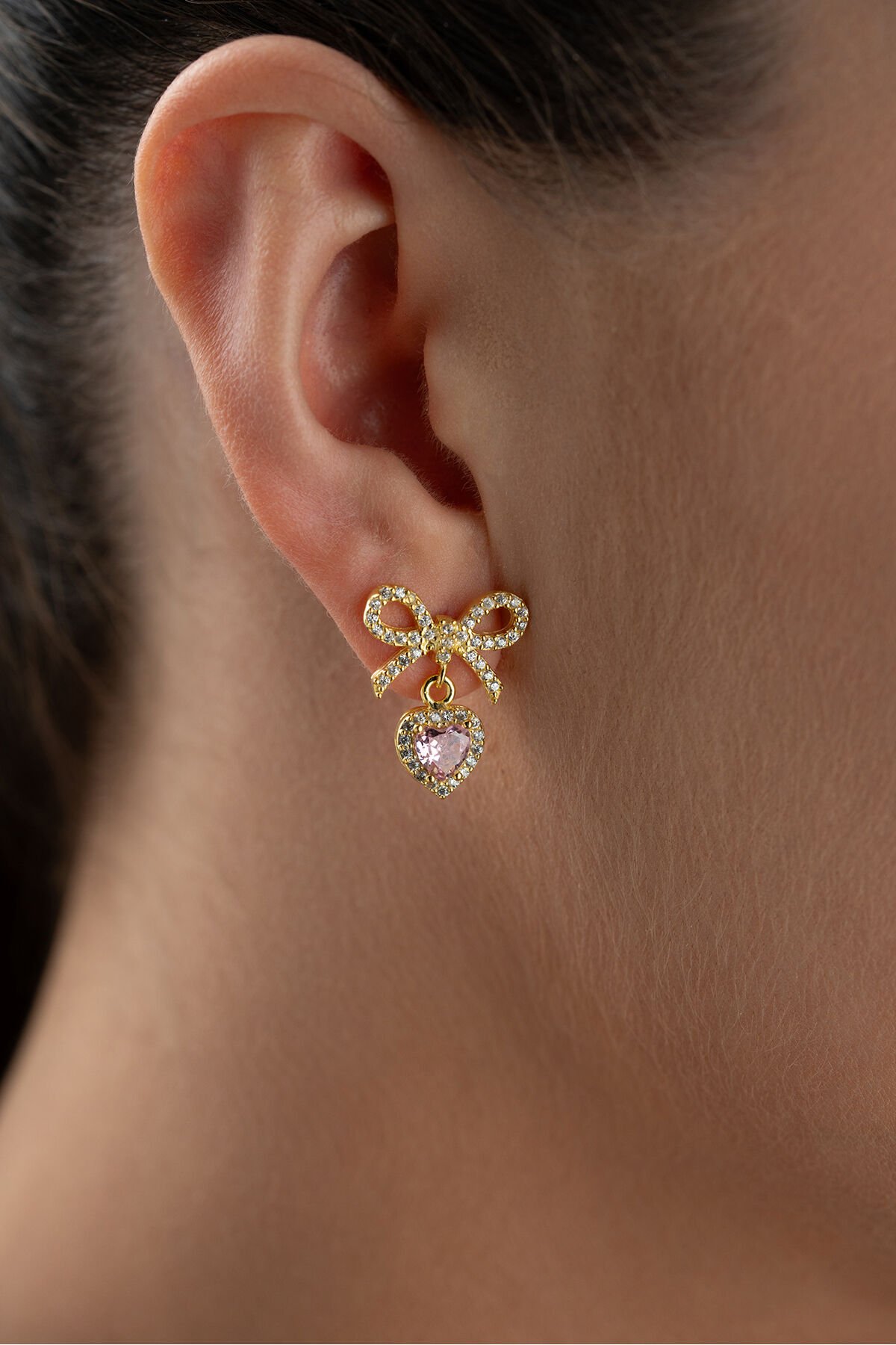 925 Ayar Gümüş Altın Kaplama Fiyonklu Kalpli Küpe