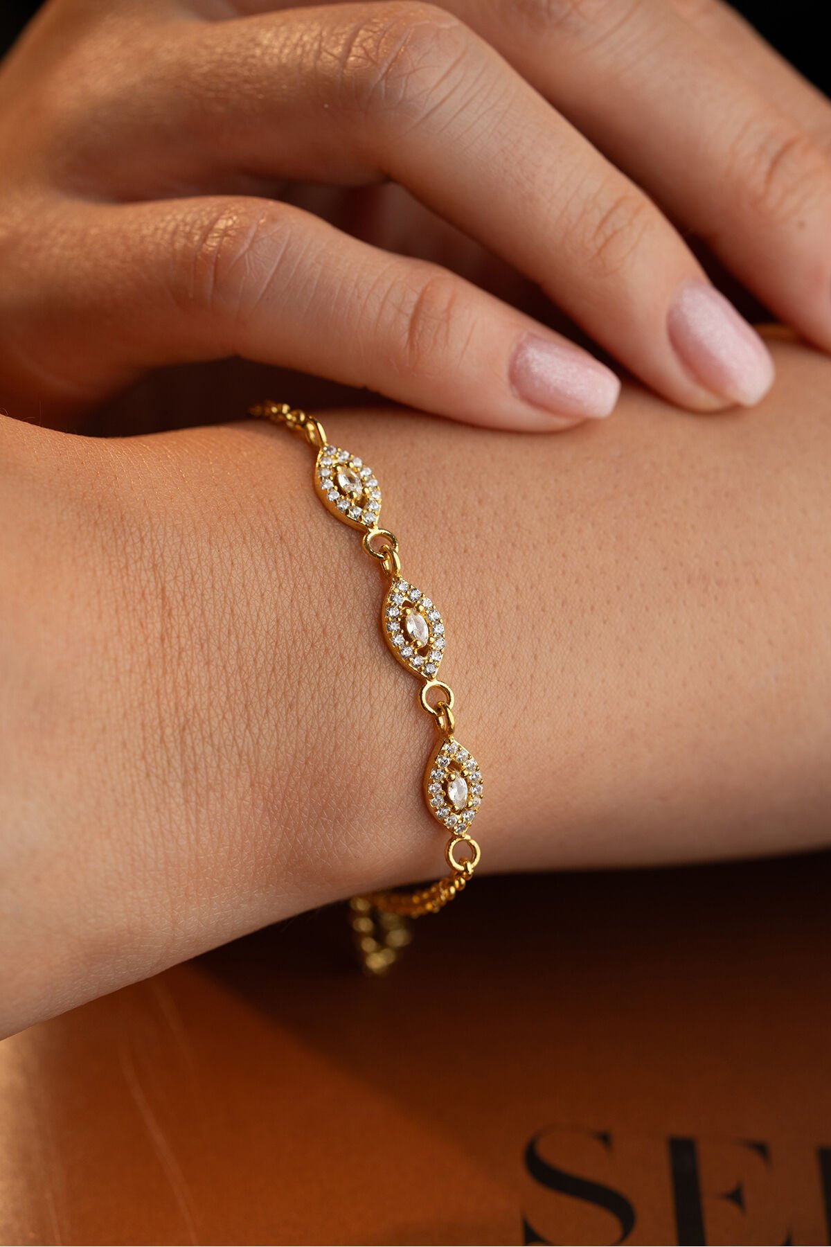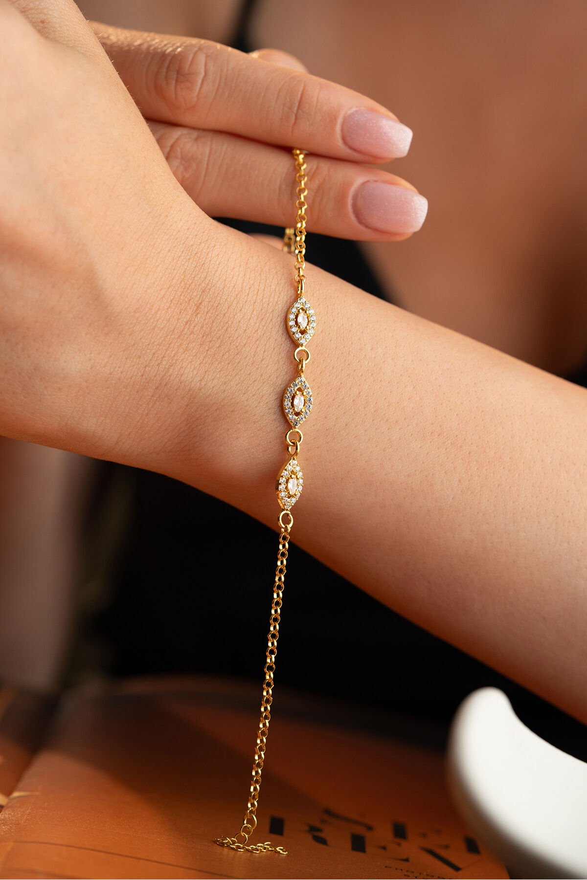 925 Ayar Gümüş Altın Kaplama Göz Model Bileklik