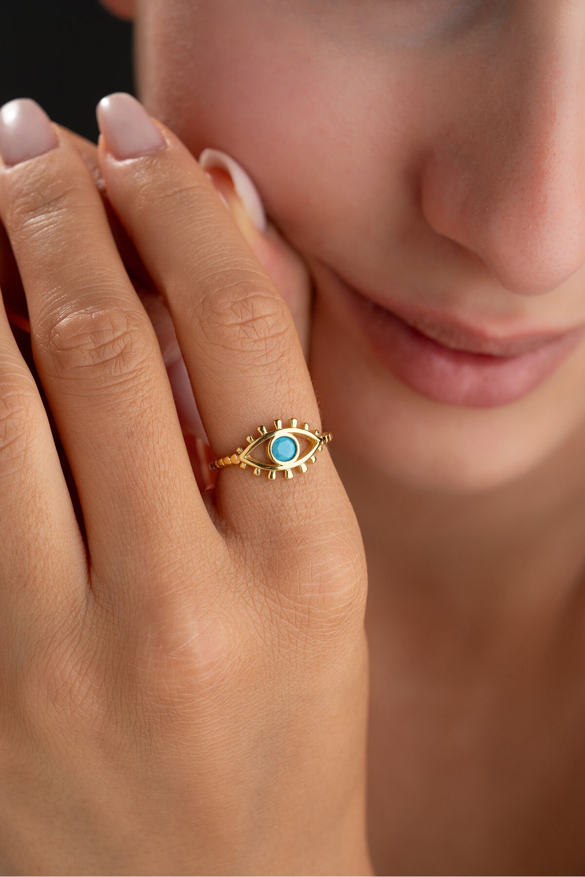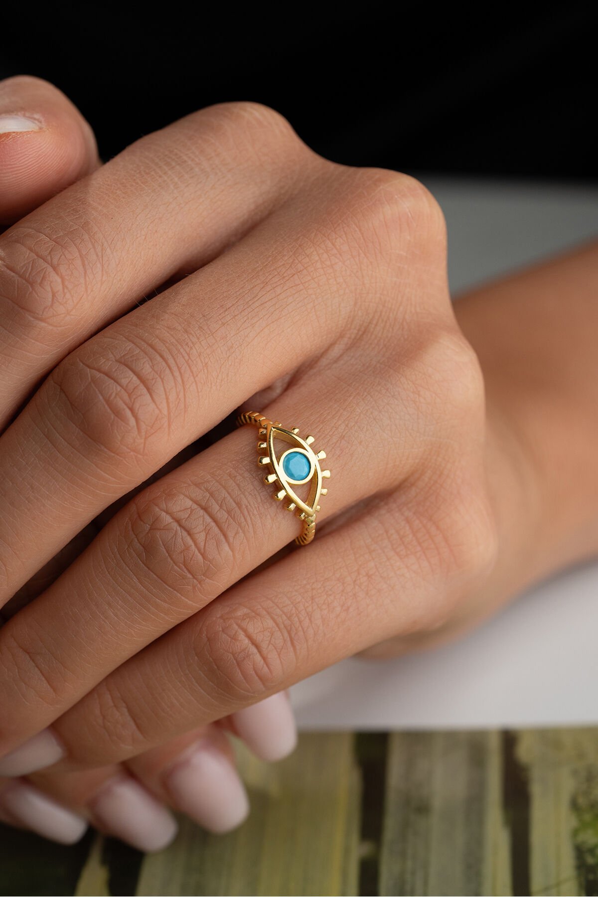 925 Ayar Gümüş Altın Kaplama Göz Yüzük