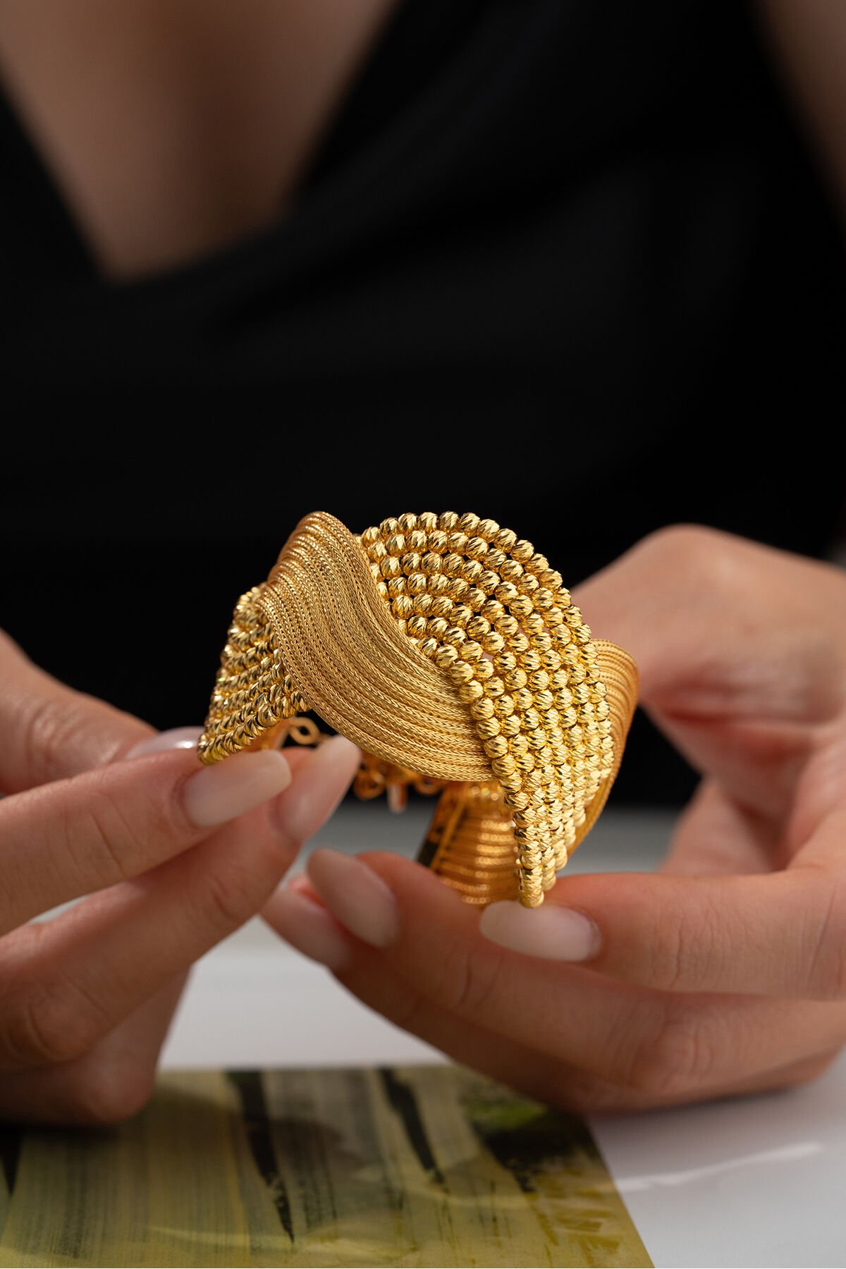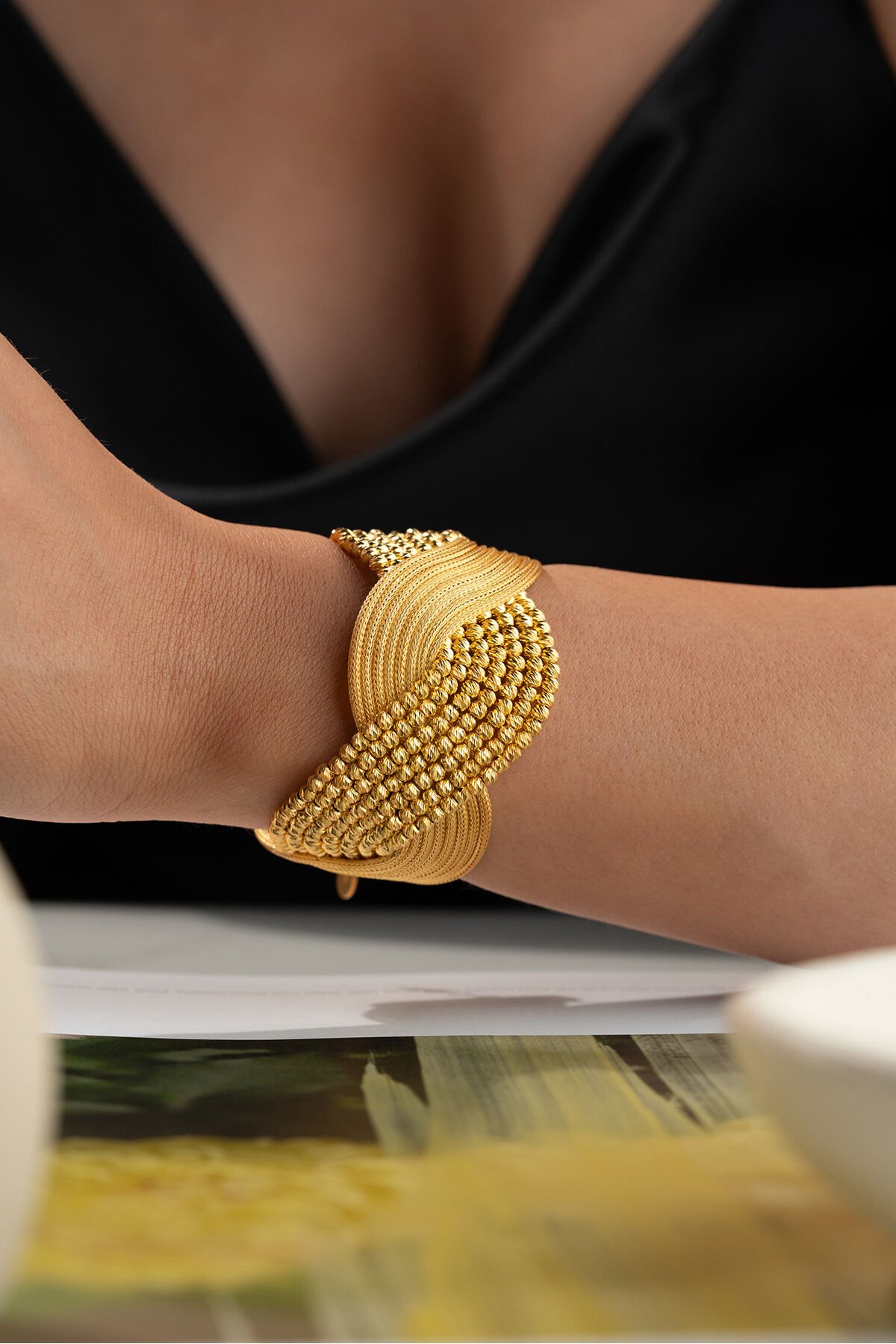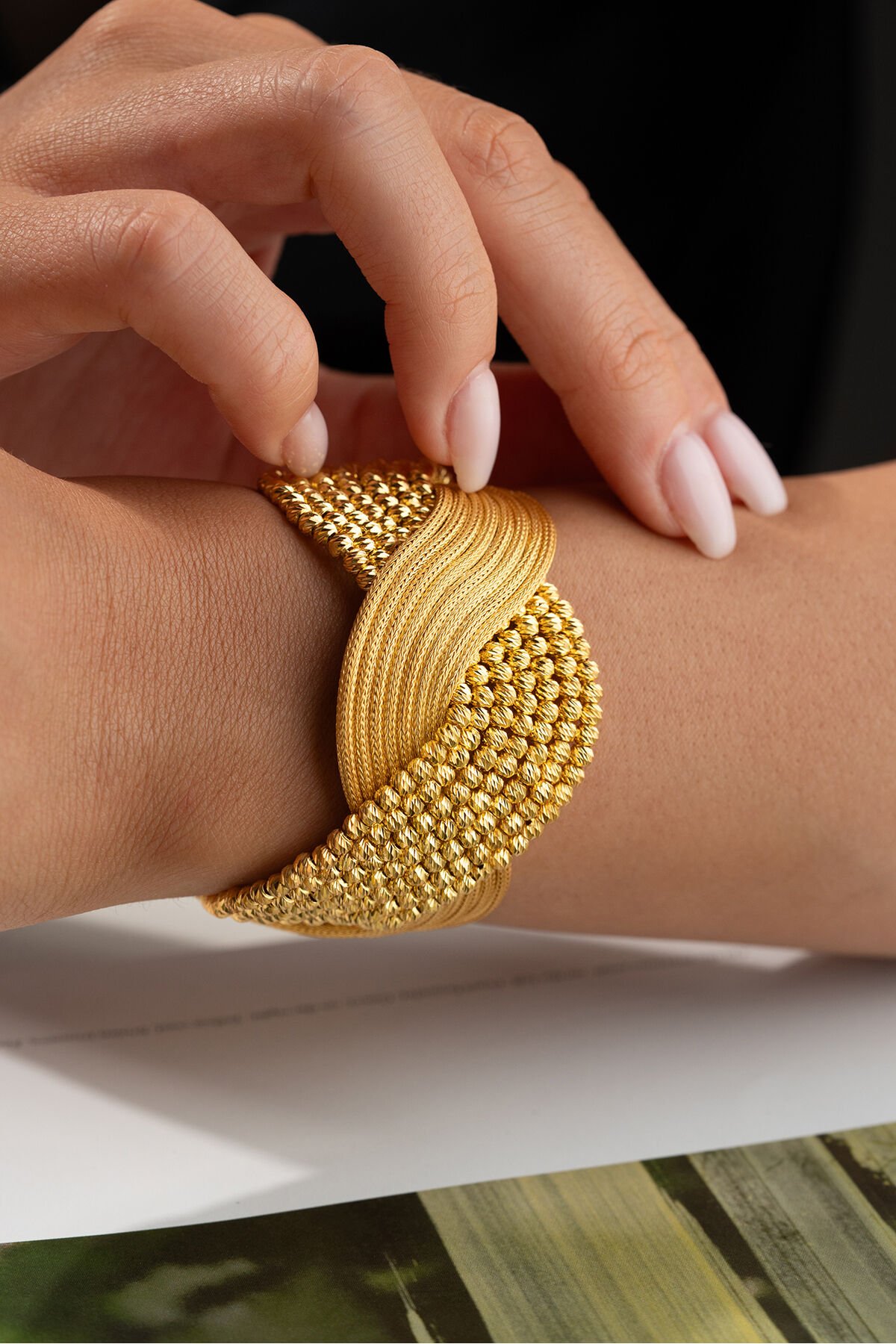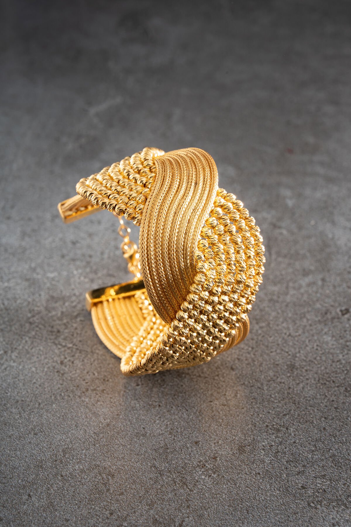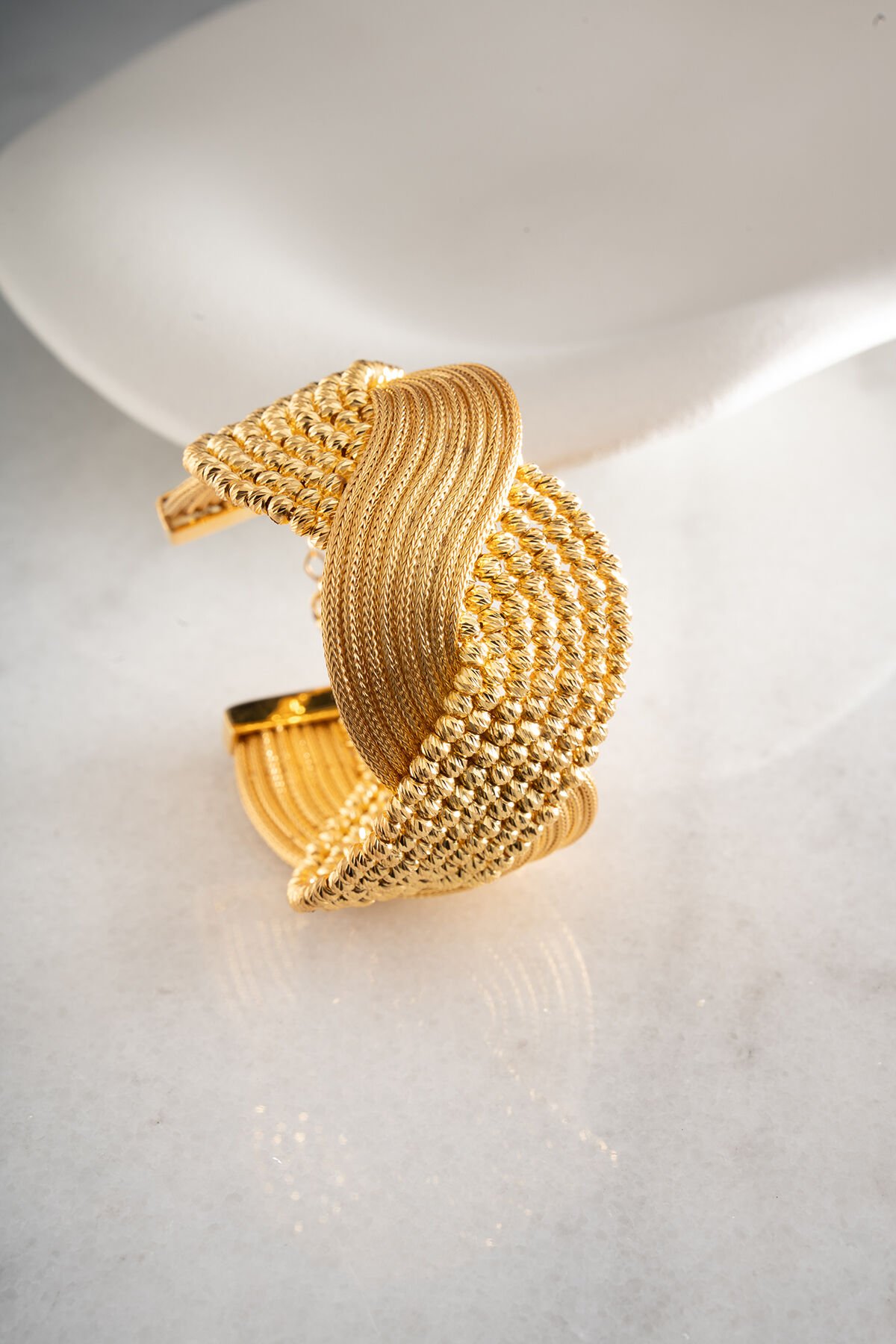 925 Ayar Gümüş Altın Kaplama Hasır Dorikalı Kelepçe