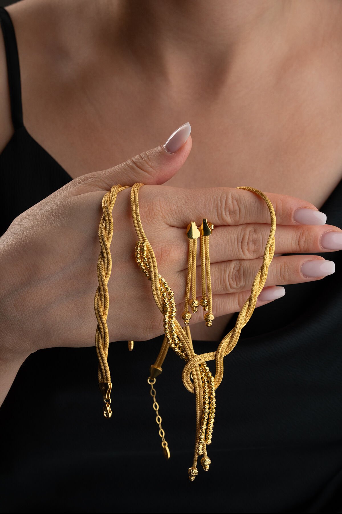 925 Ayar Gümüş Altın Kaplama Hasır Set