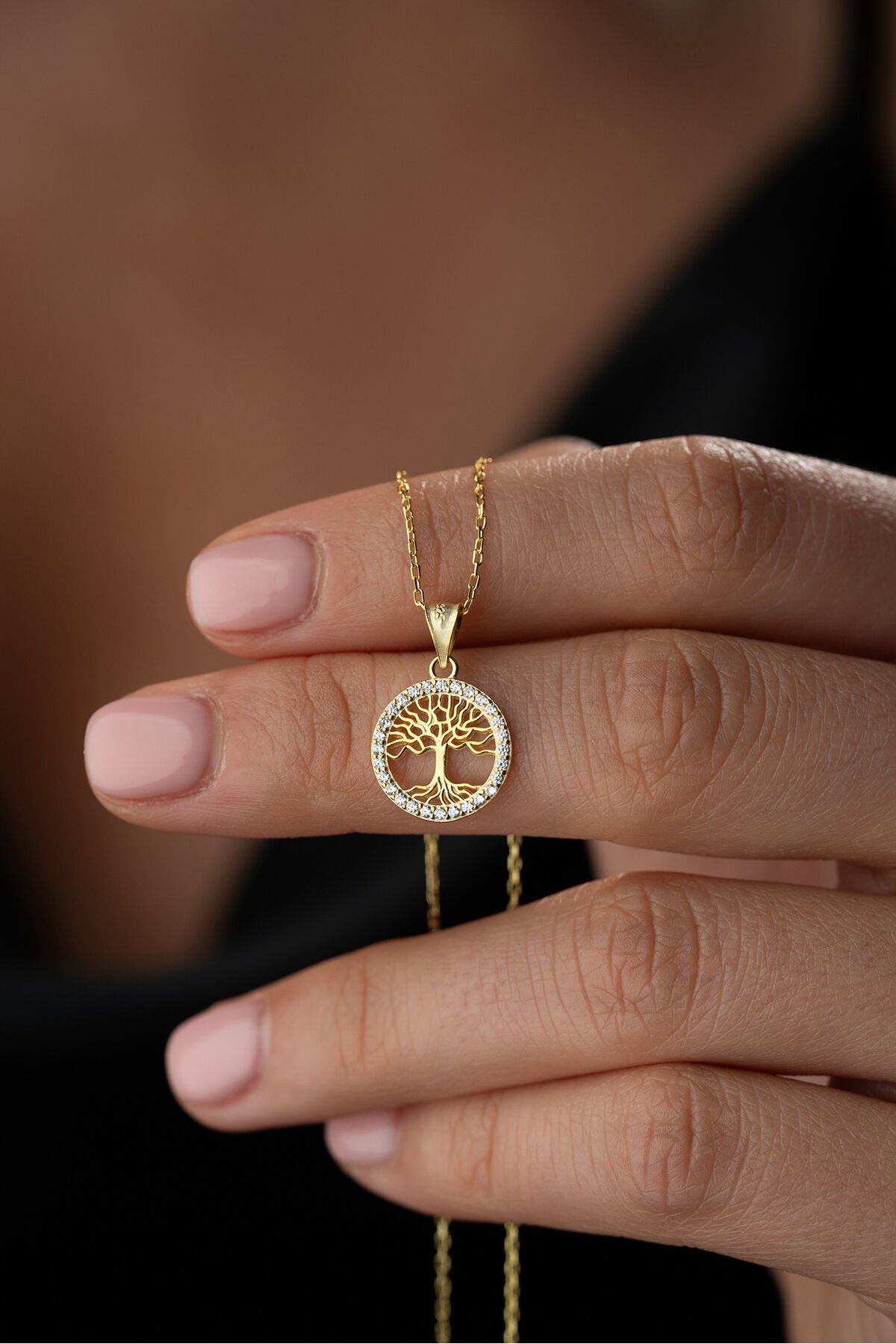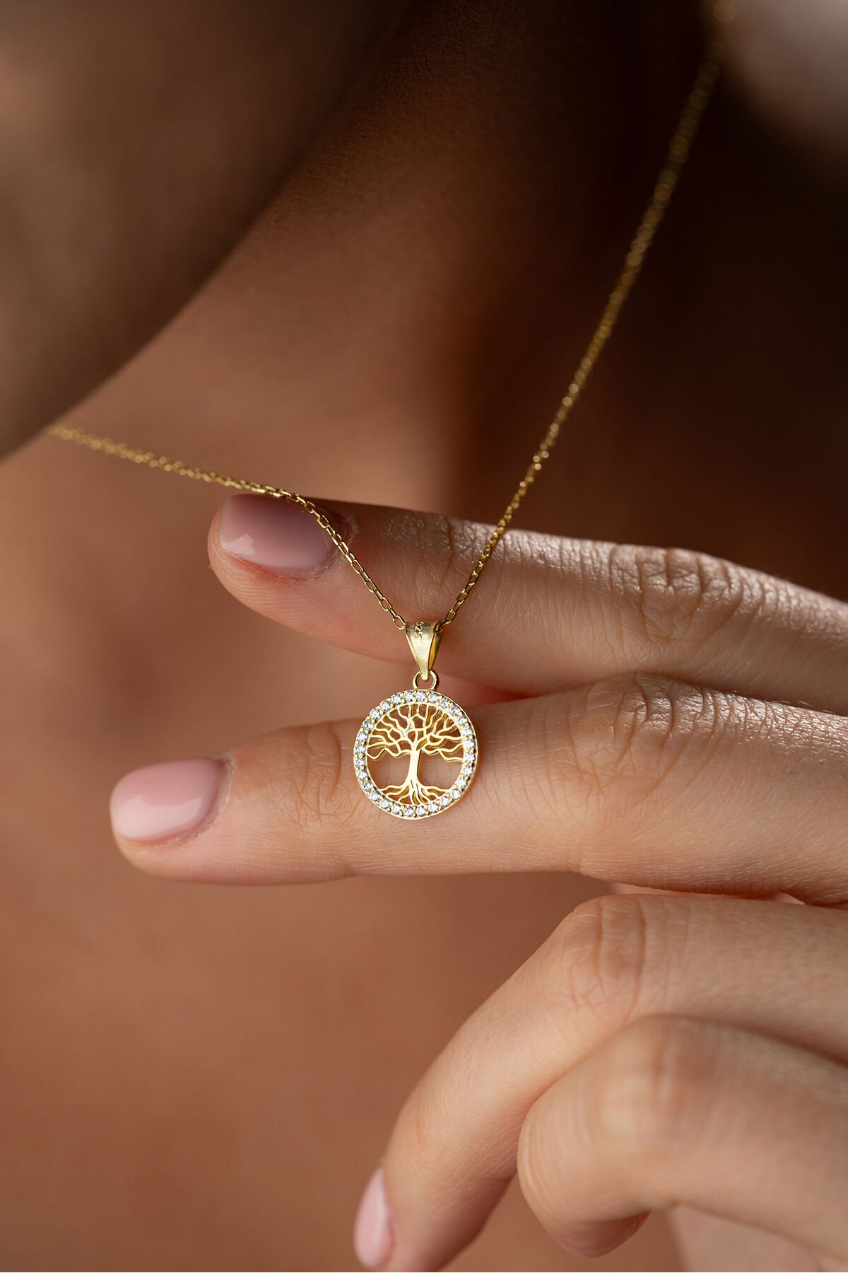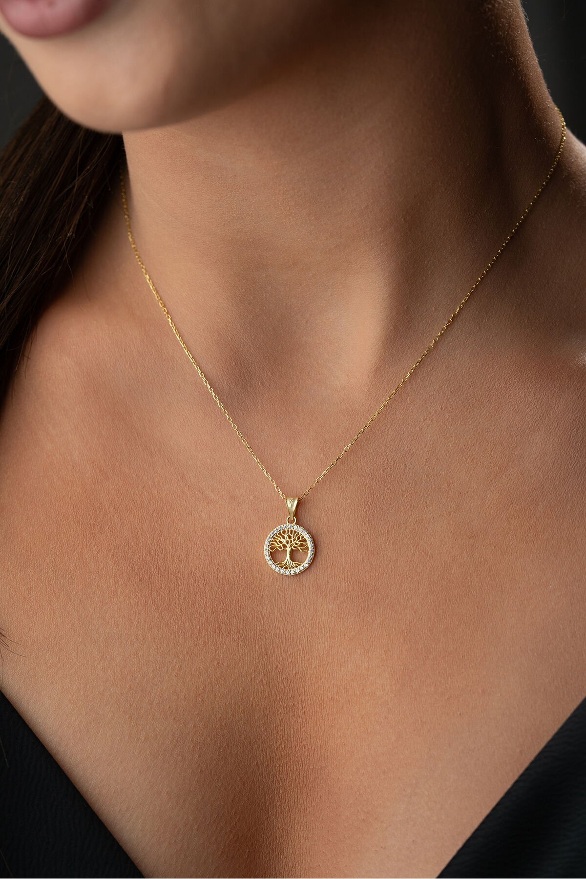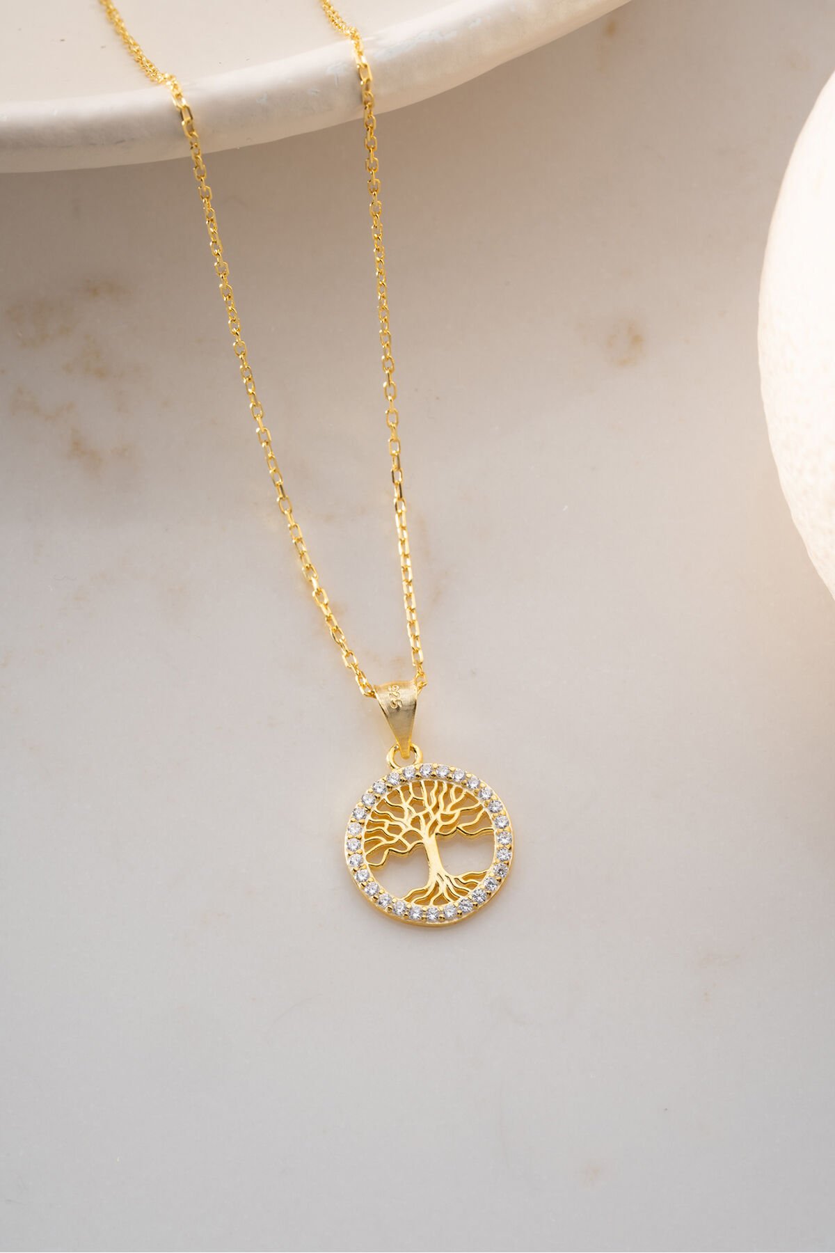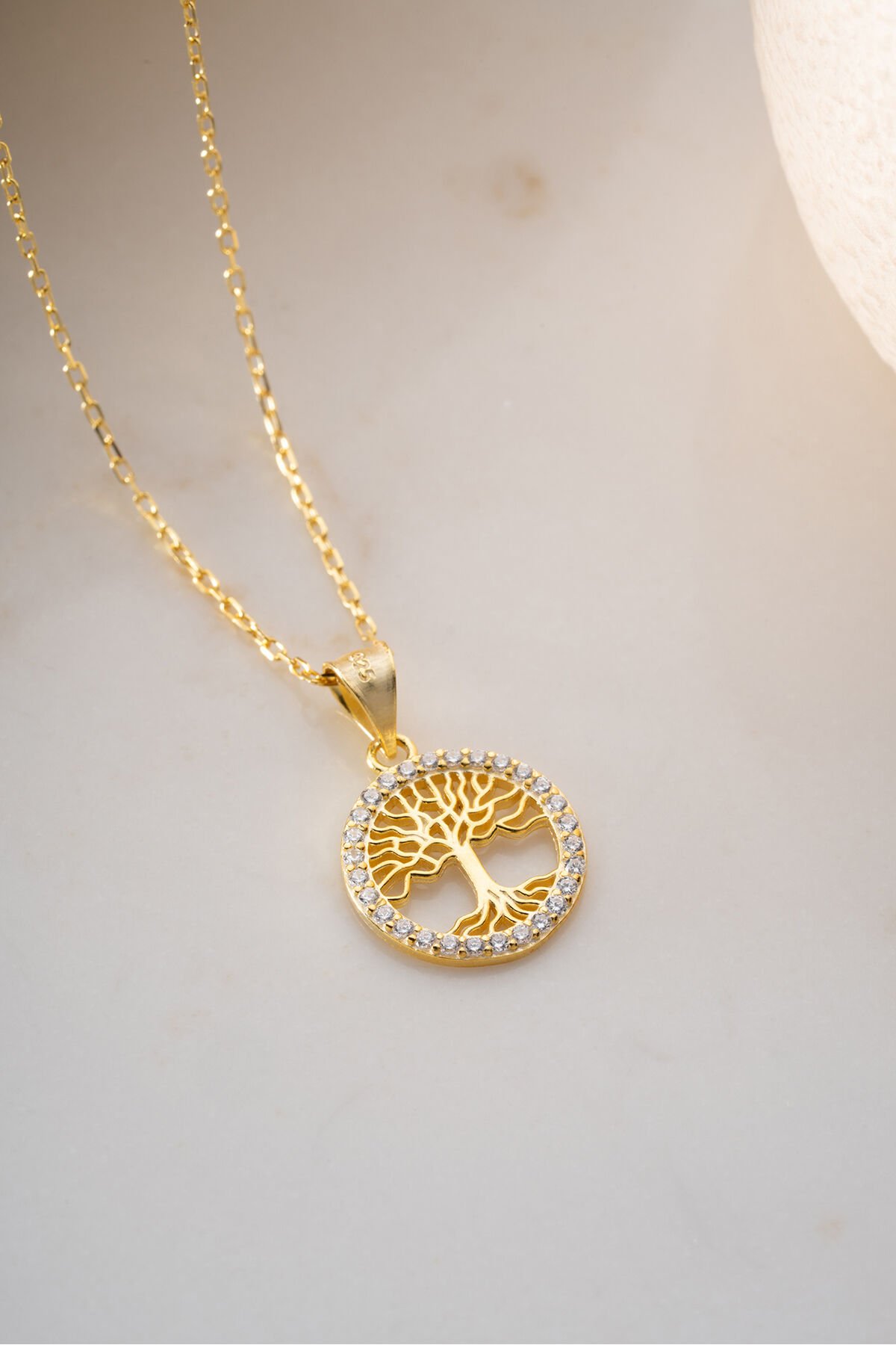 925 Ayar Gümüş Altın Kaplama Hayat Ağacı Kolye