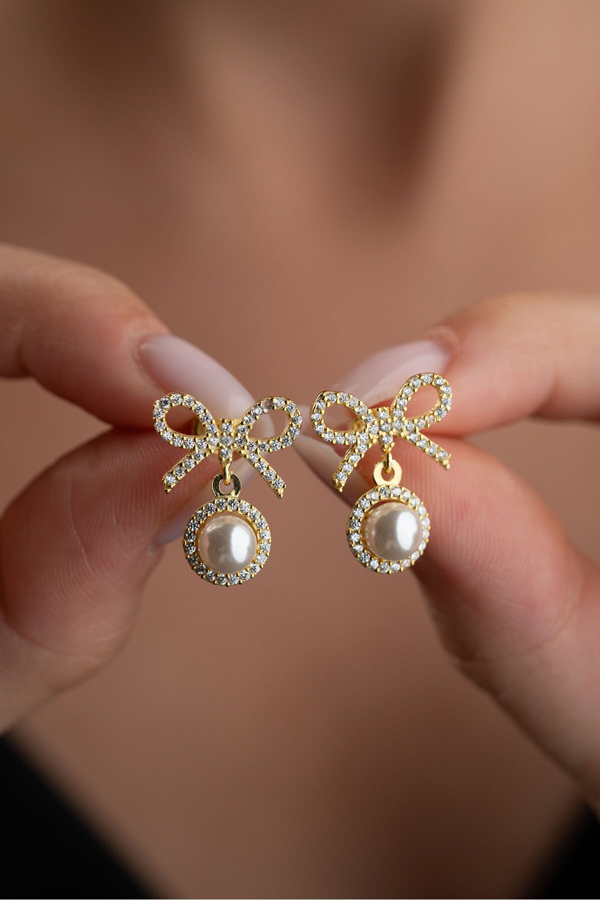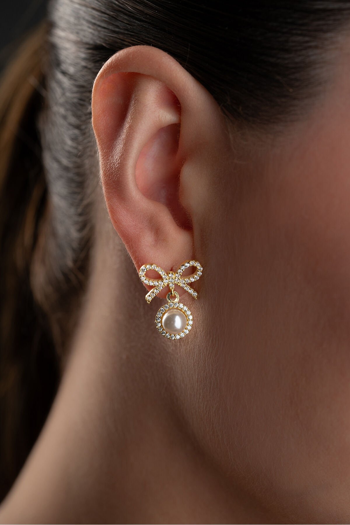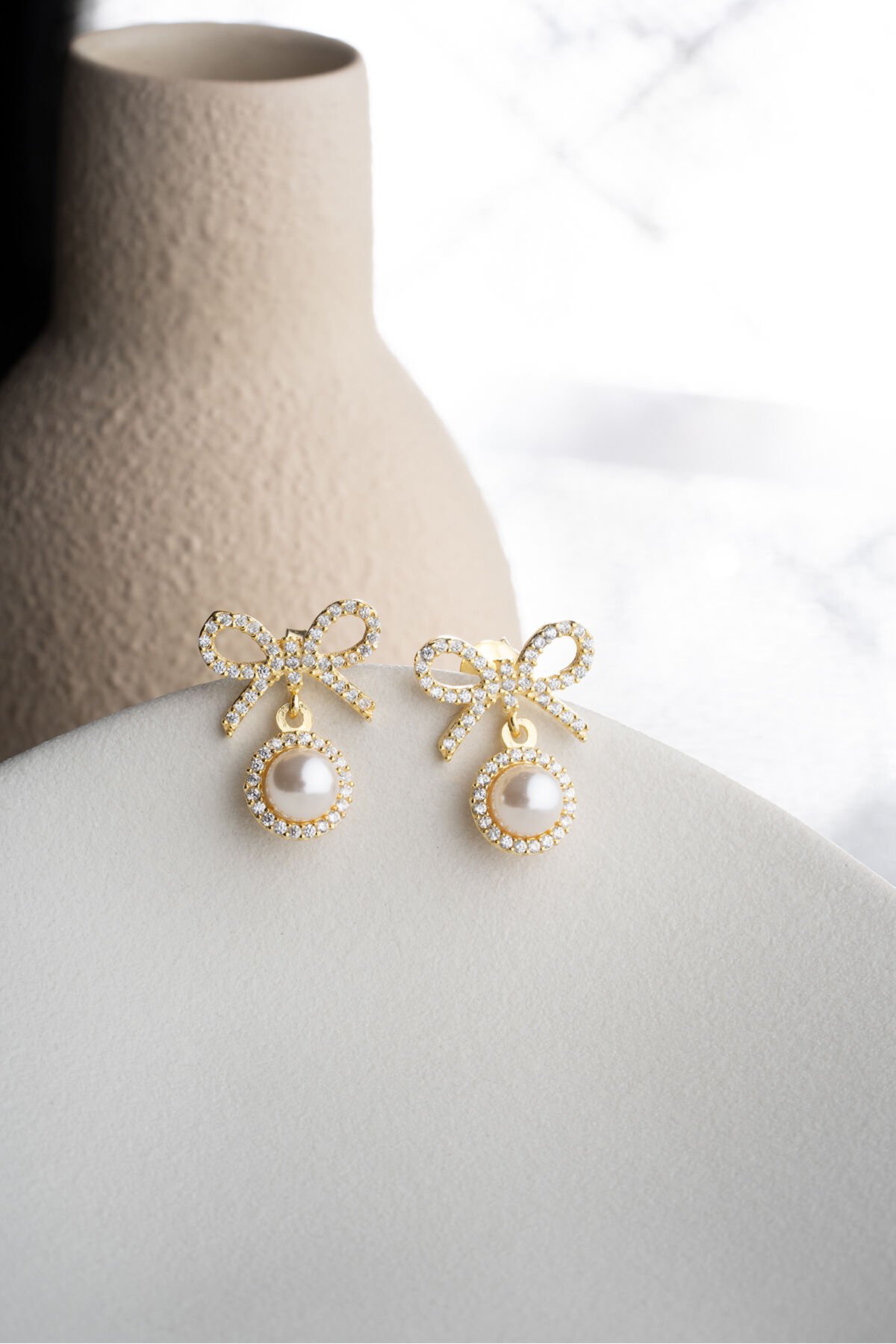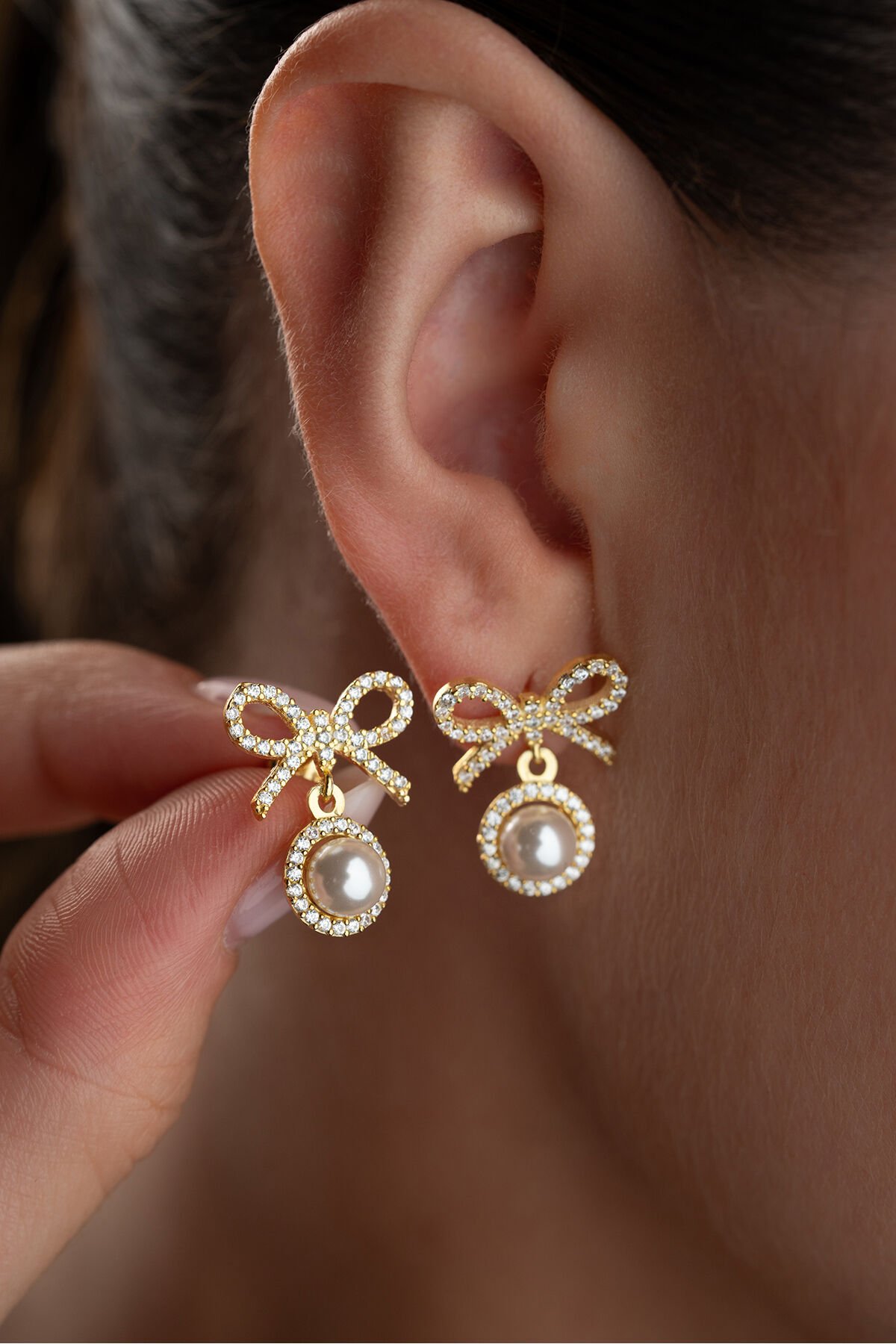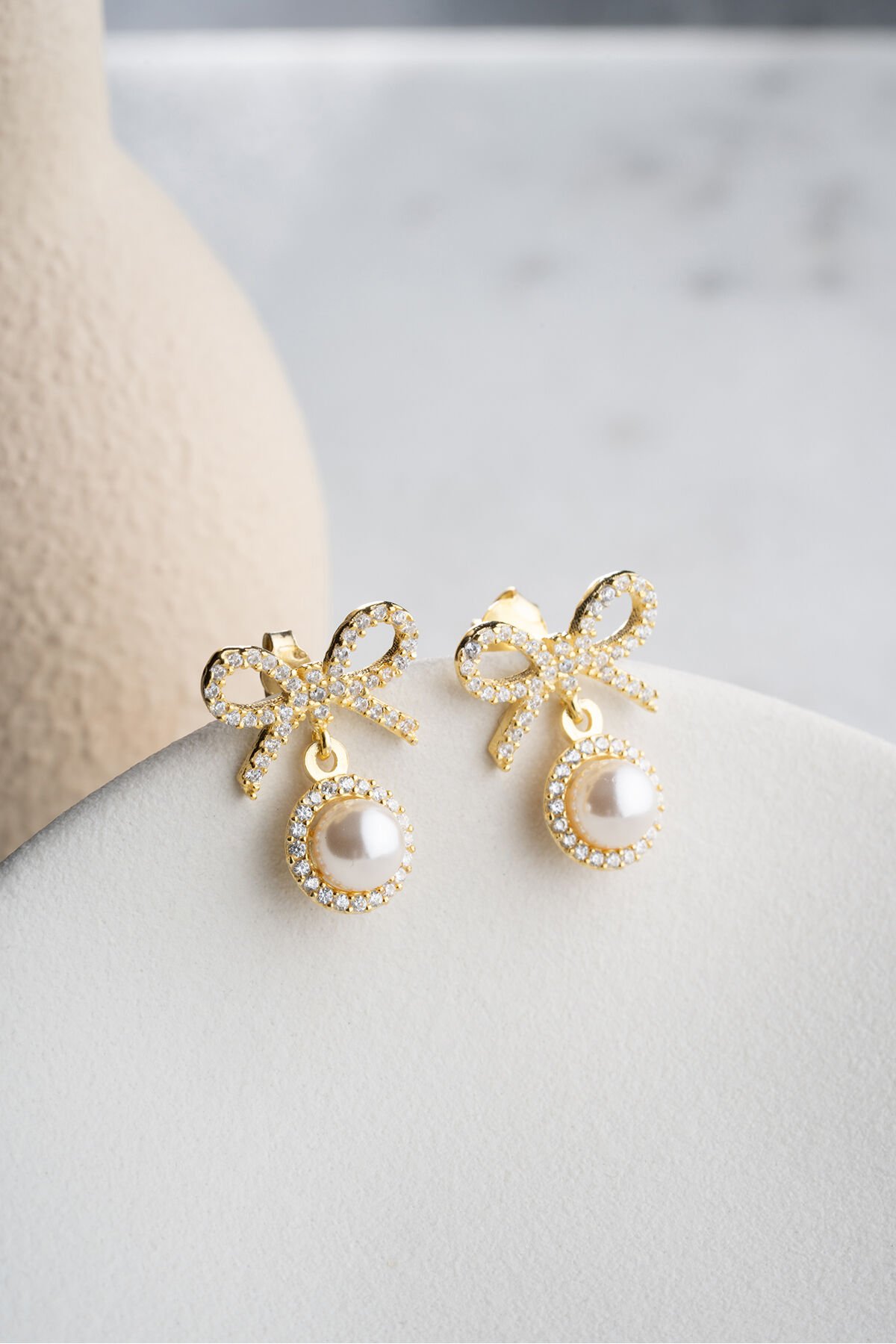 925 Ayar Gümüş Altın Kaplama İncili Fiyonk Küpe