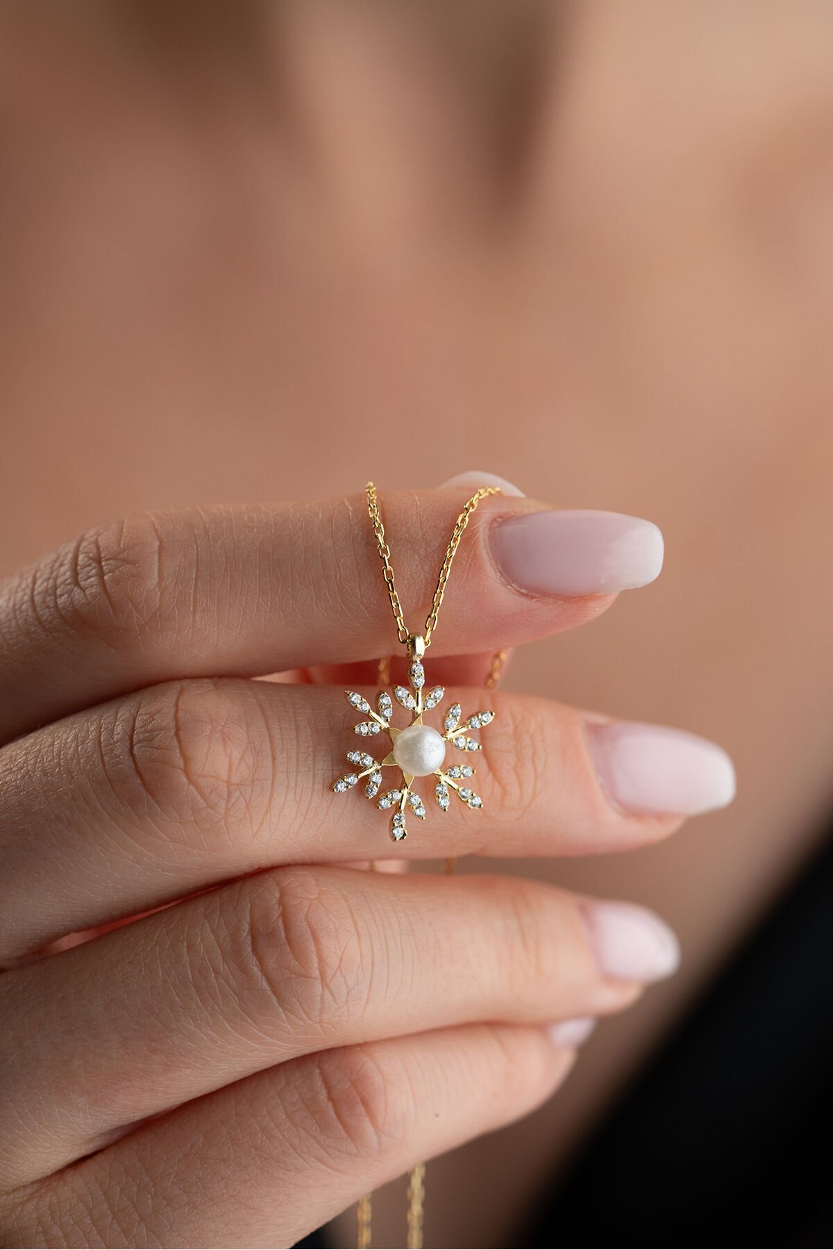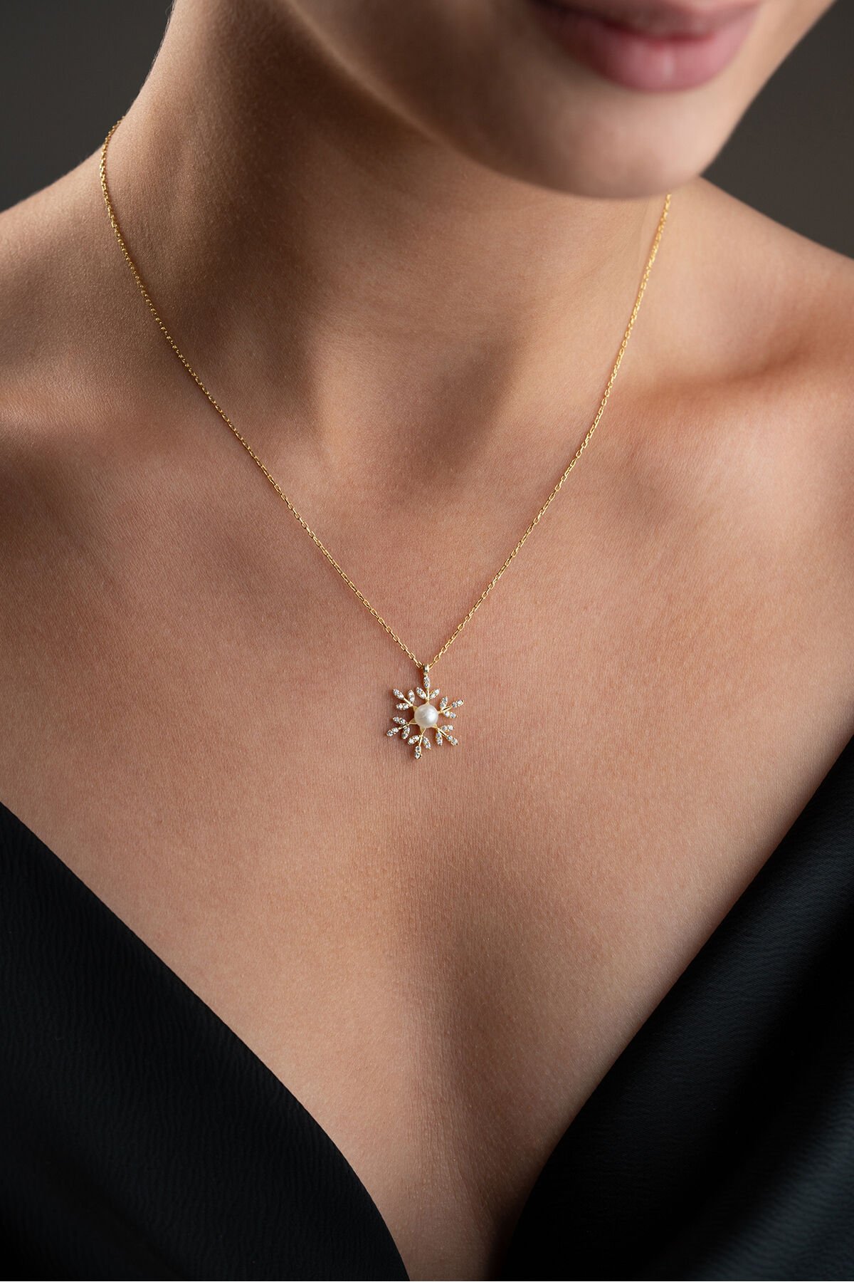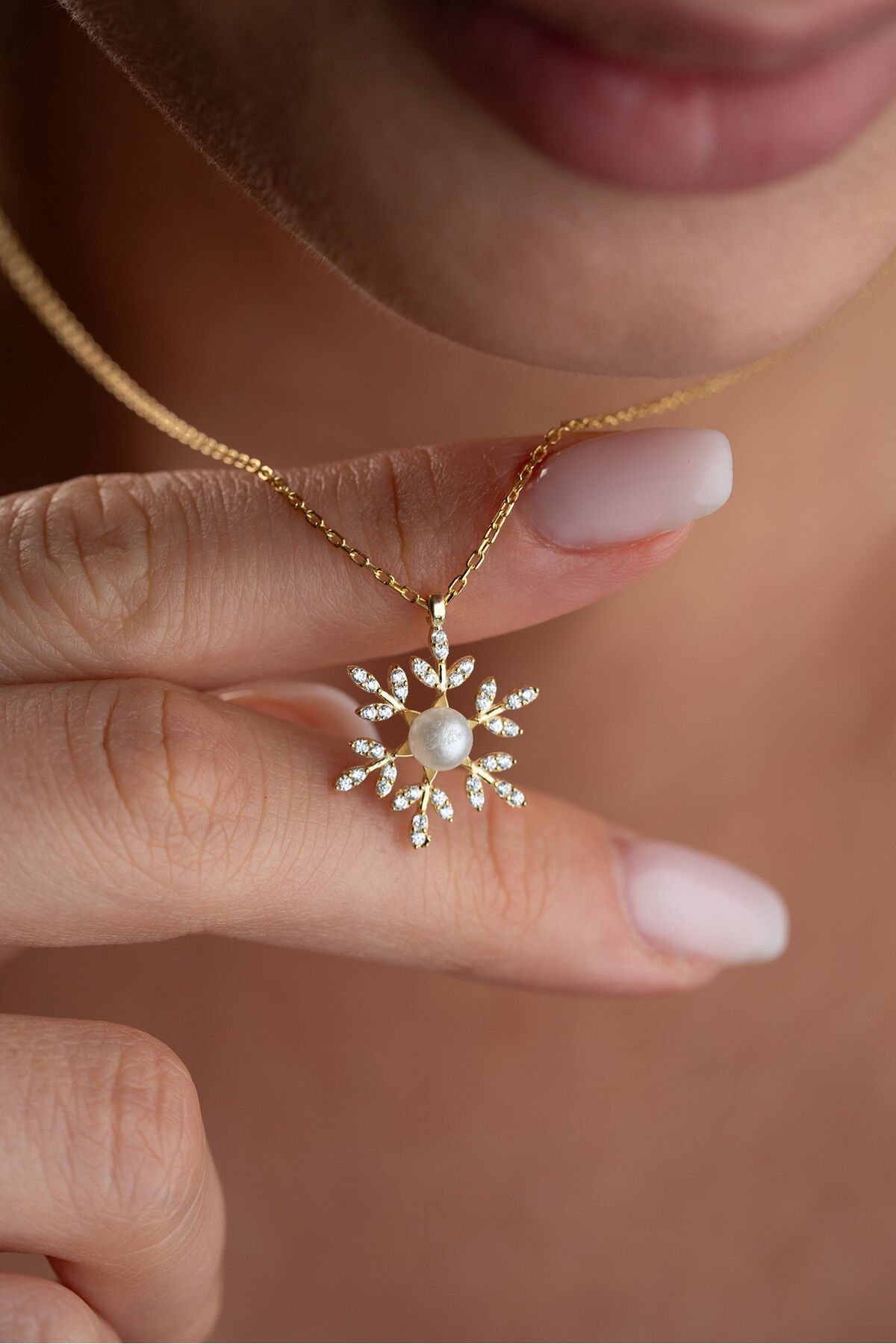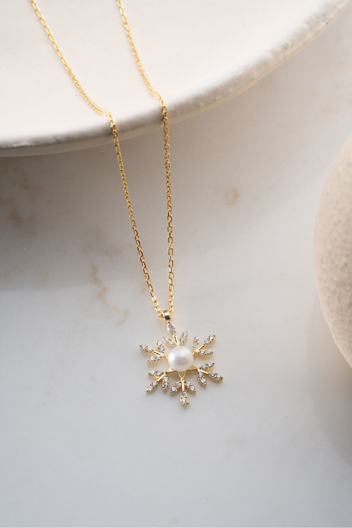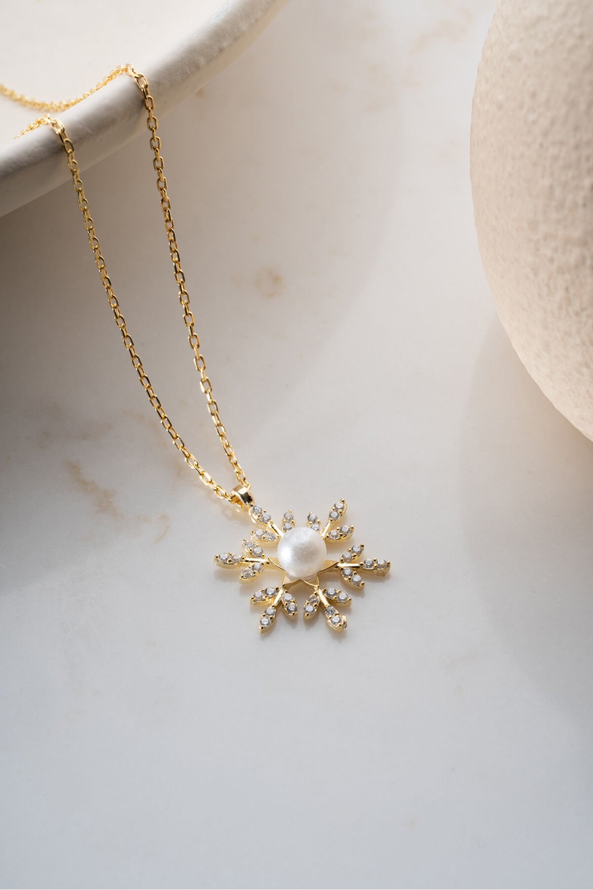 925 Ayar Gümüş Altın Kaplama İncili Kartanesi Kolye
