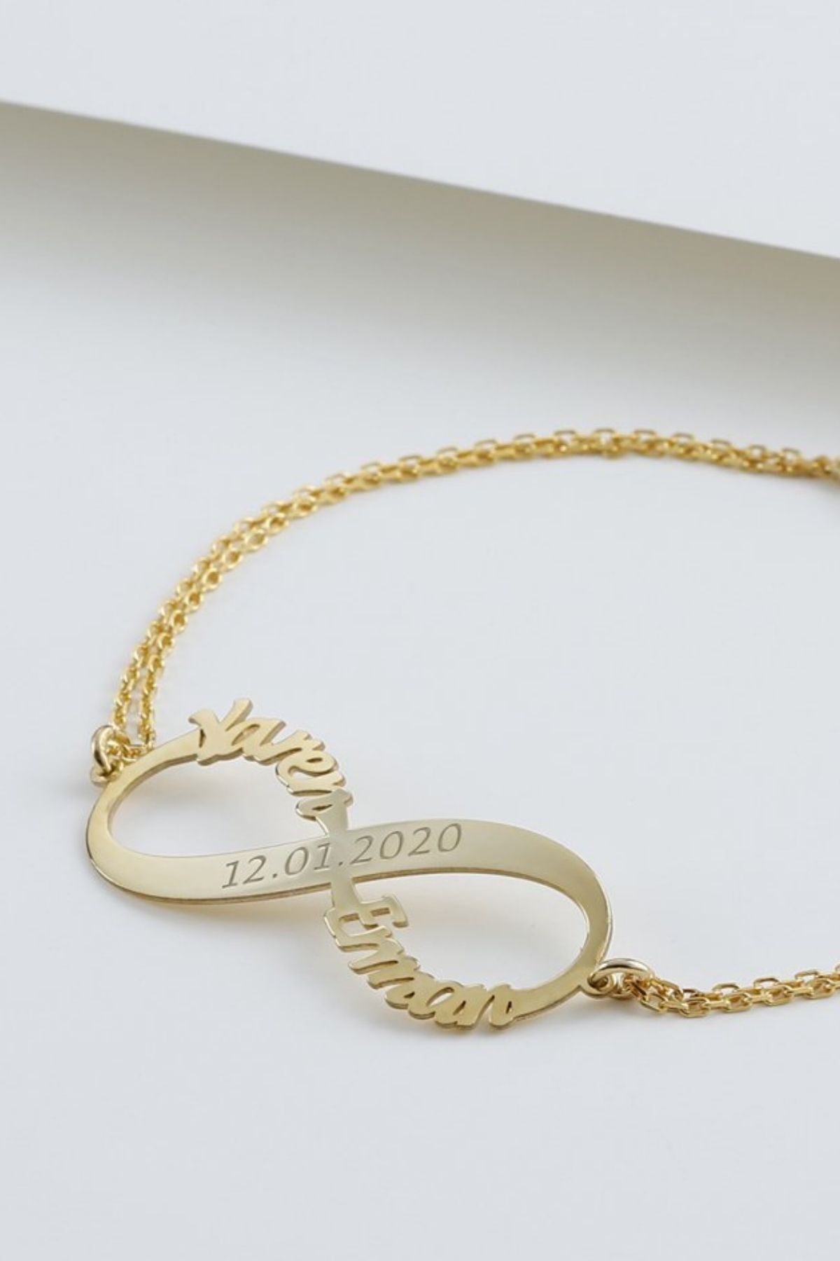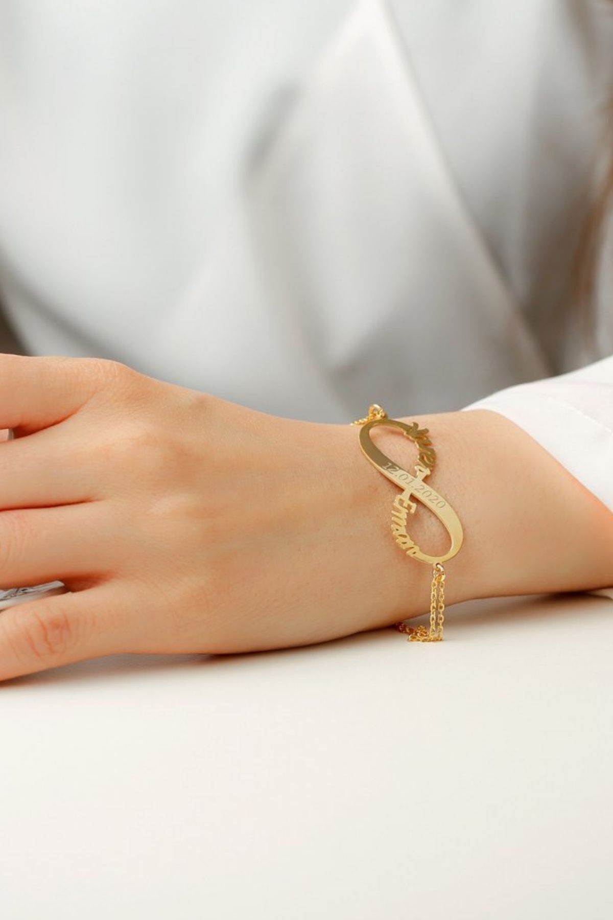 925 Ayar Gümüş Altın Kaplama Isimli Sonsuzluk Bileklik
