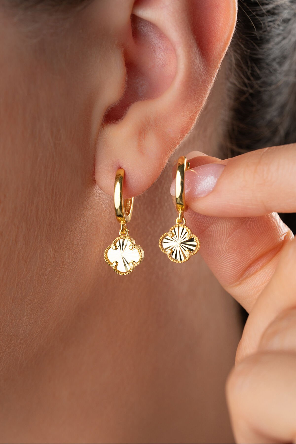 925 Ayar Gümüş Altın Kaplama Kalemli Yonca Küpe