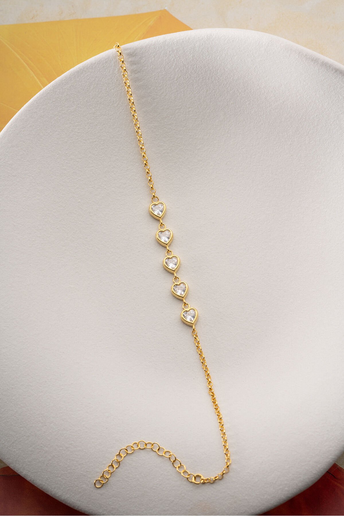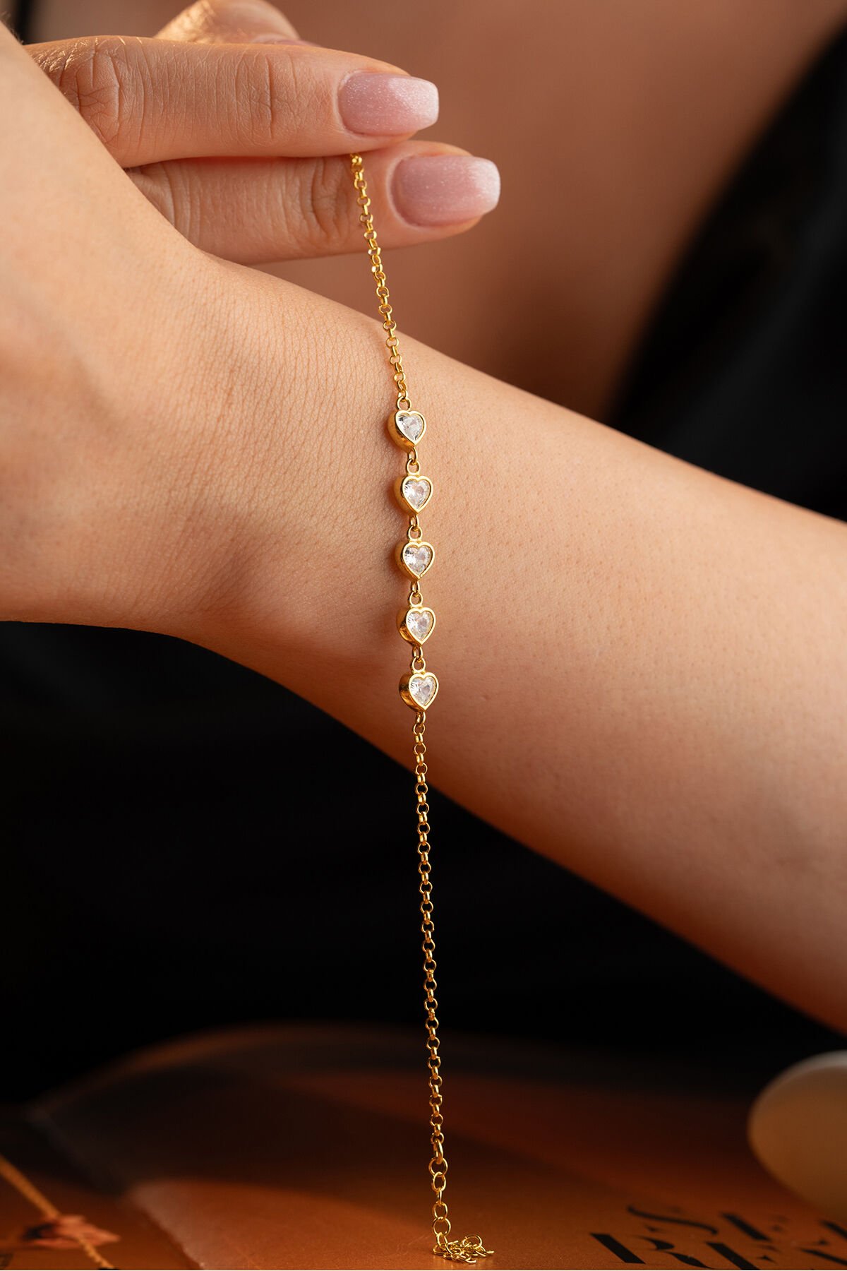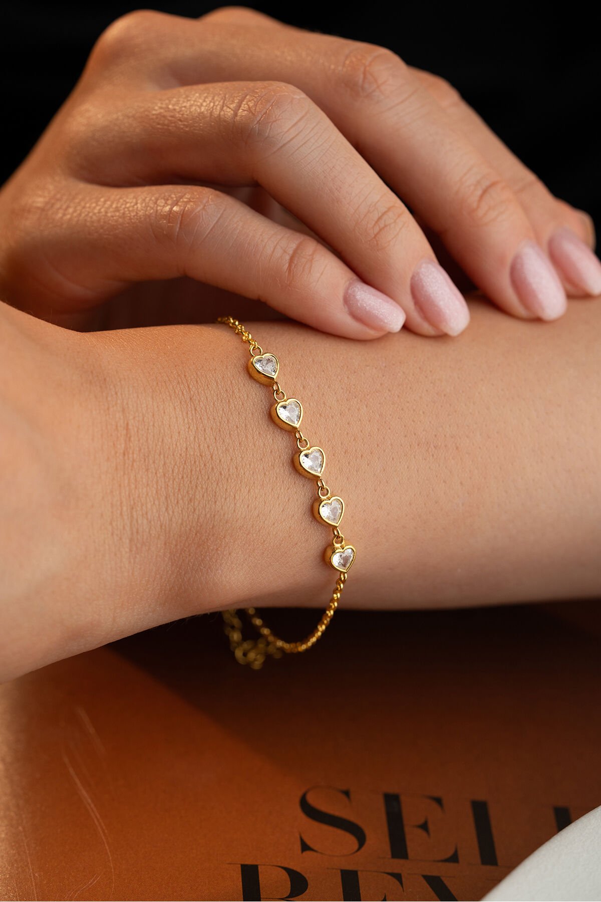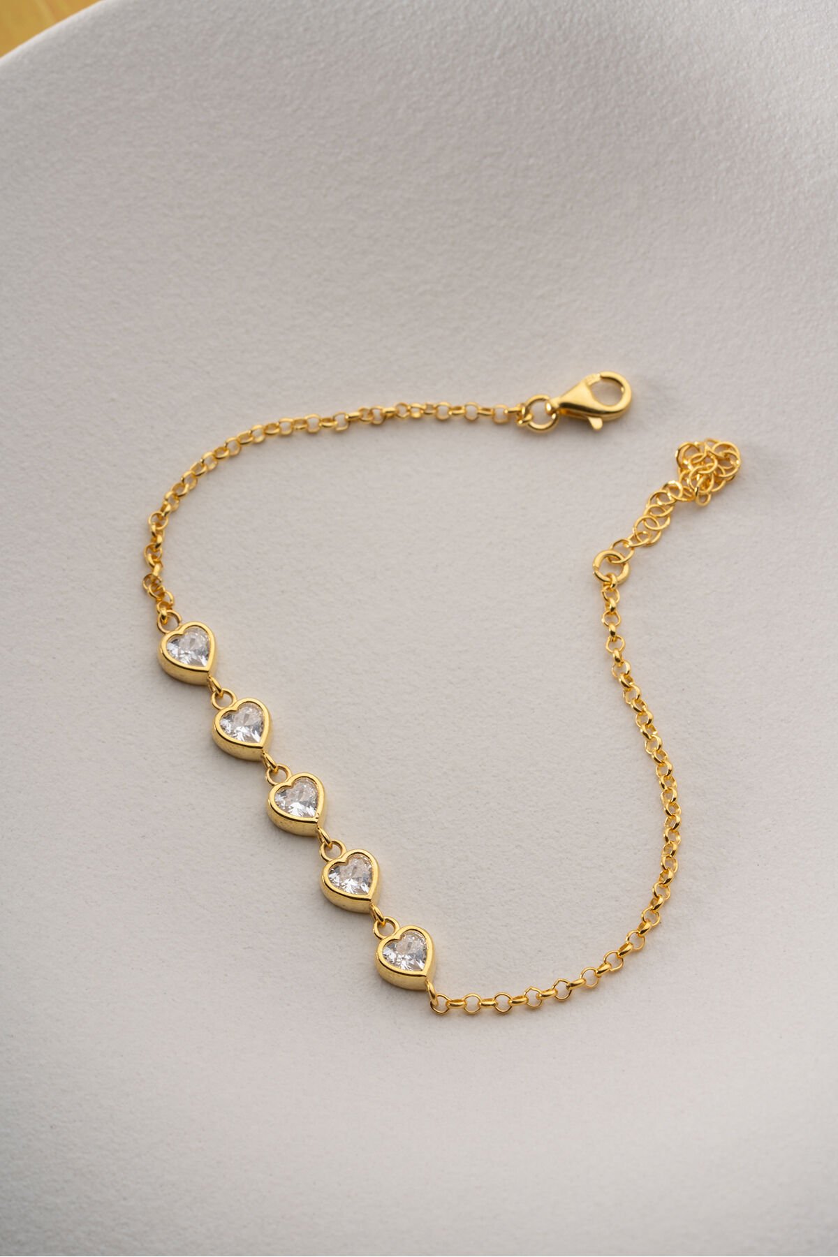 925 Ayar Gümüş Altın Kaplama Kalpli Bileklik