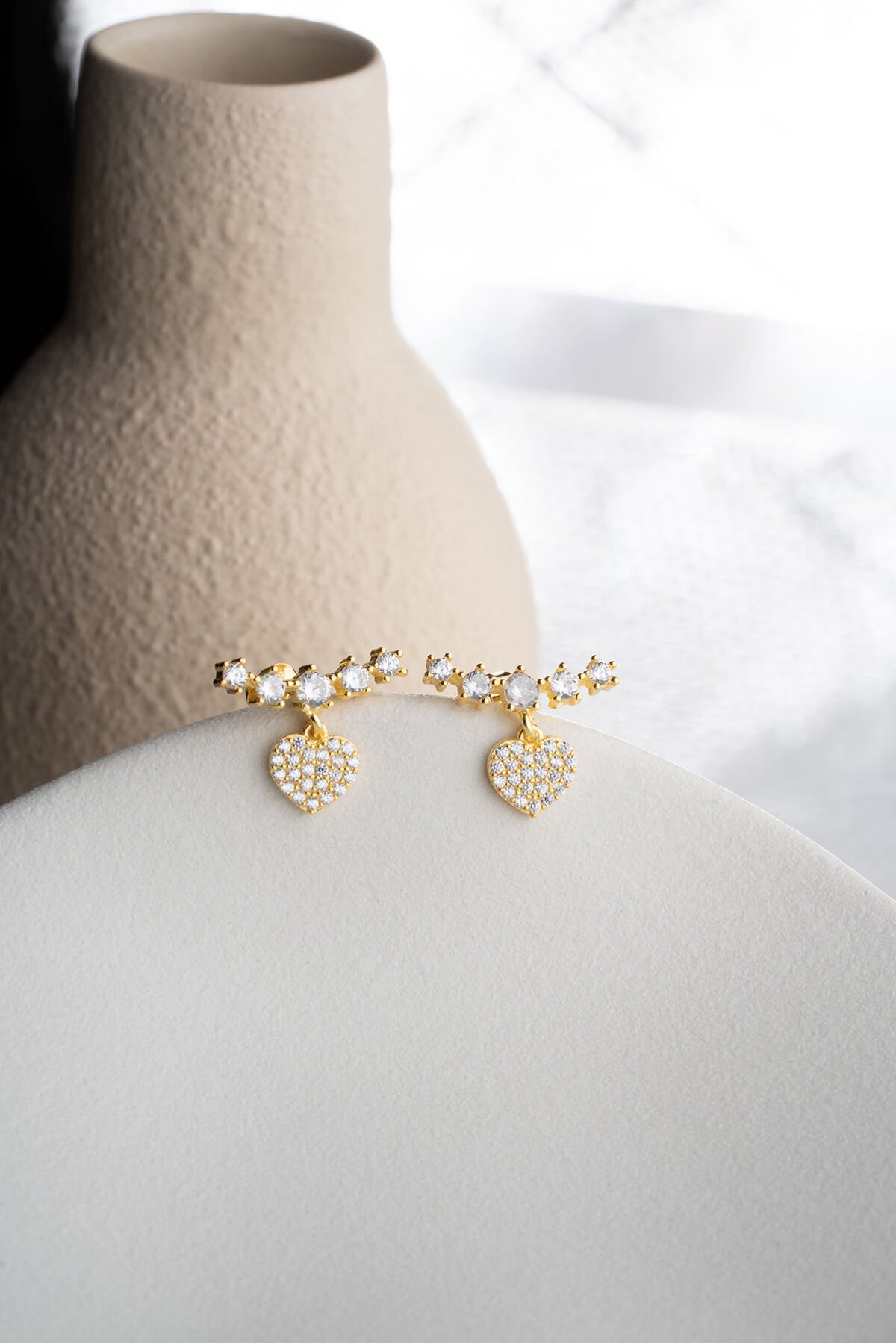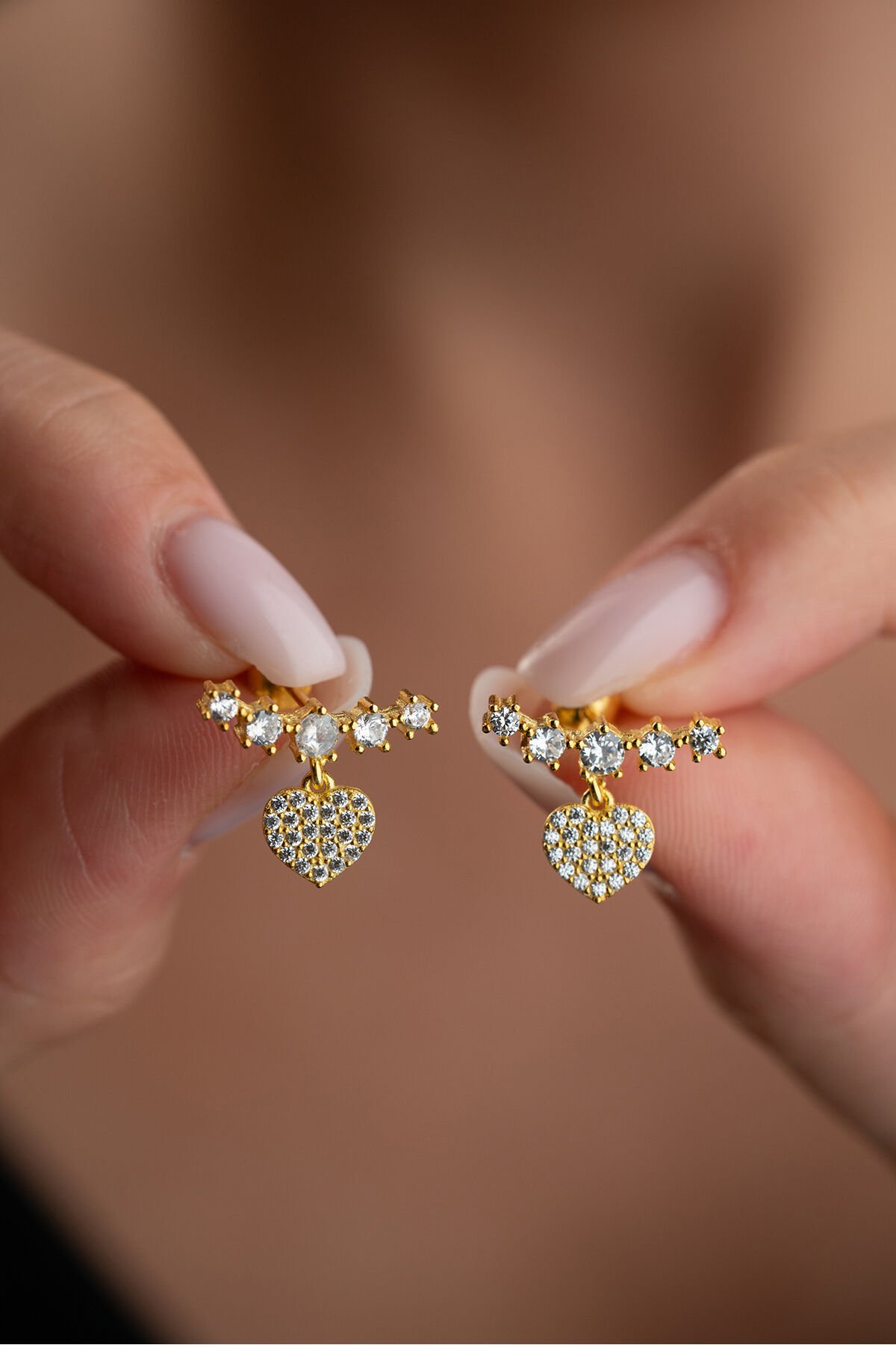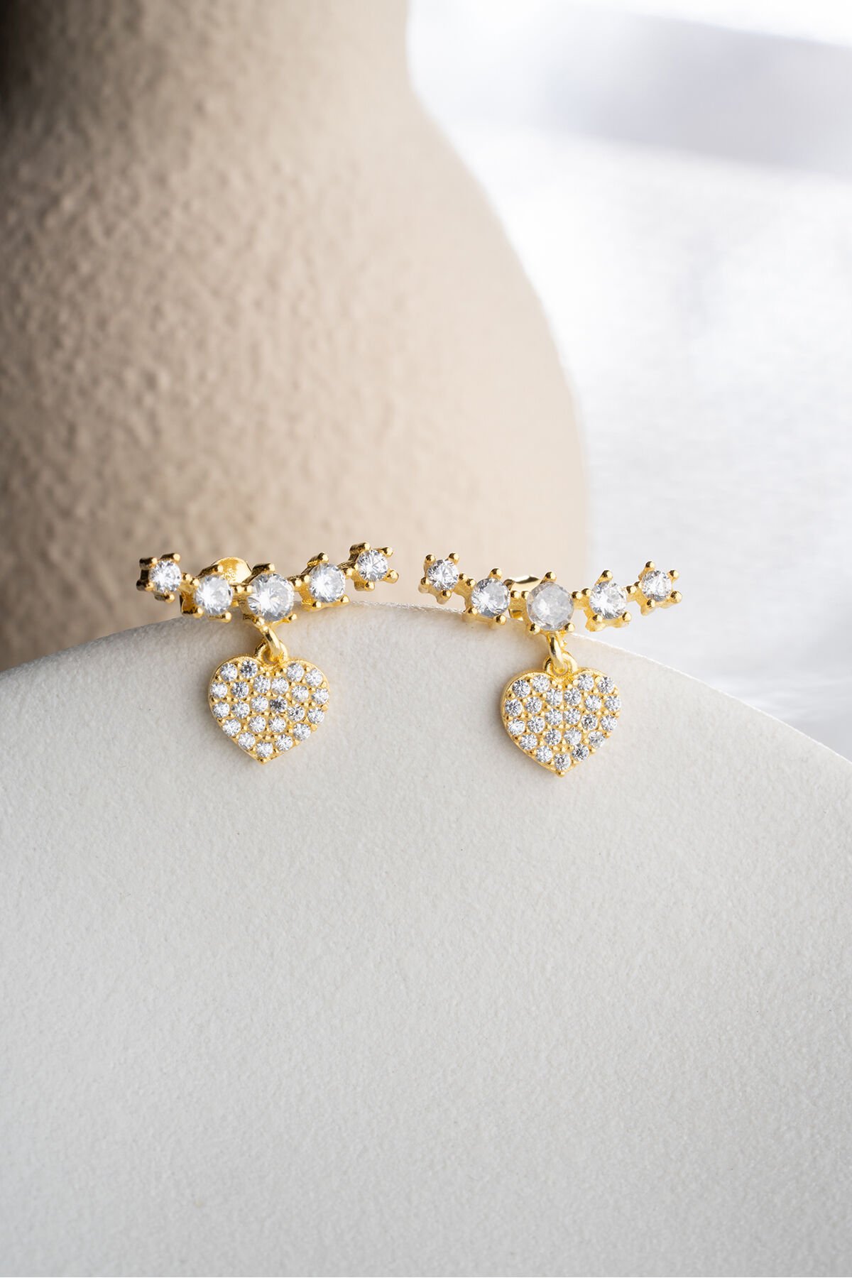 925 Ayar Gümüş Altın Kaplama Kalpli Küpe