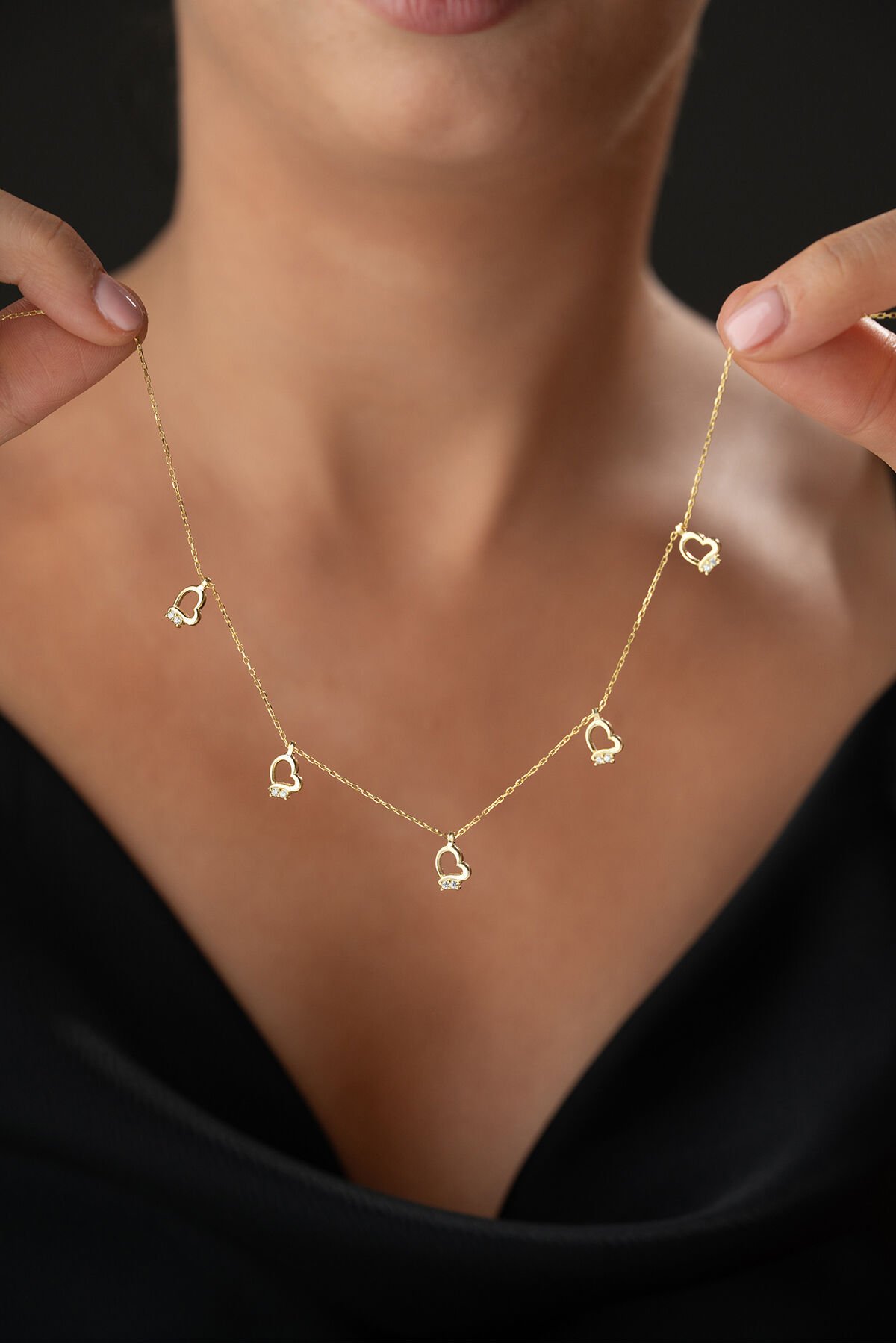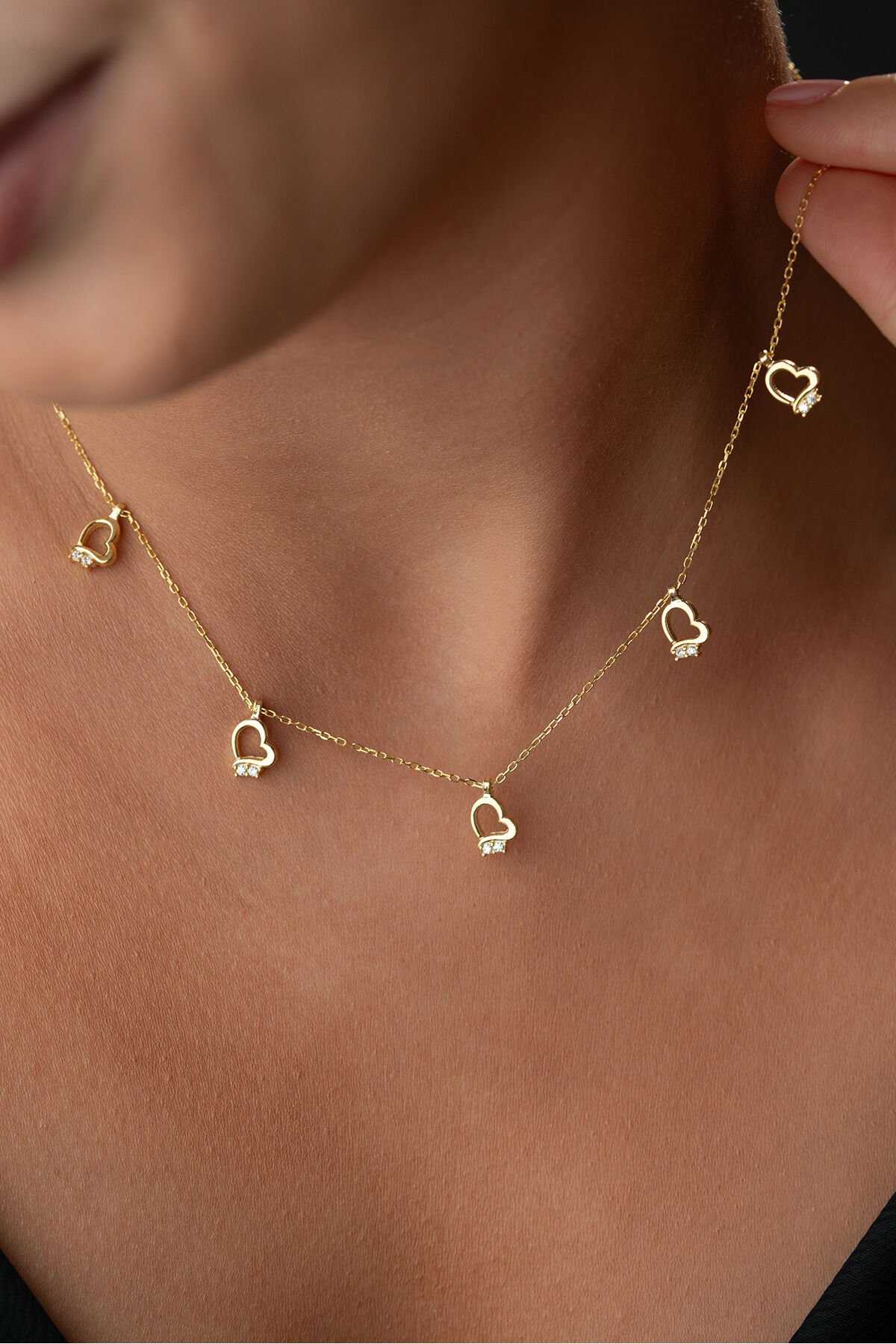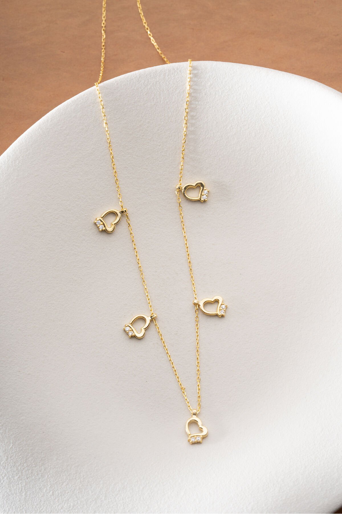 925 Ayar Gümüş Altın Kaplama Kalpli Model Şans Kolye
