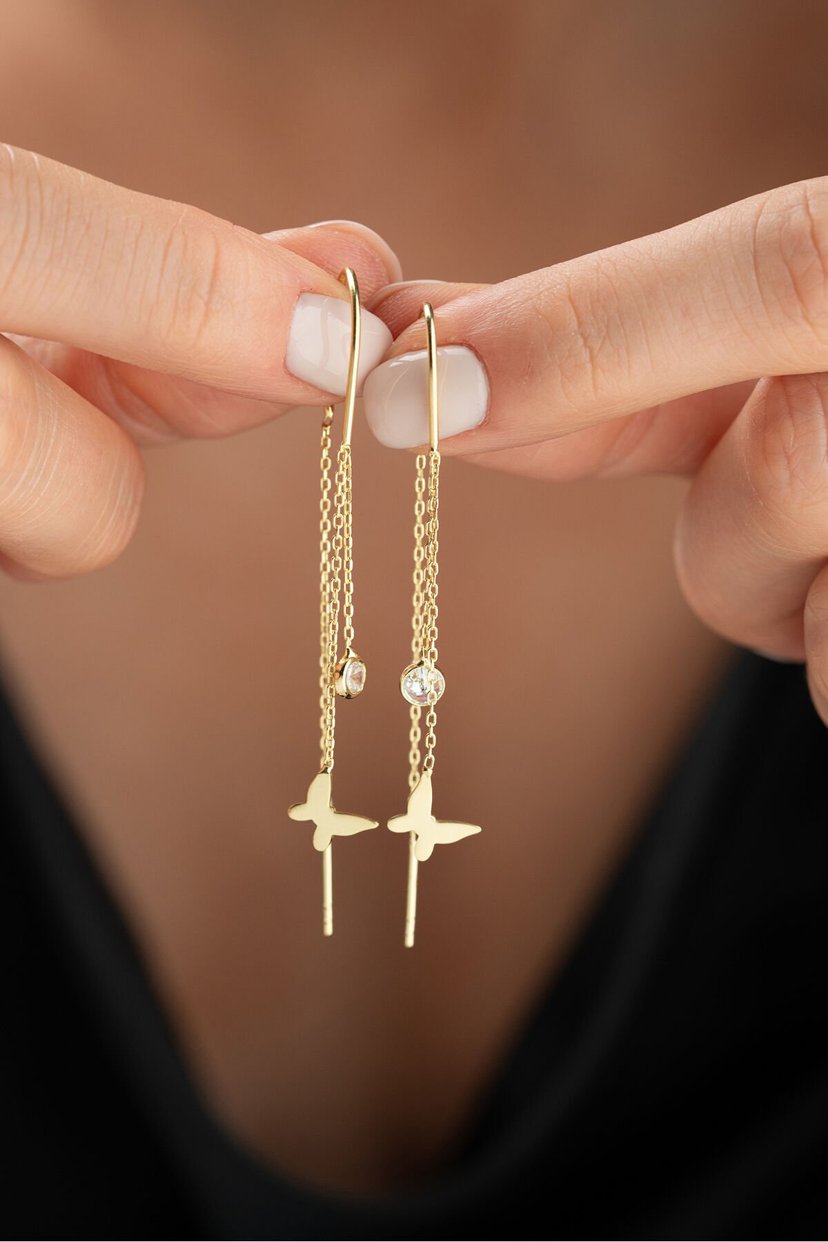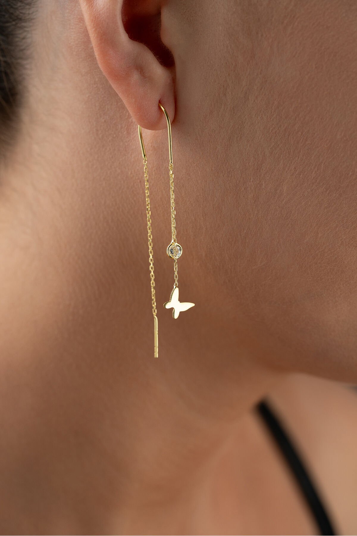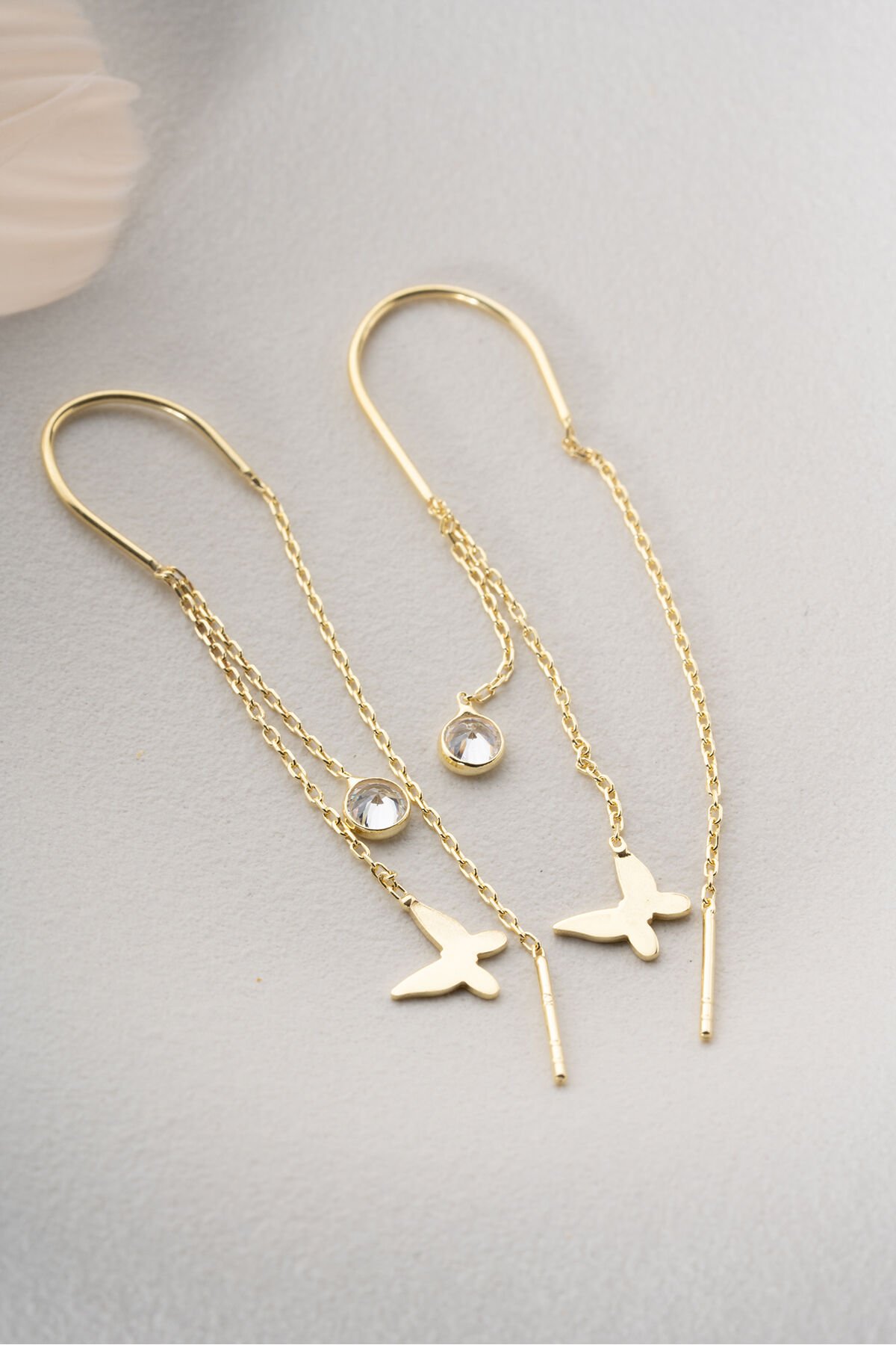 925 Ayar Gümüş Altın Kaplama Kalpli Sallantılı Küpe
