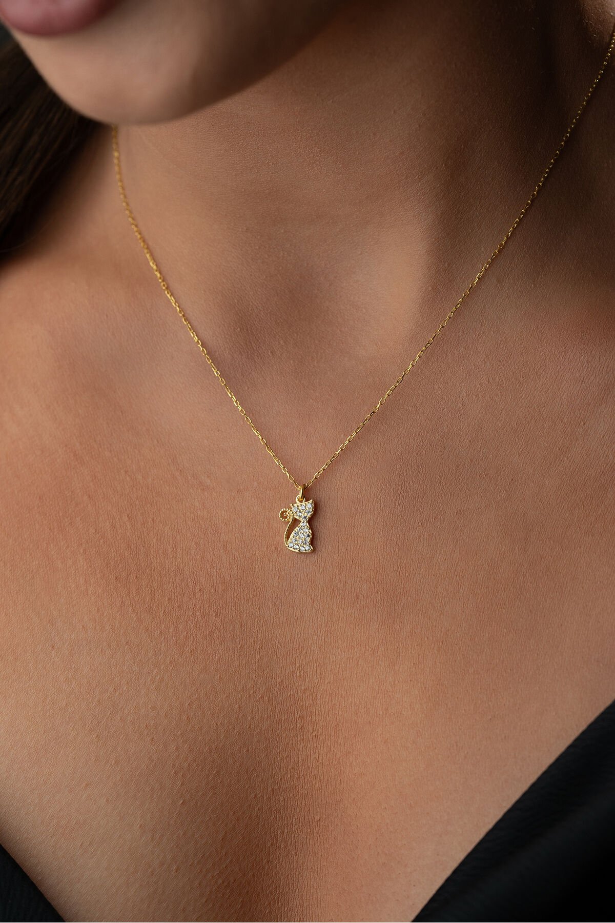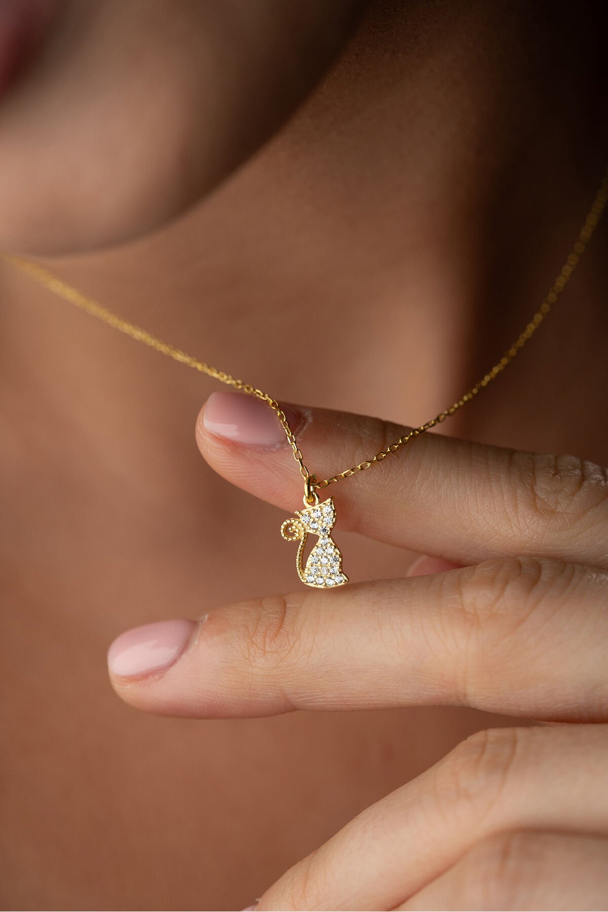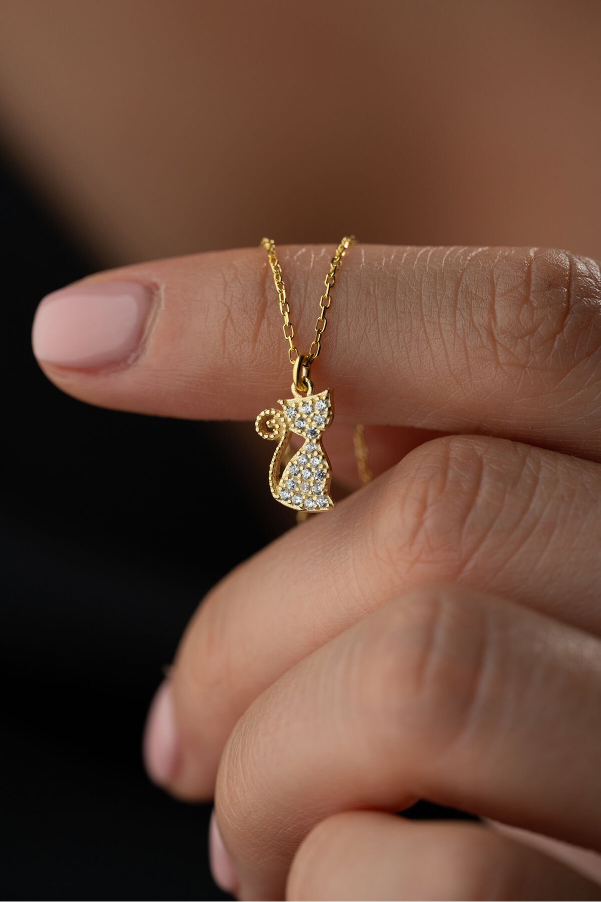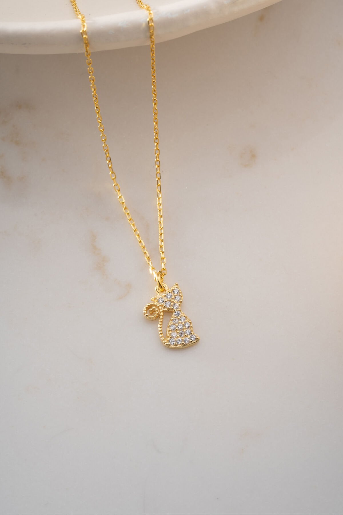 925 Ayar Gümüş Altın Kaplama Kedi Kolye