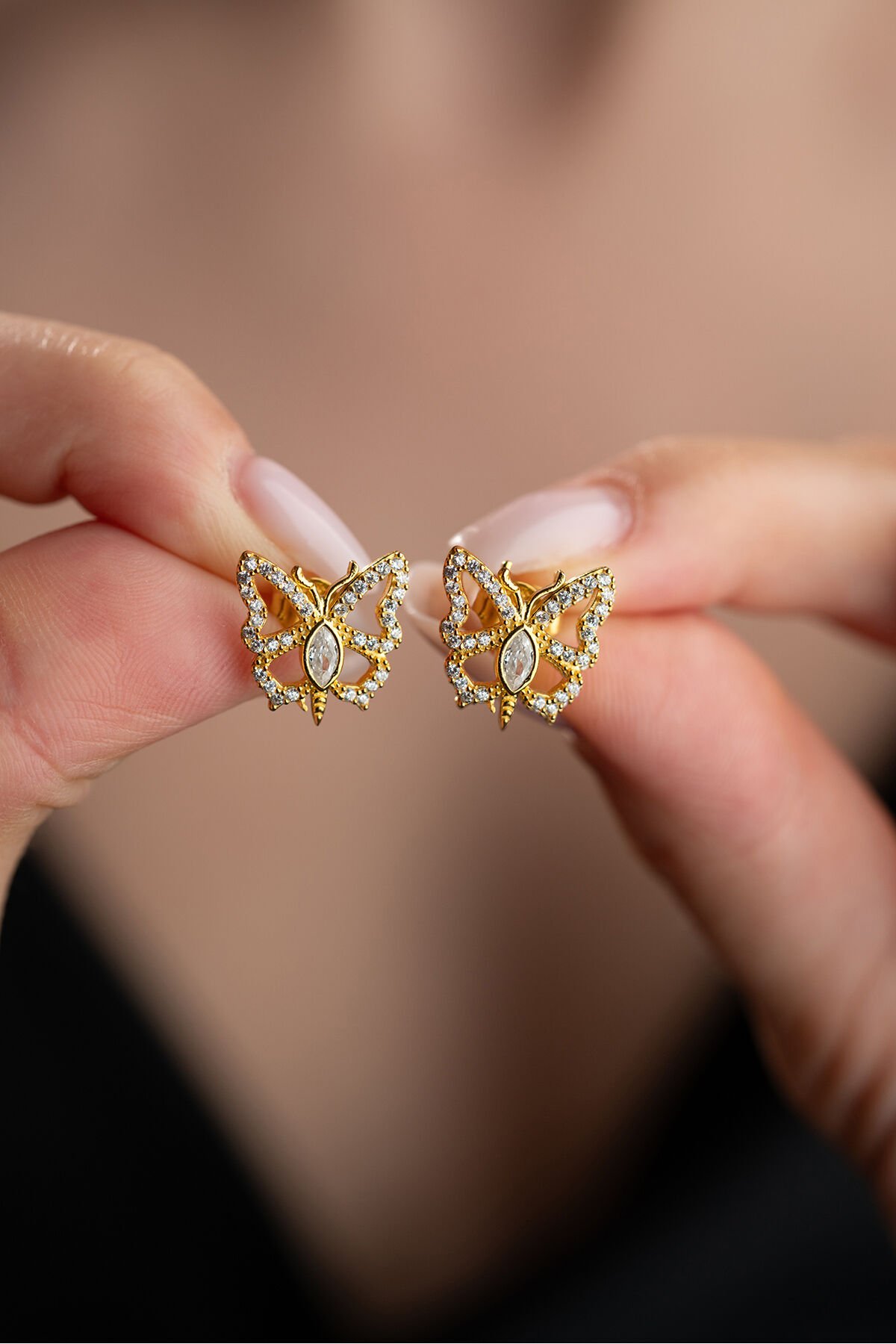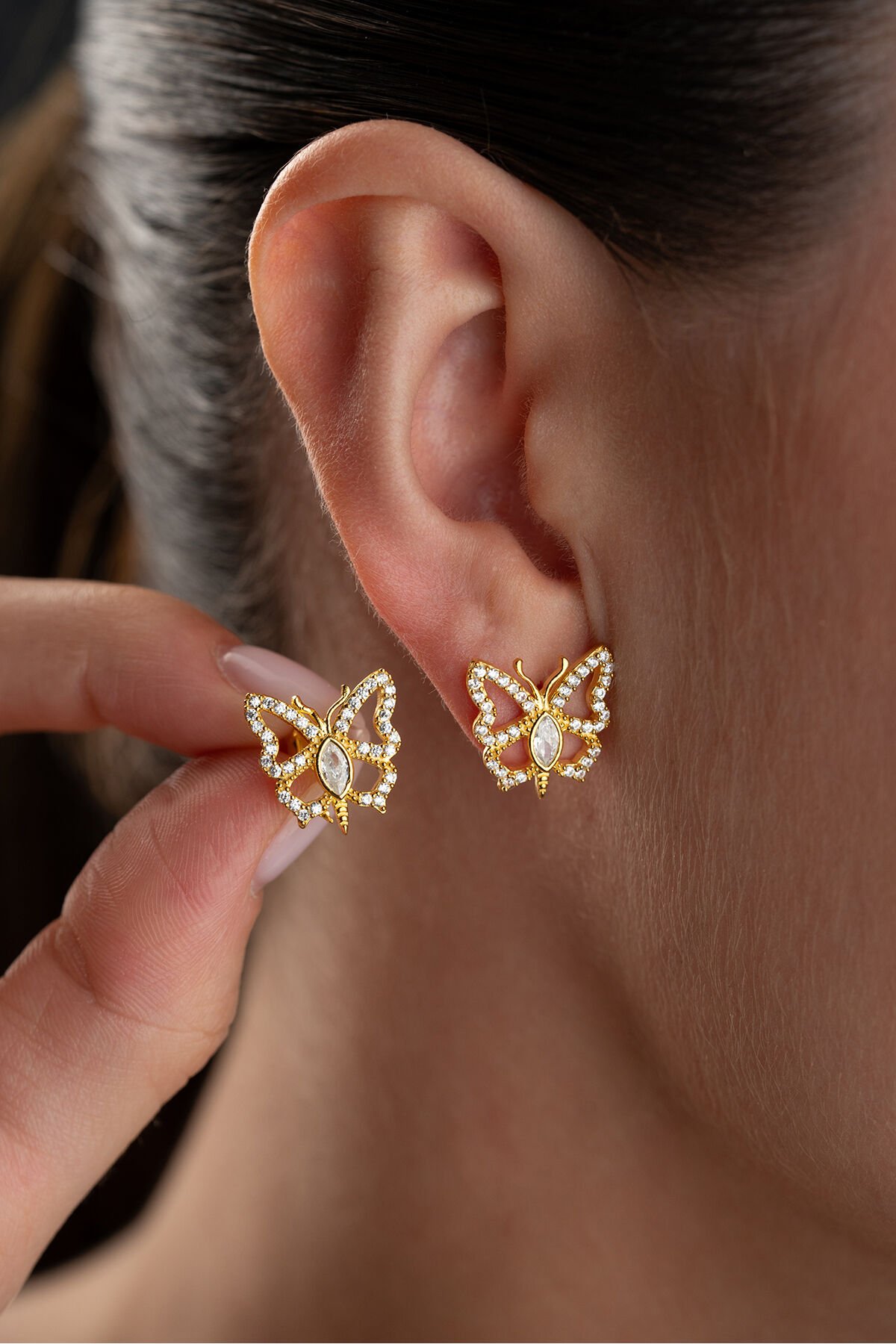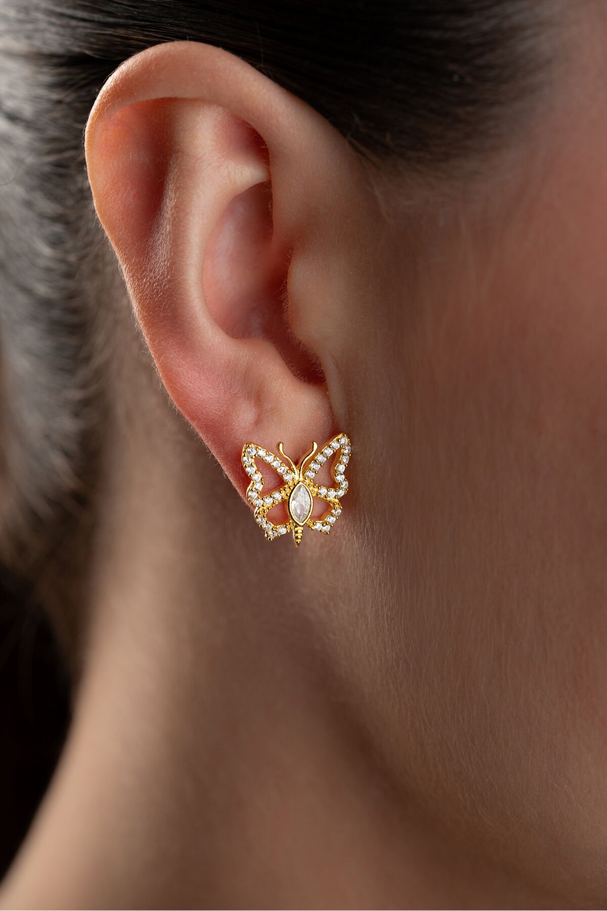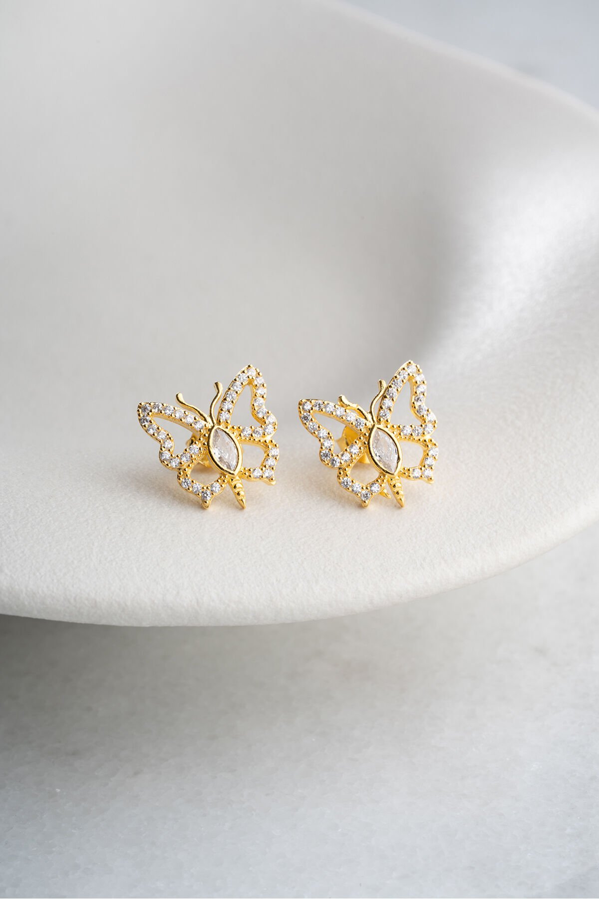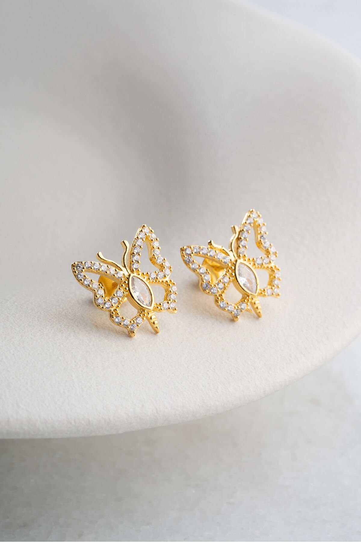925 Ayar Gümüş Altın Kaplama Kelebek Küpe