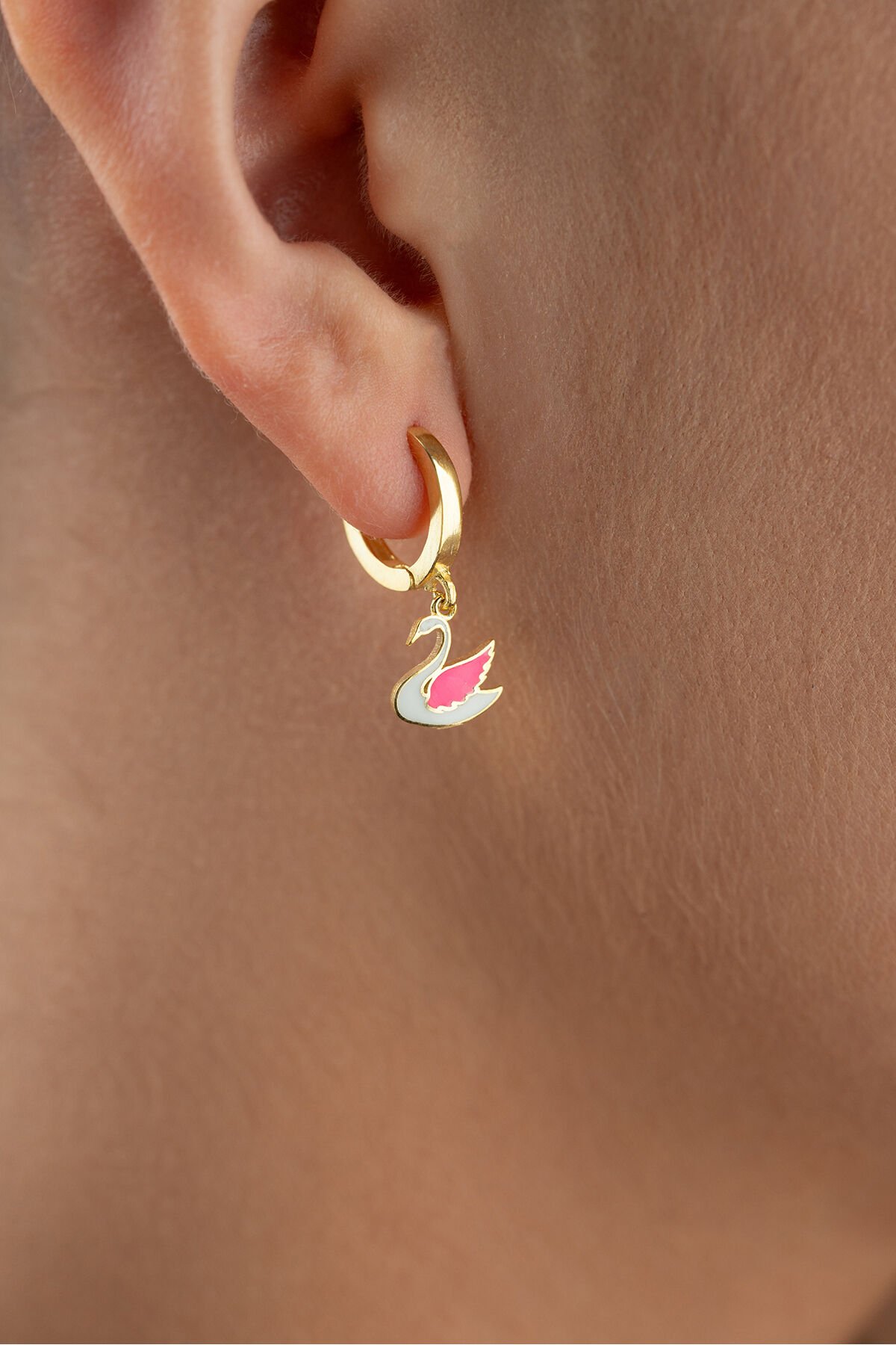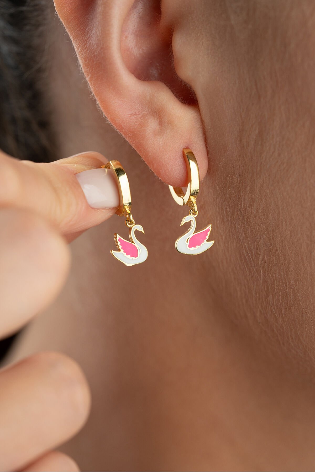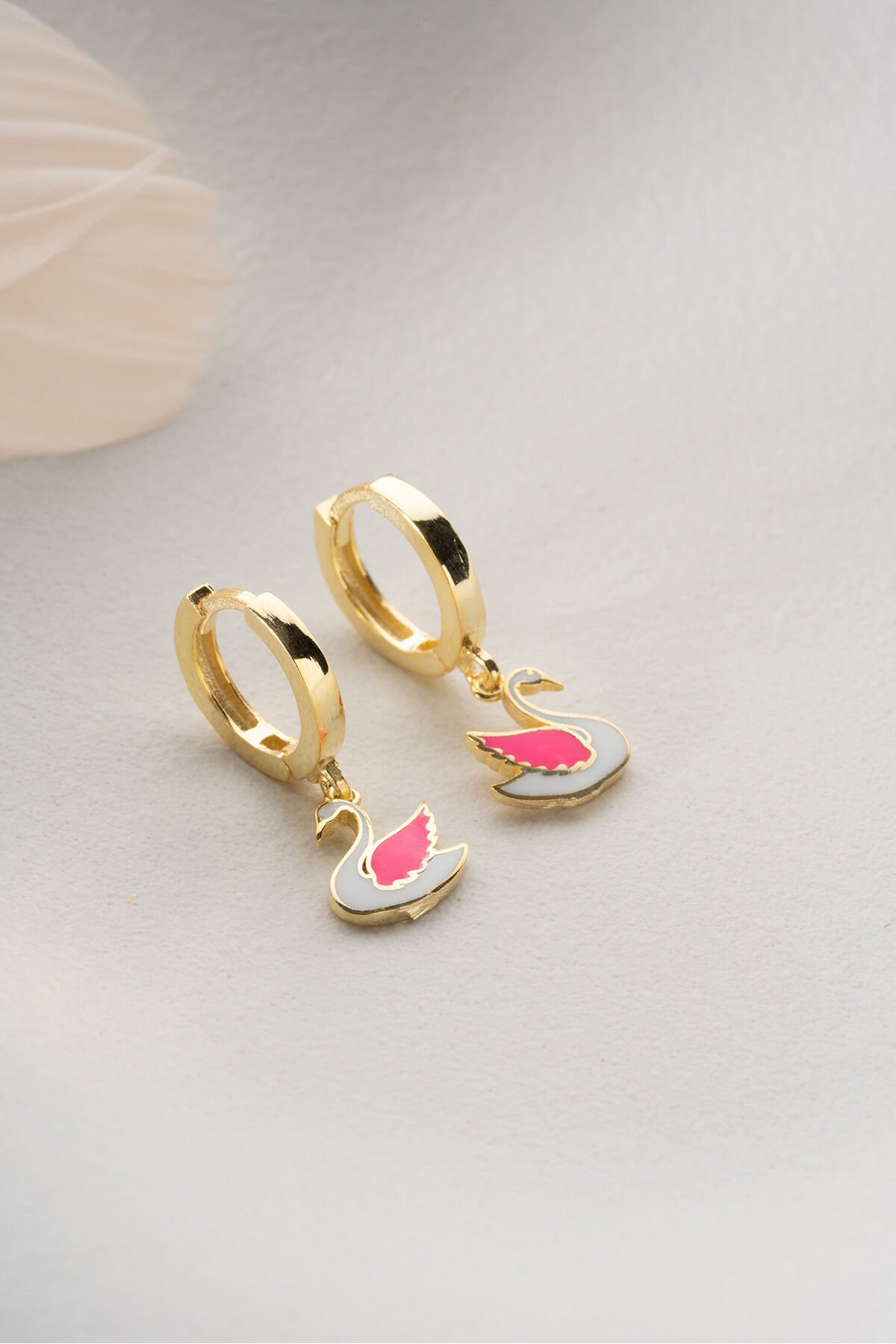 925 Ayar Gümüş Altın Kaplama Kuğu Çocuk Küpesi