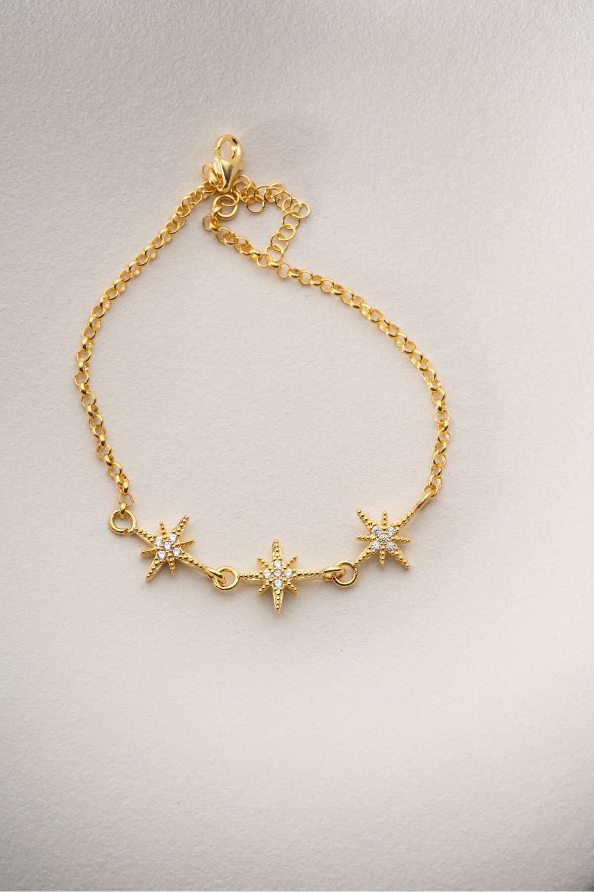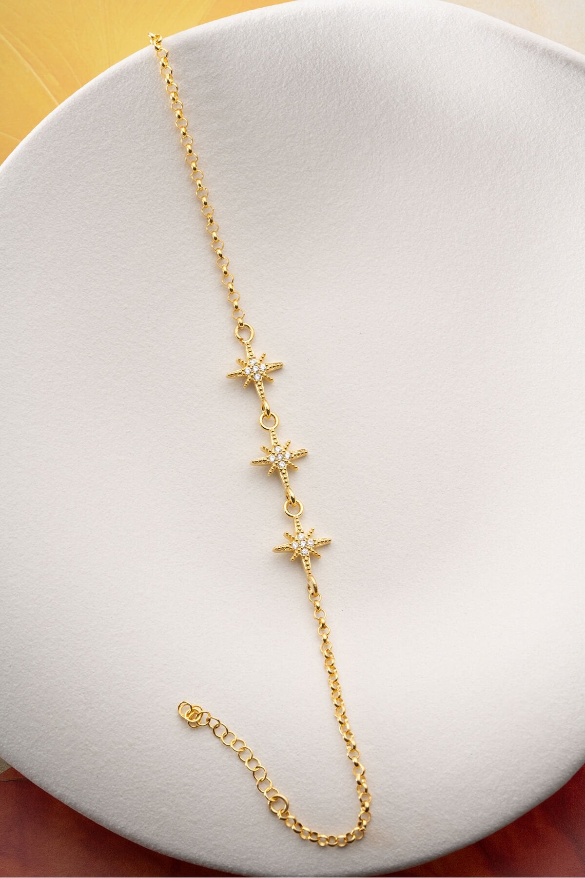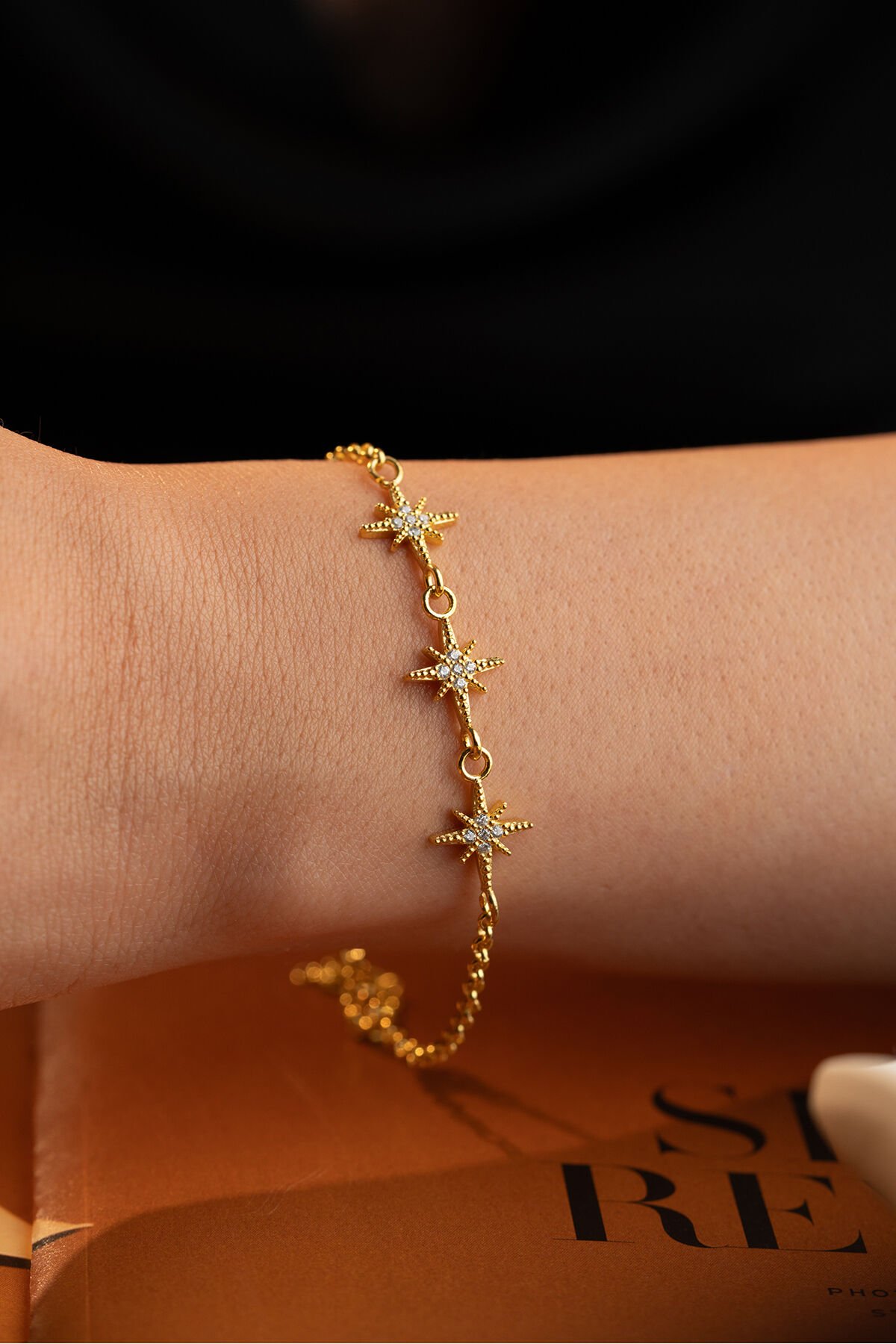 925 Ayar Gümüş Altın Kaplama Kutup Yıldızı Bileklik