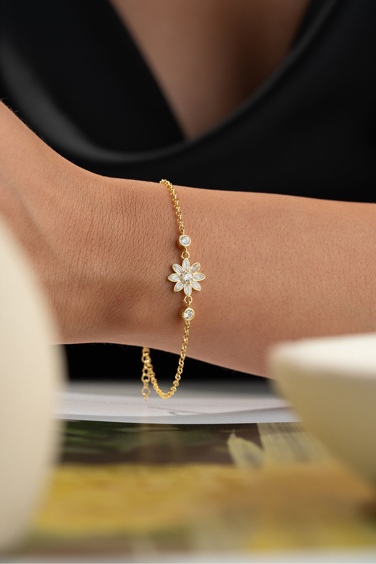 925 Ayar Gümüş Altın Kaplama Lotus Bileklik