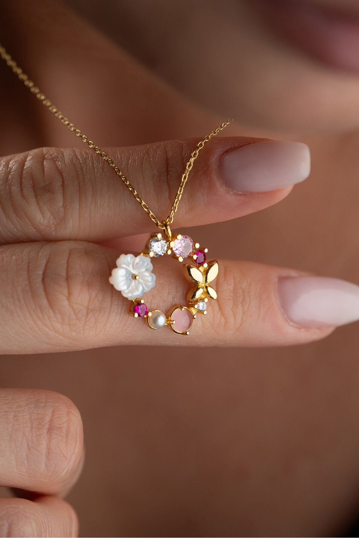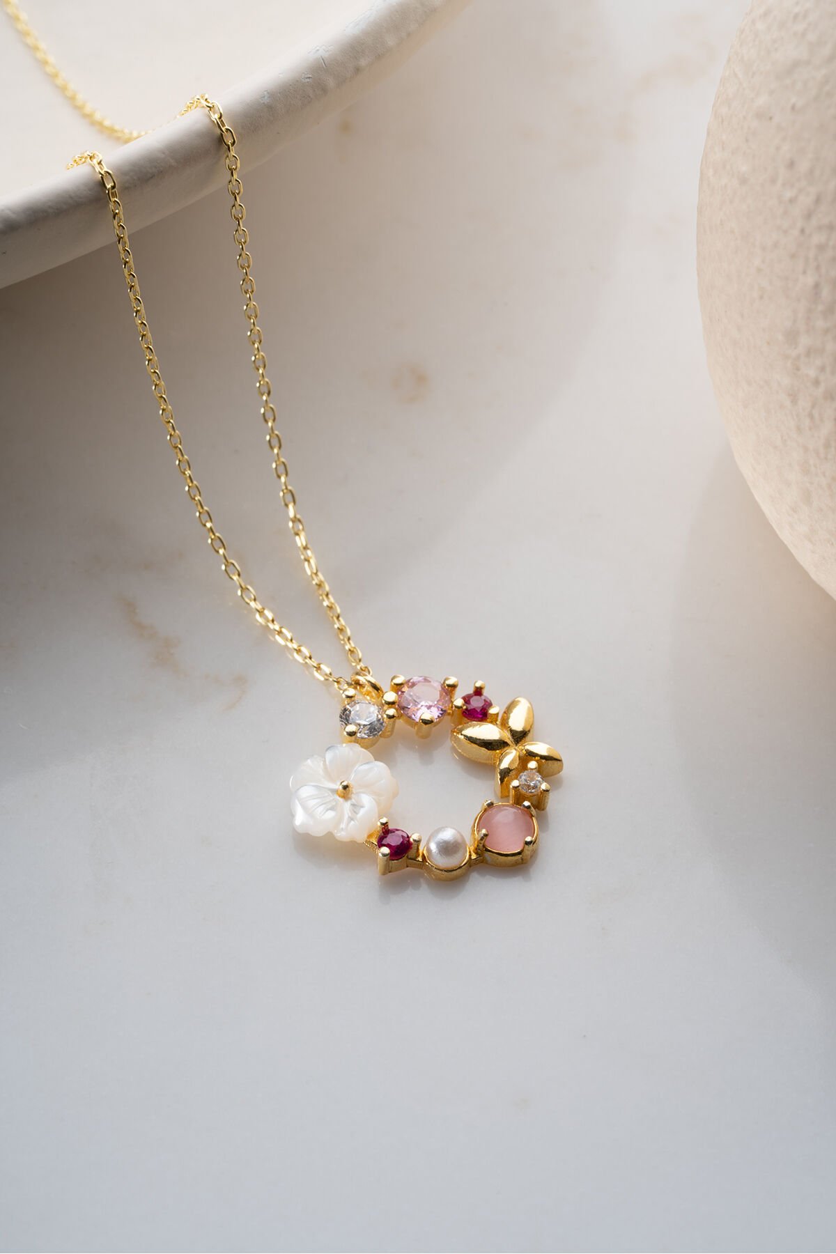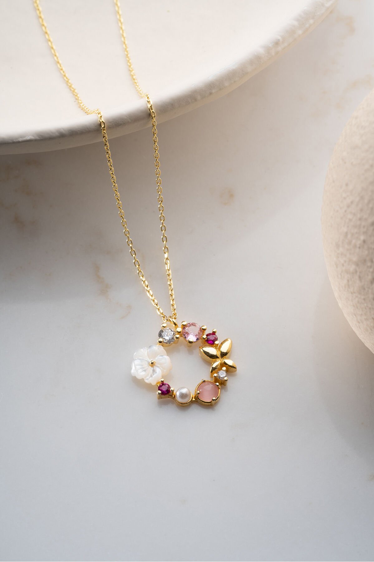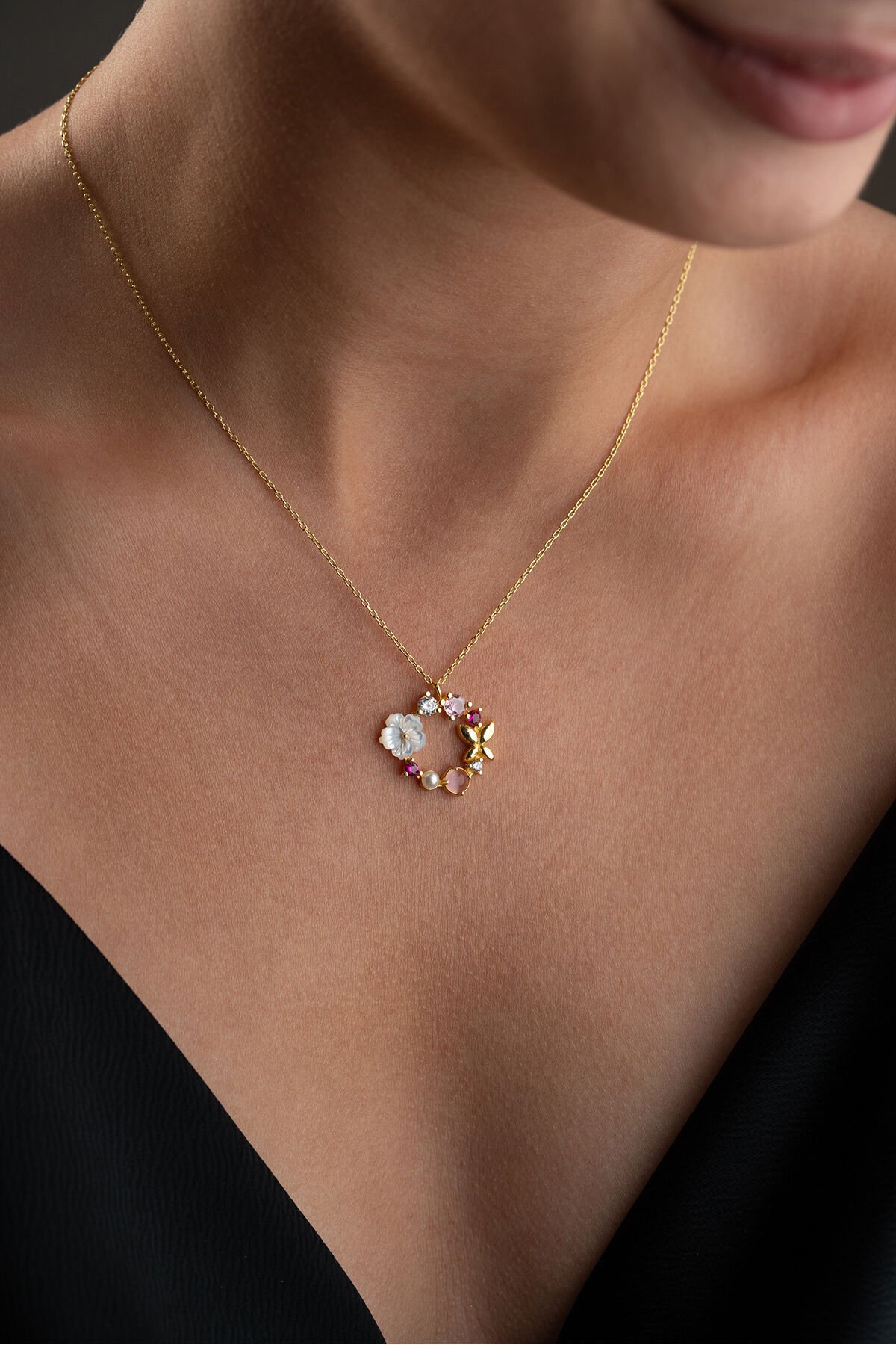 925 Ayar Gümüş Altın Kaplama Manolya Çiçeği Kolye