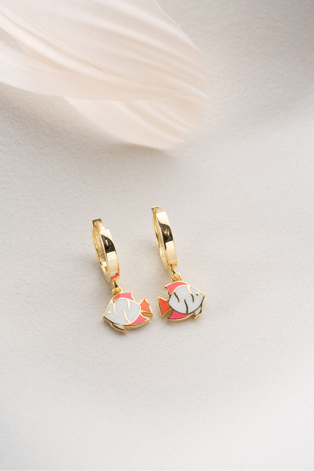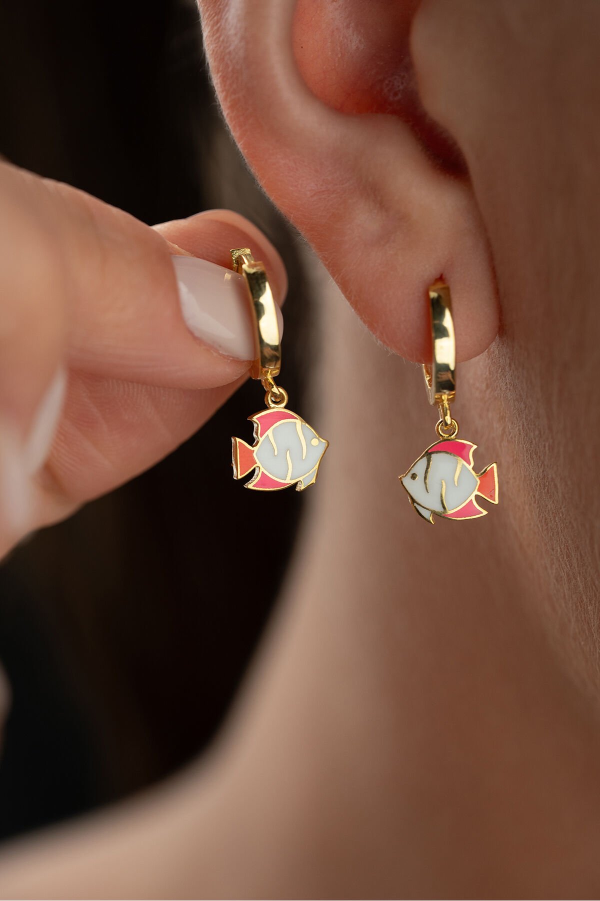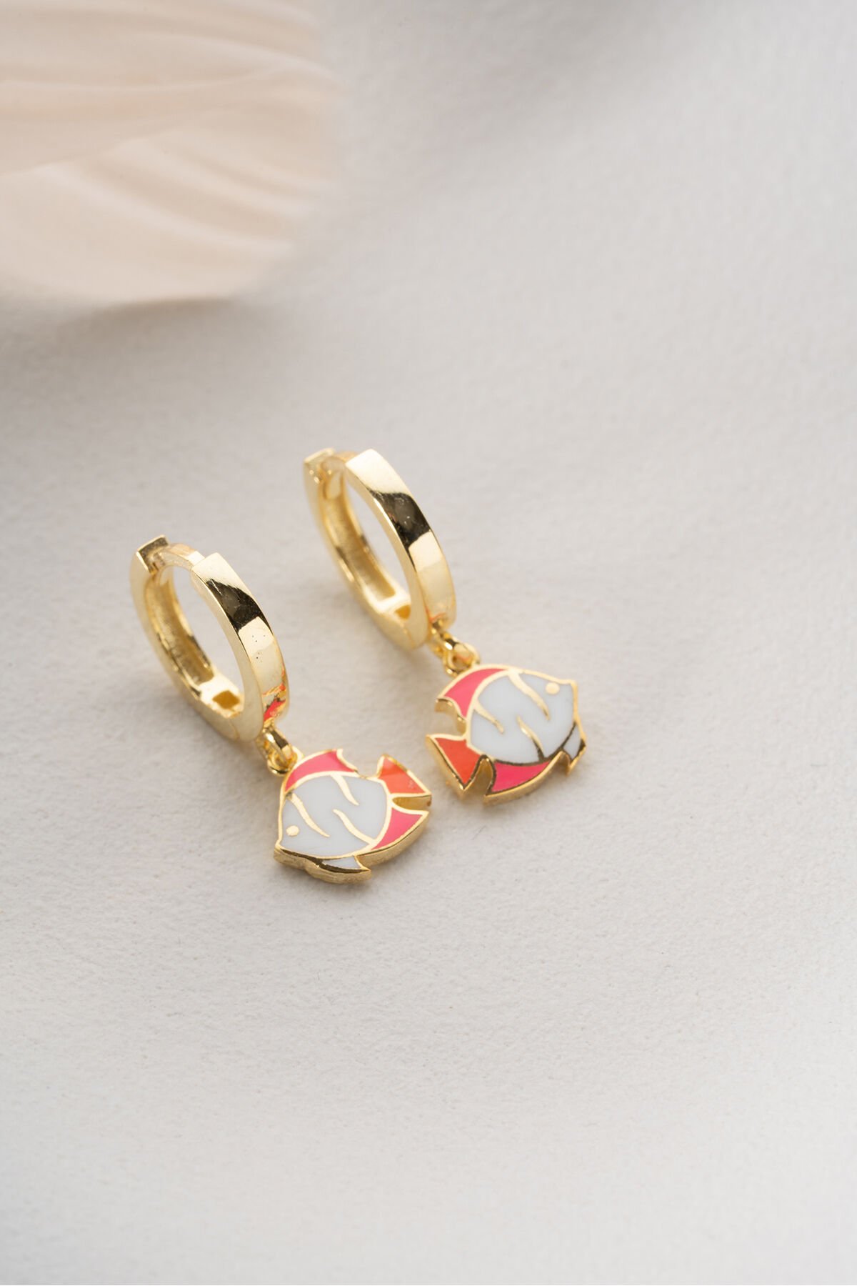 925 Ayar Gümüş Altın Kaplama Mineli Balık Çocuk Küpesi
