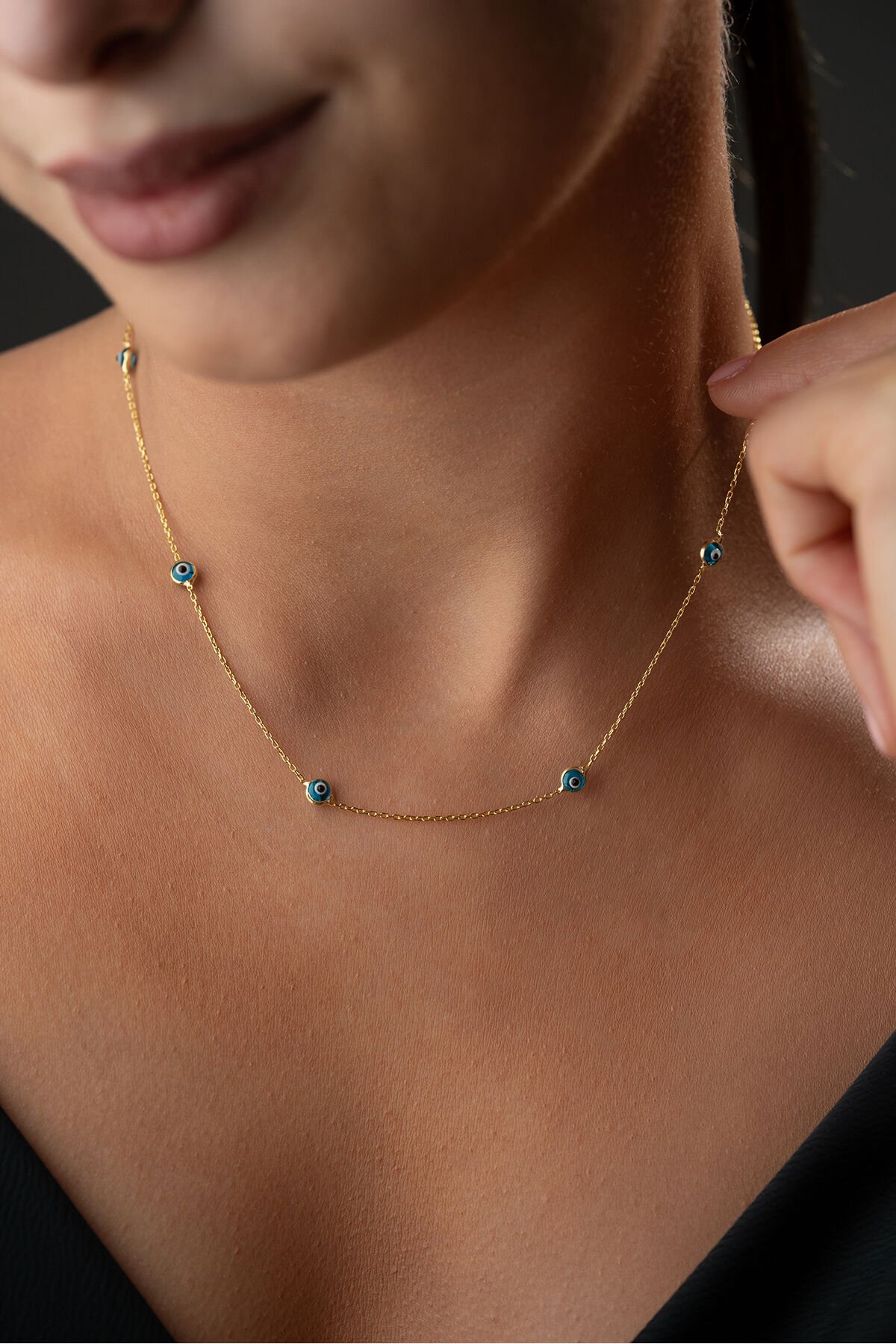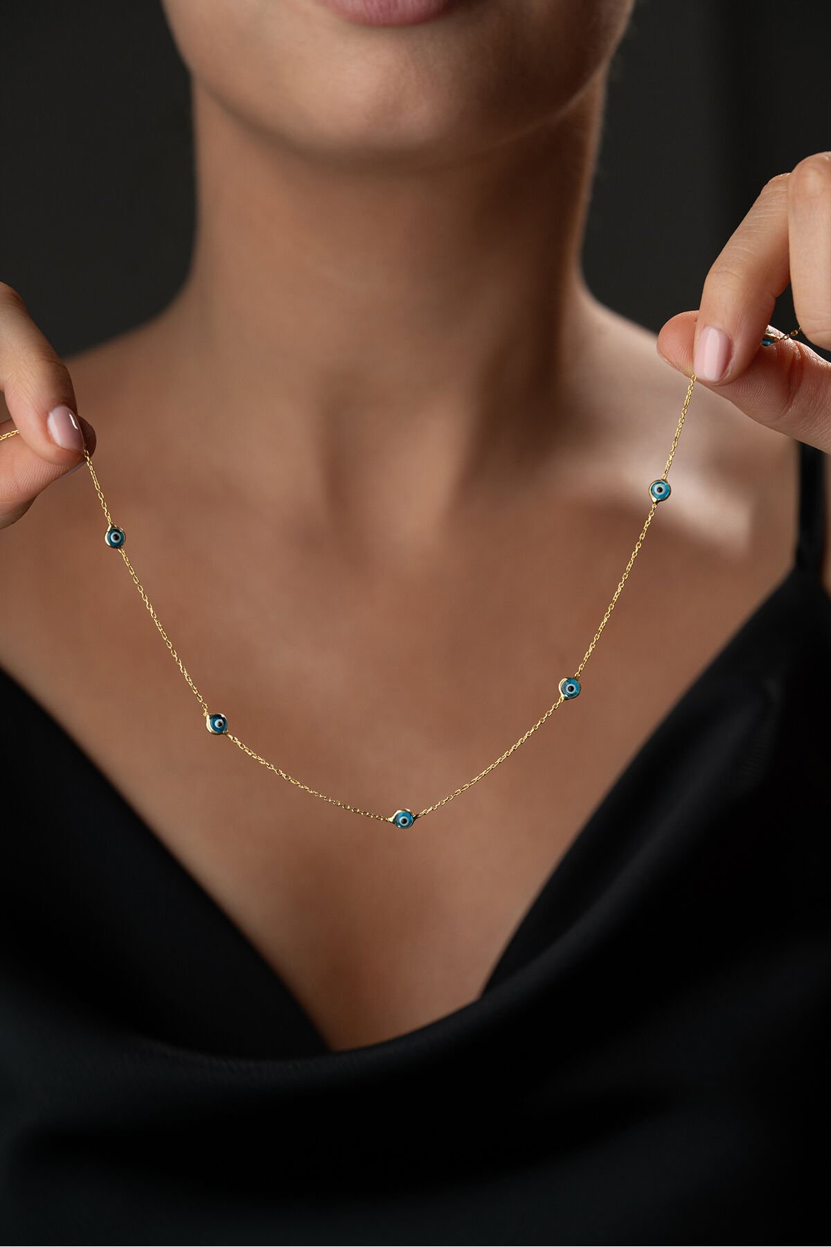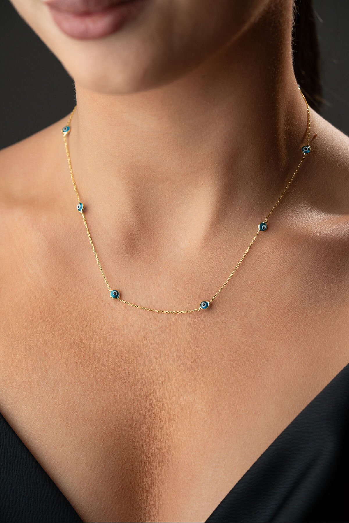 925 Ayar Gümüş Altın Kaplama Nazar Boncuklu Kolye