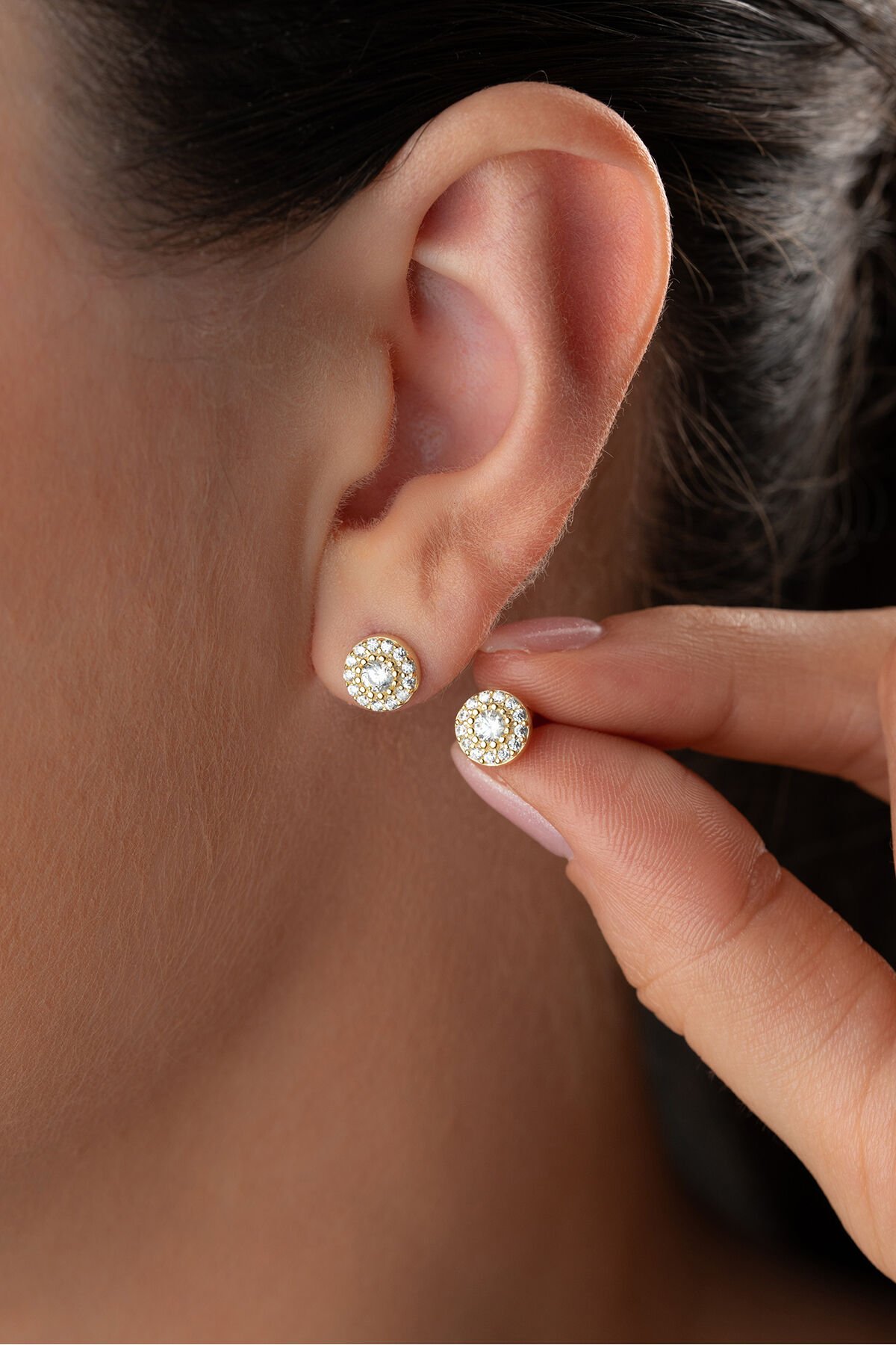 925 Ayar Gümüş Altın Kaplama Taşlı Model Küpe