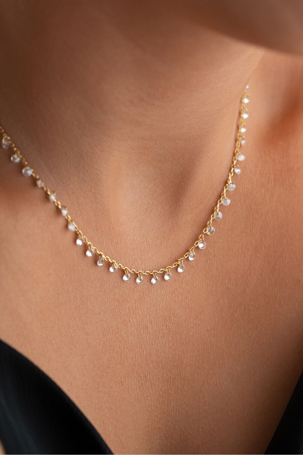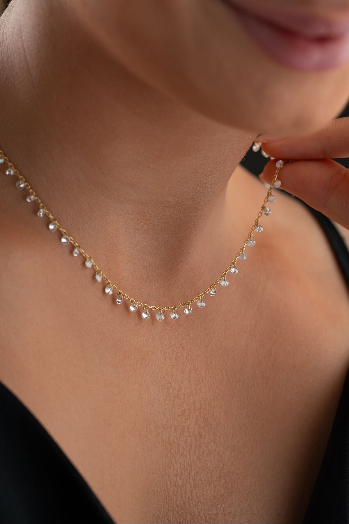 925 Ayar Gümüş Altın Kaplama Taşlı Model Özel Tasarım Kolye