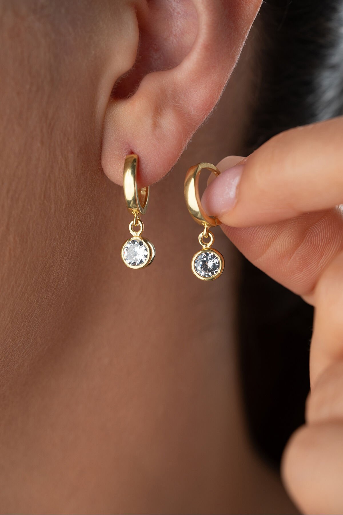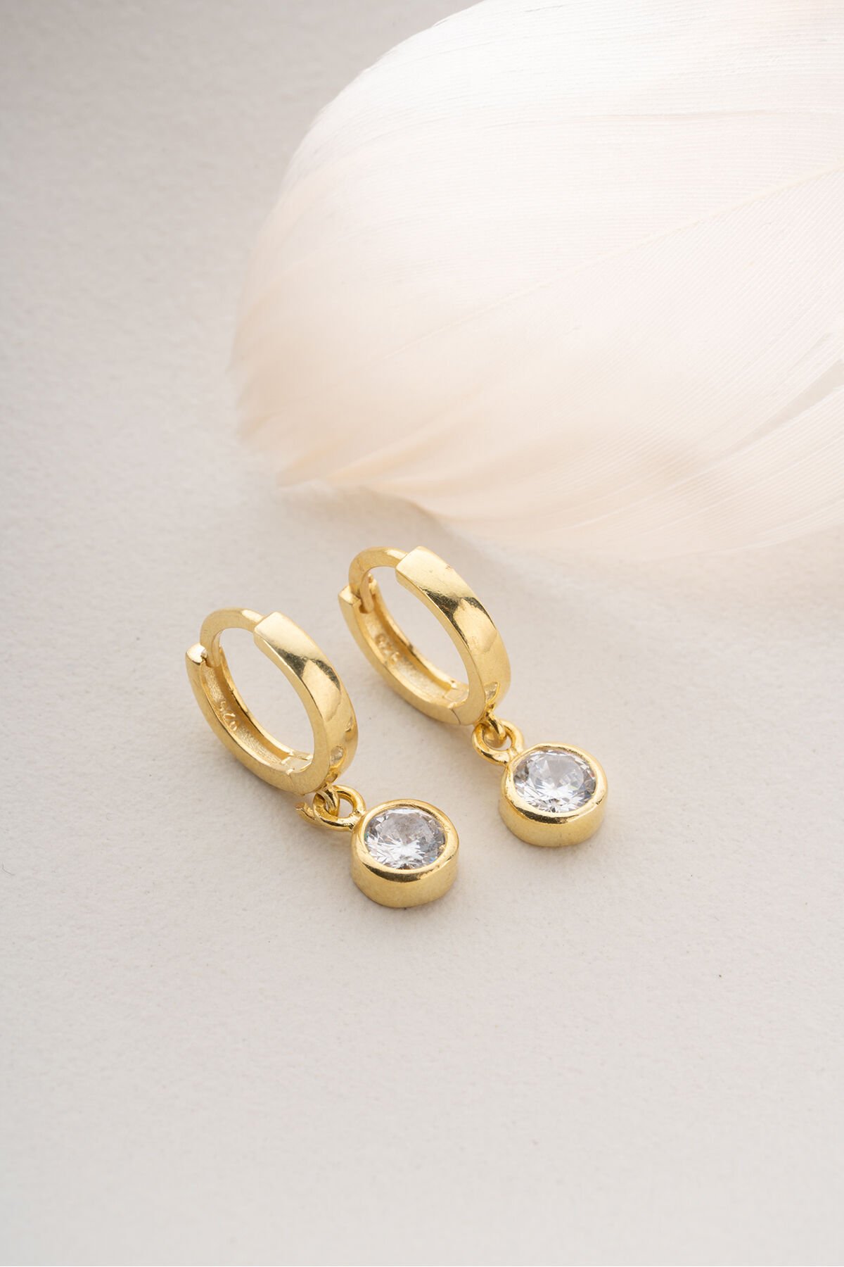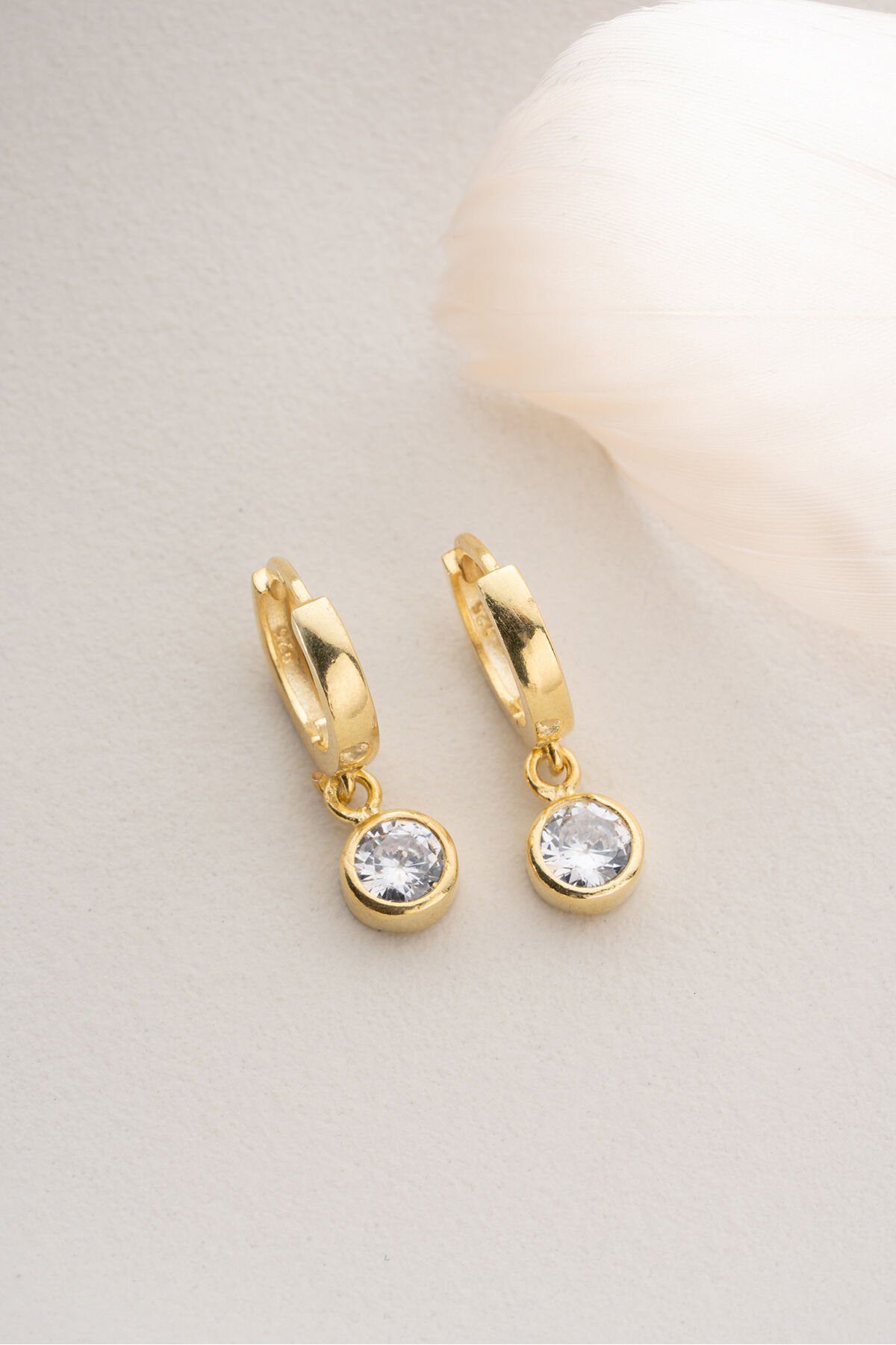 925 Ayar Gümüş Altın Kaplama Tektaşlı Küpe