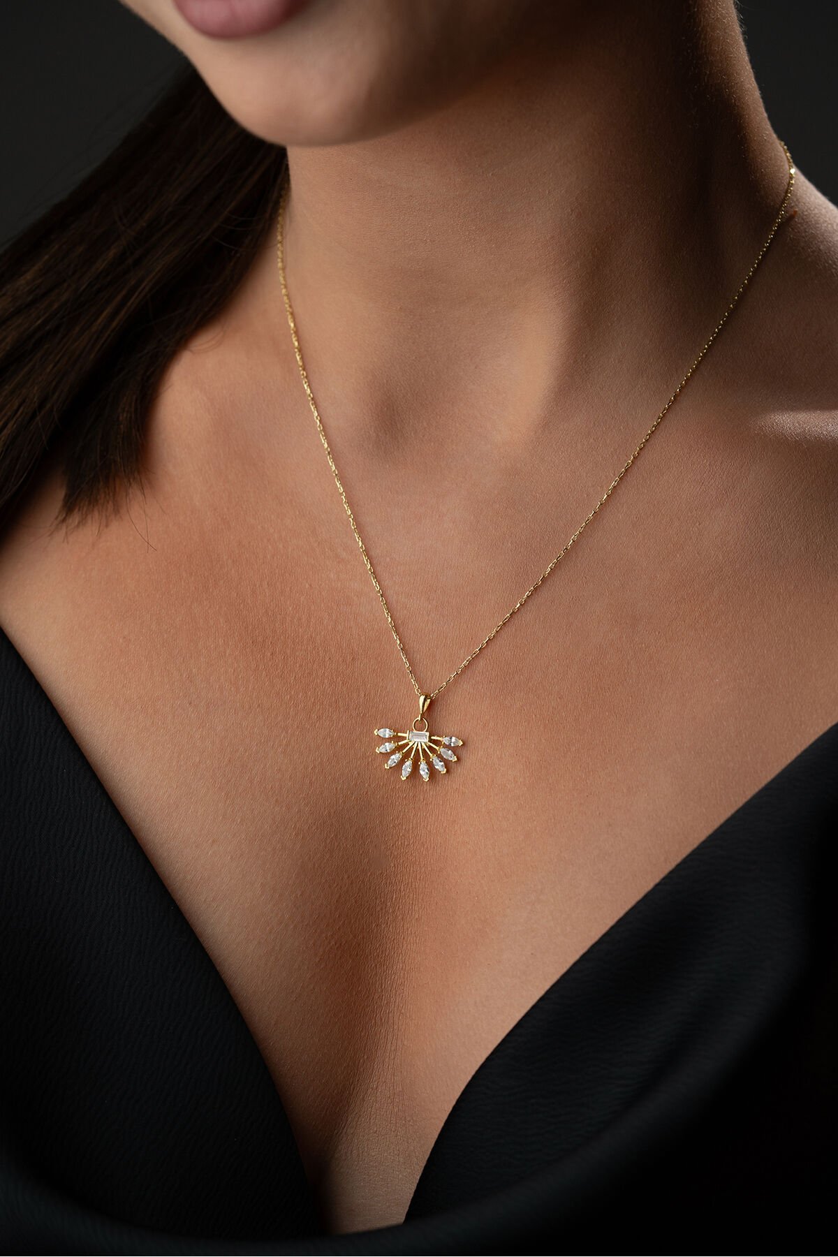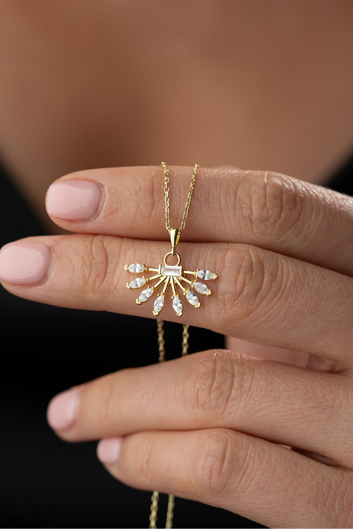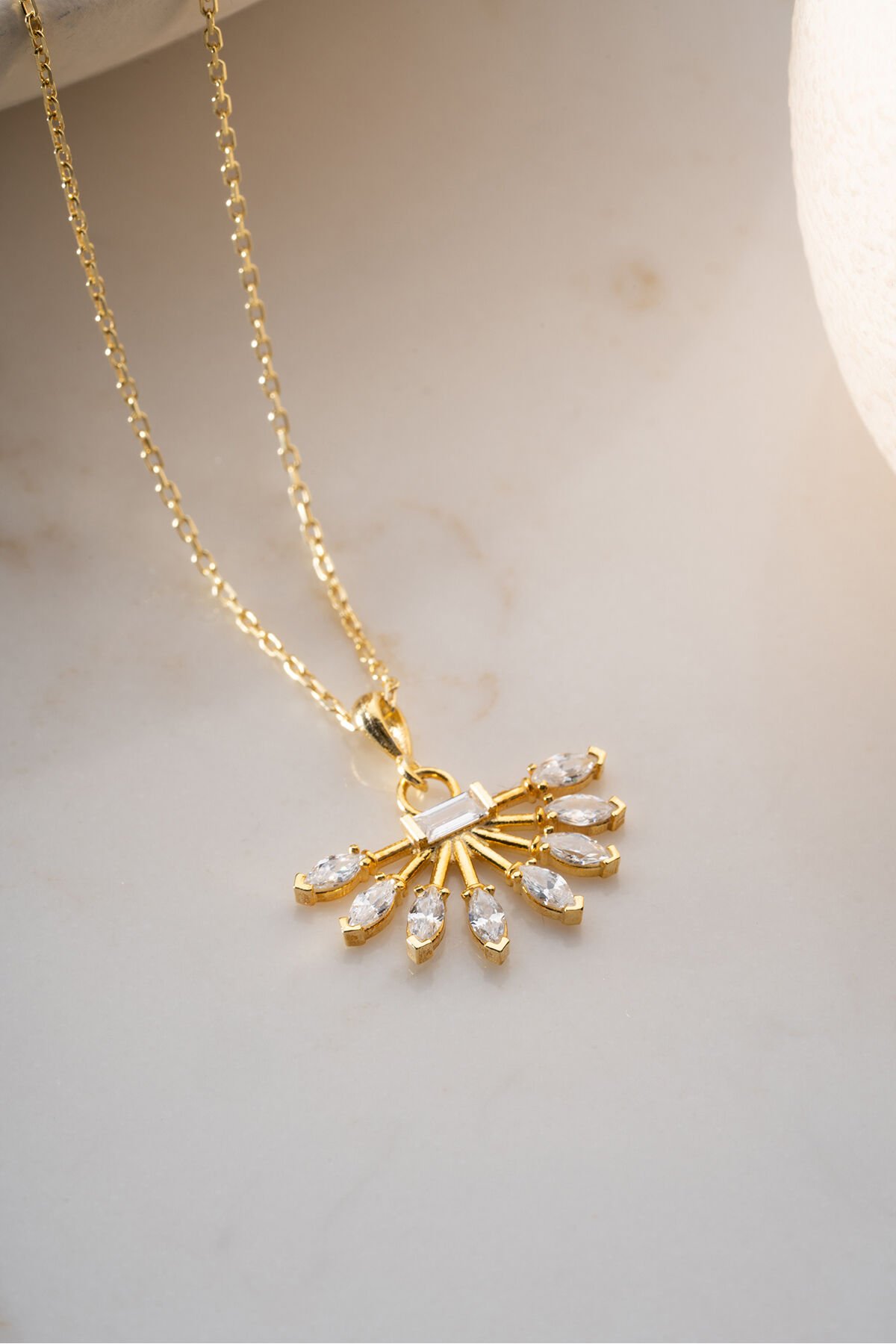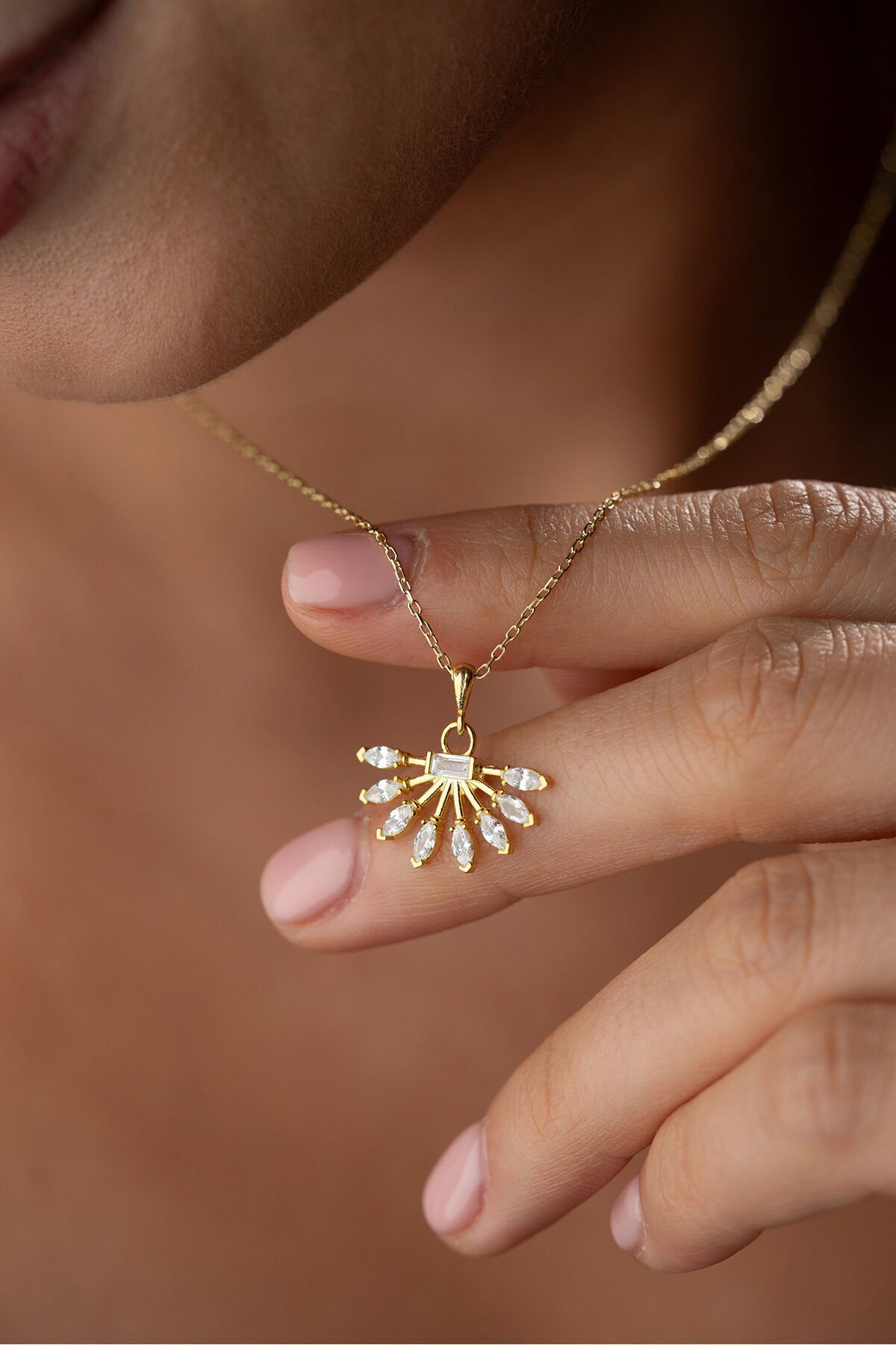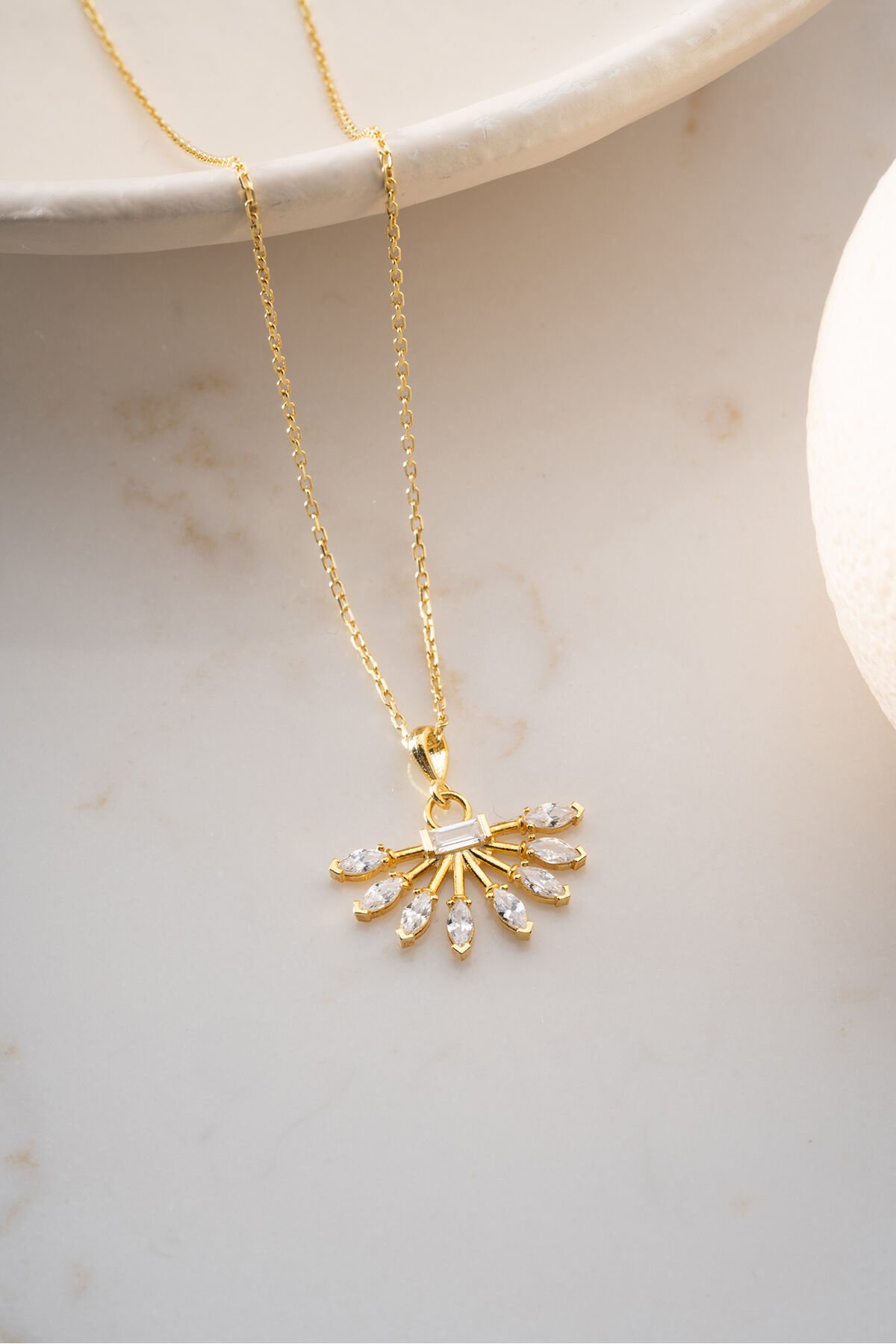 925 Ayar Gümüş Altın Kaplama Yelpaze Kolye