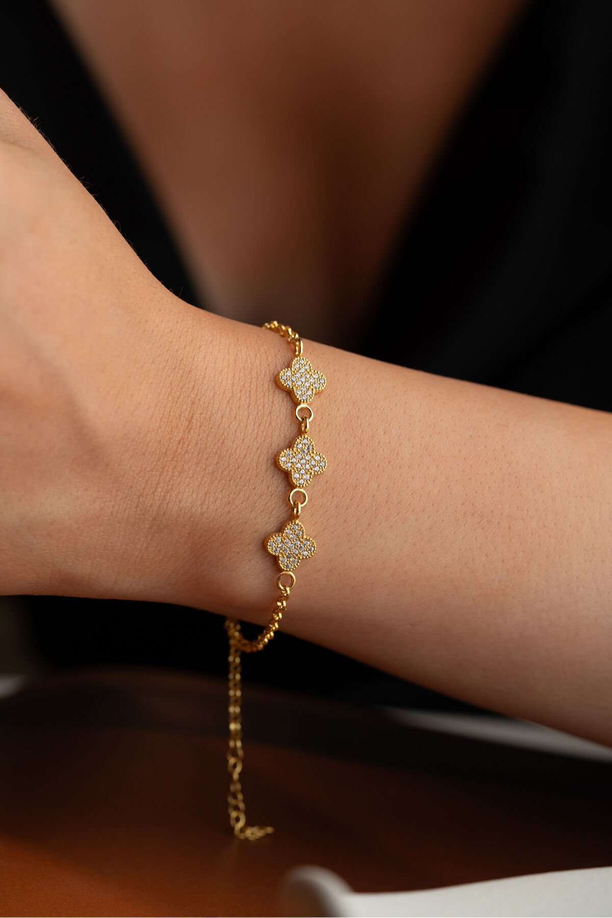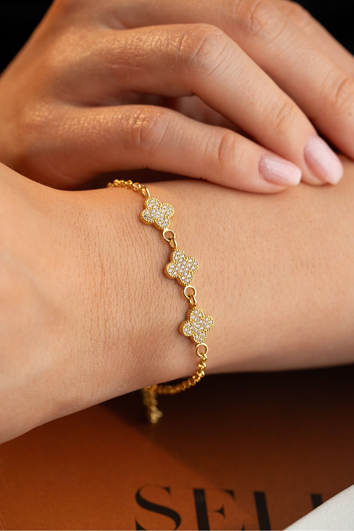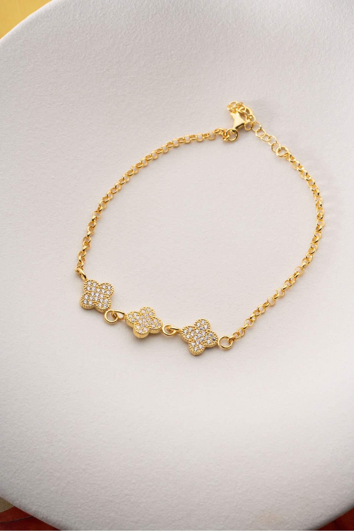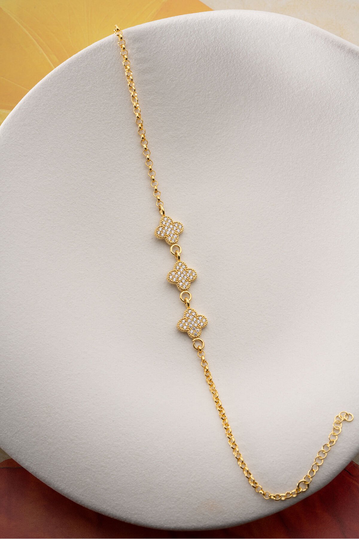 925 Ayar Gümüş Altın Kaplama Yonca Model Bileklik