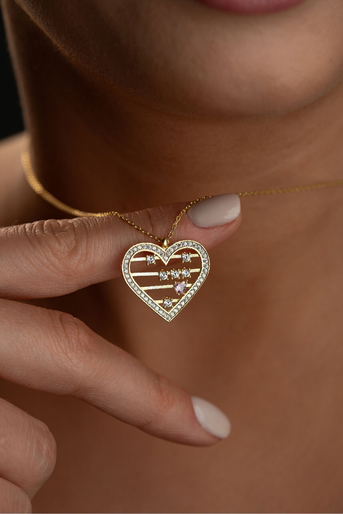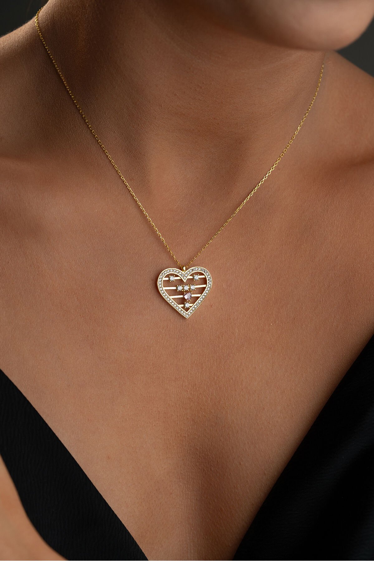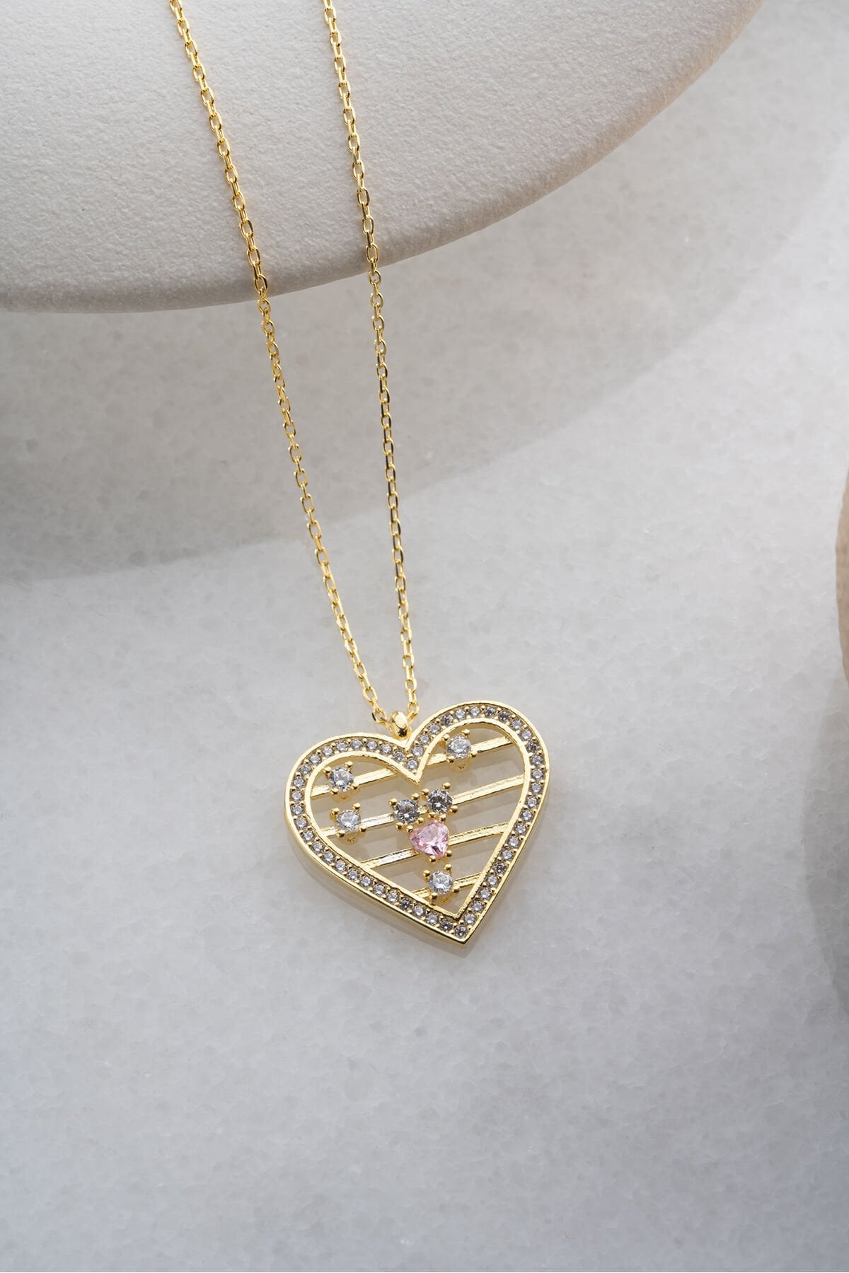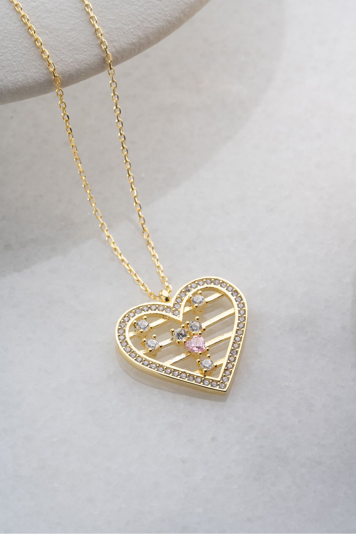 925 Ayar Gümüş Altın Kaplama Zirkon Taşlı Kolye