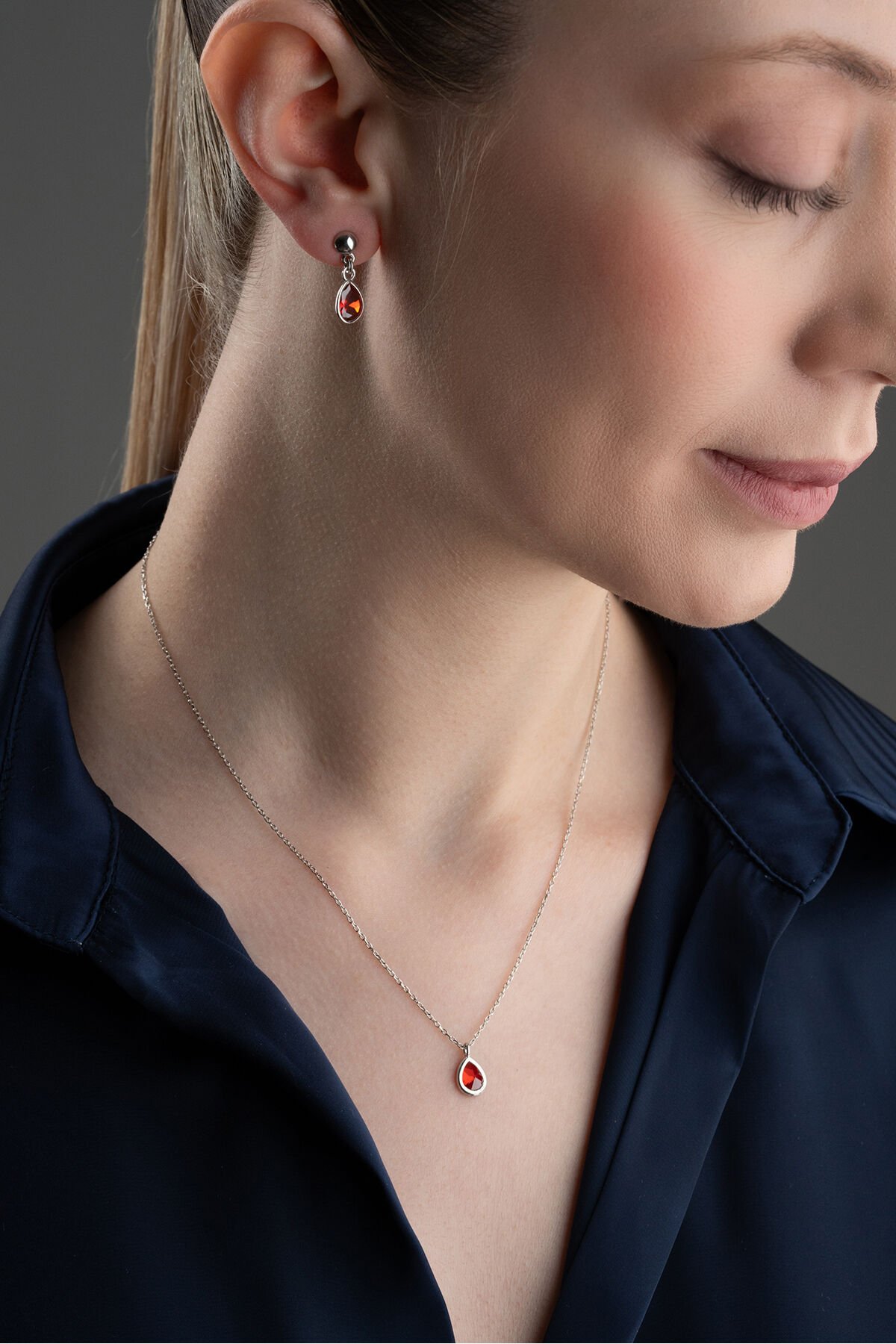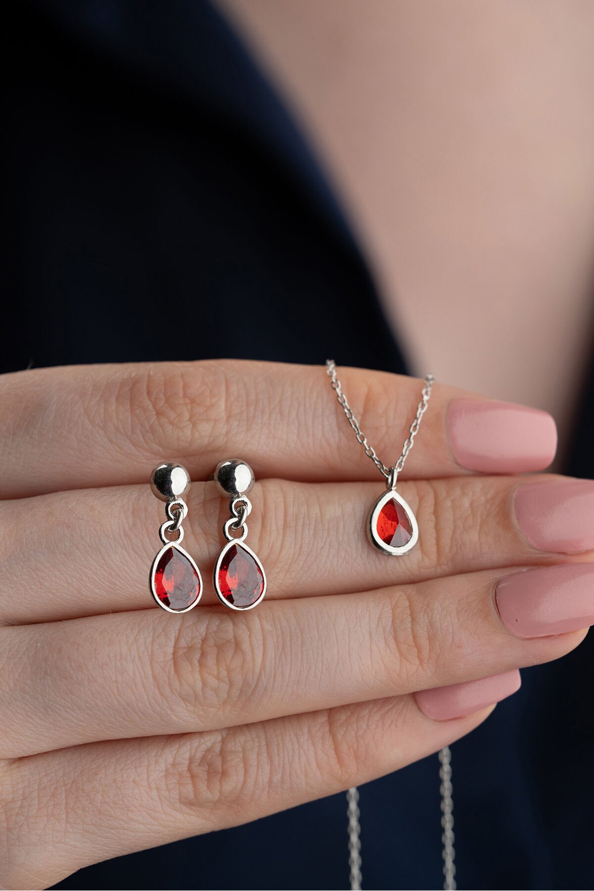 925 Ayar Gümüş Amatis Taşlı Damla Takı Seti