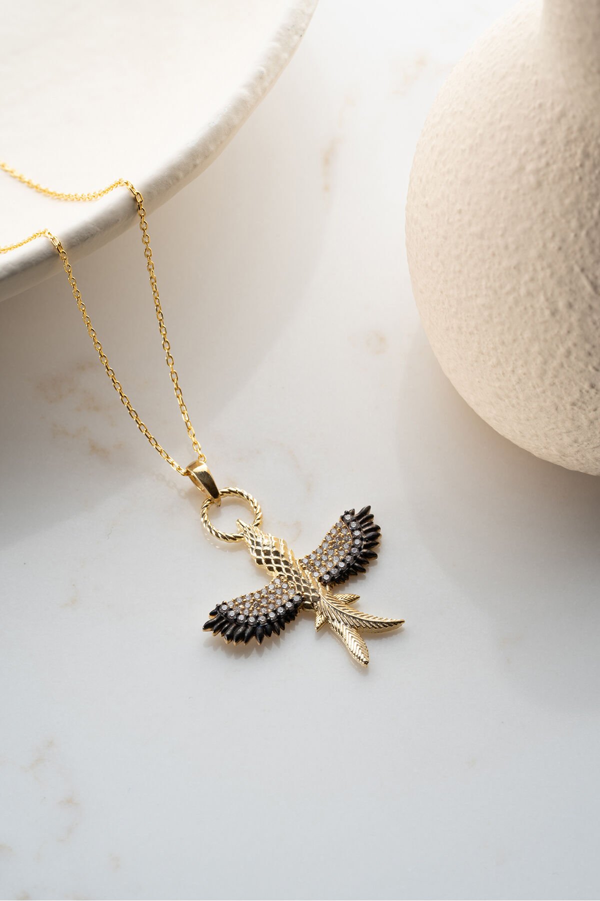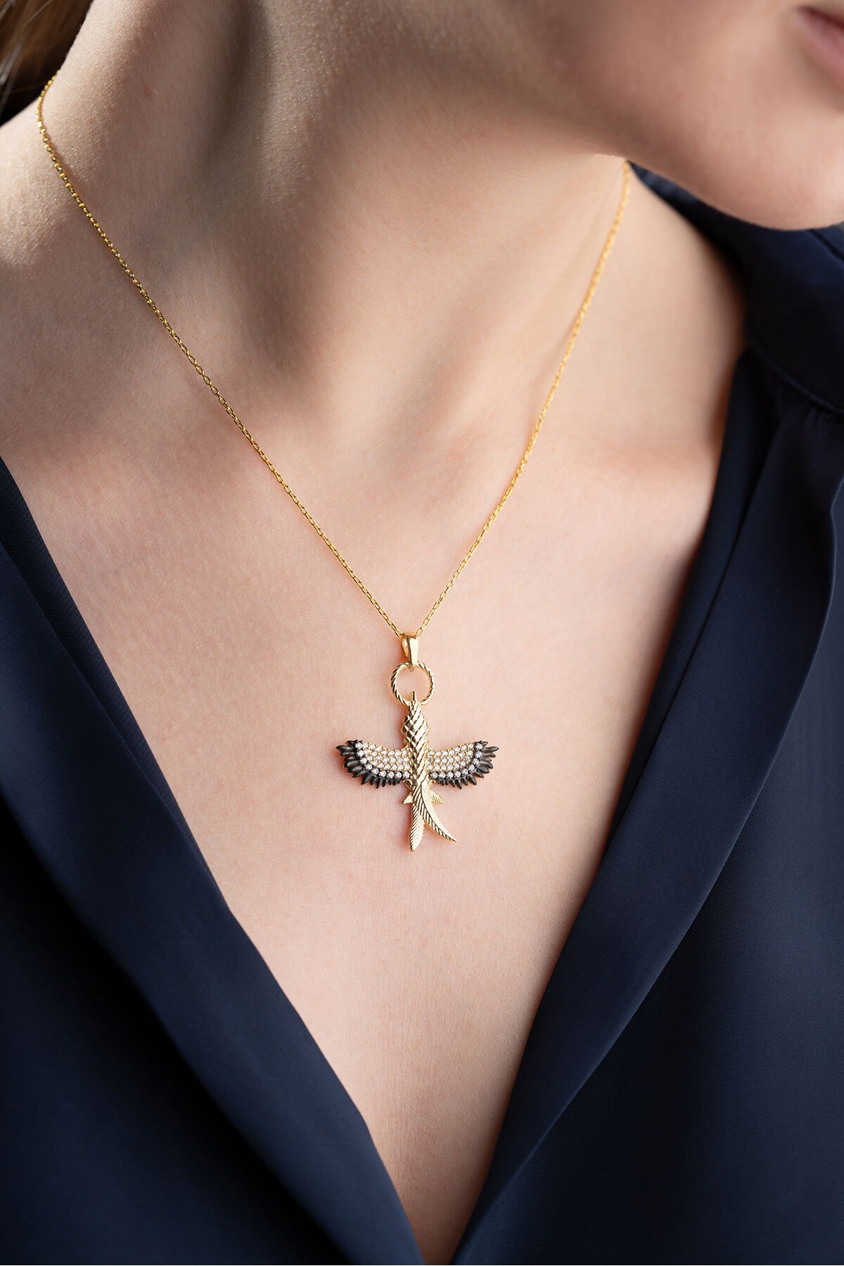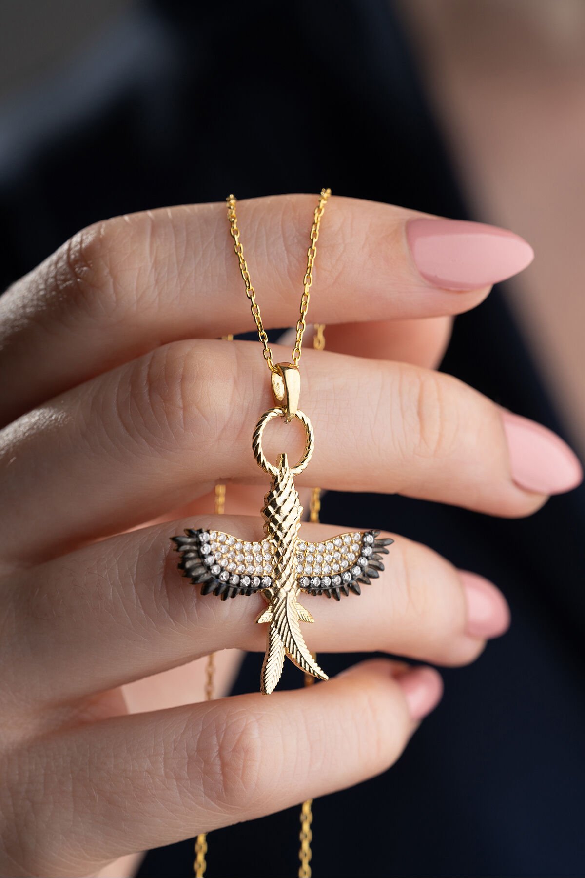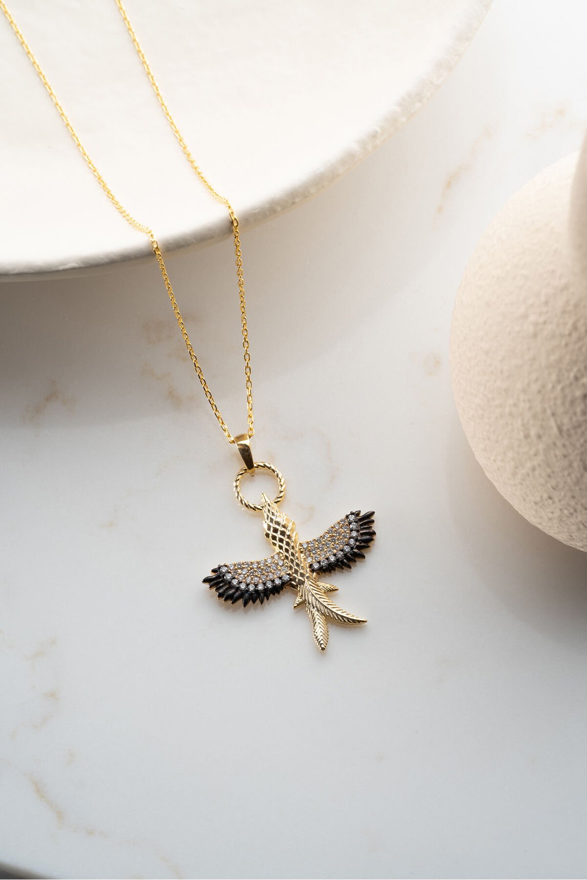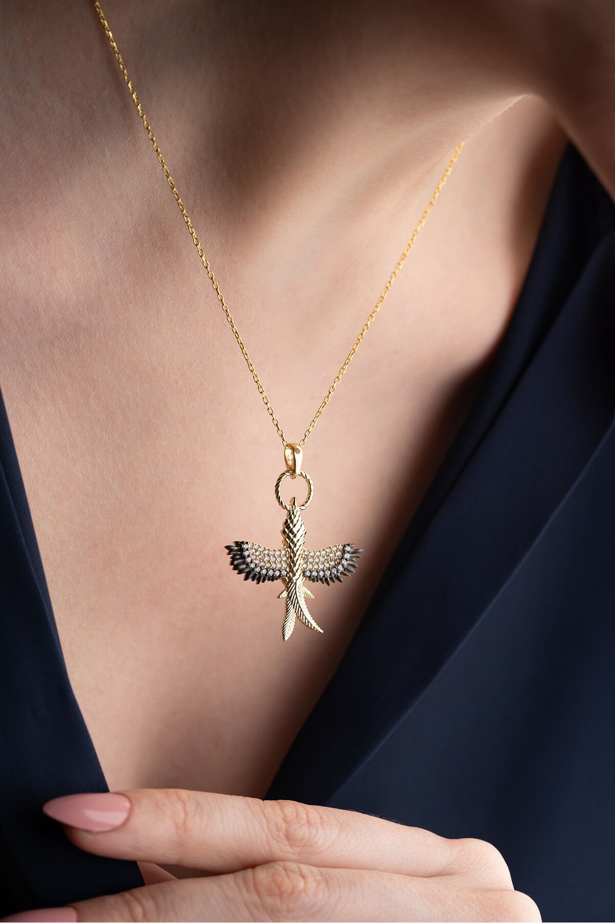 925 Ayar Gümüş Anka Kuşu Gold Kolye