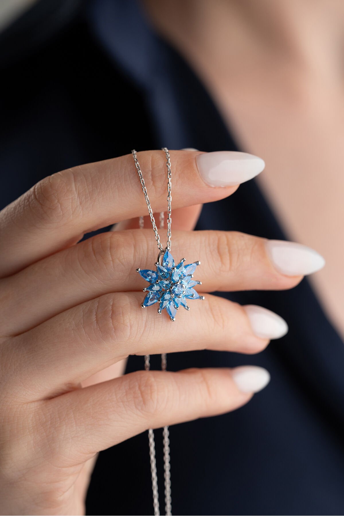 925 Ayar Gümüş Aqua Taşlı Buzlu Lotus Kolye