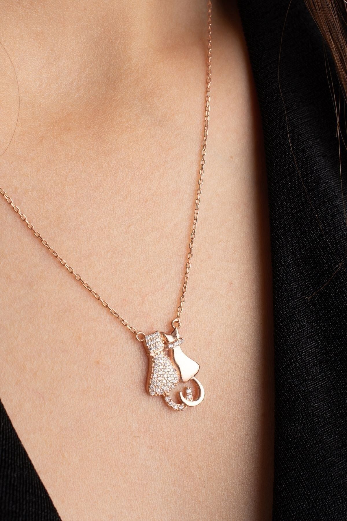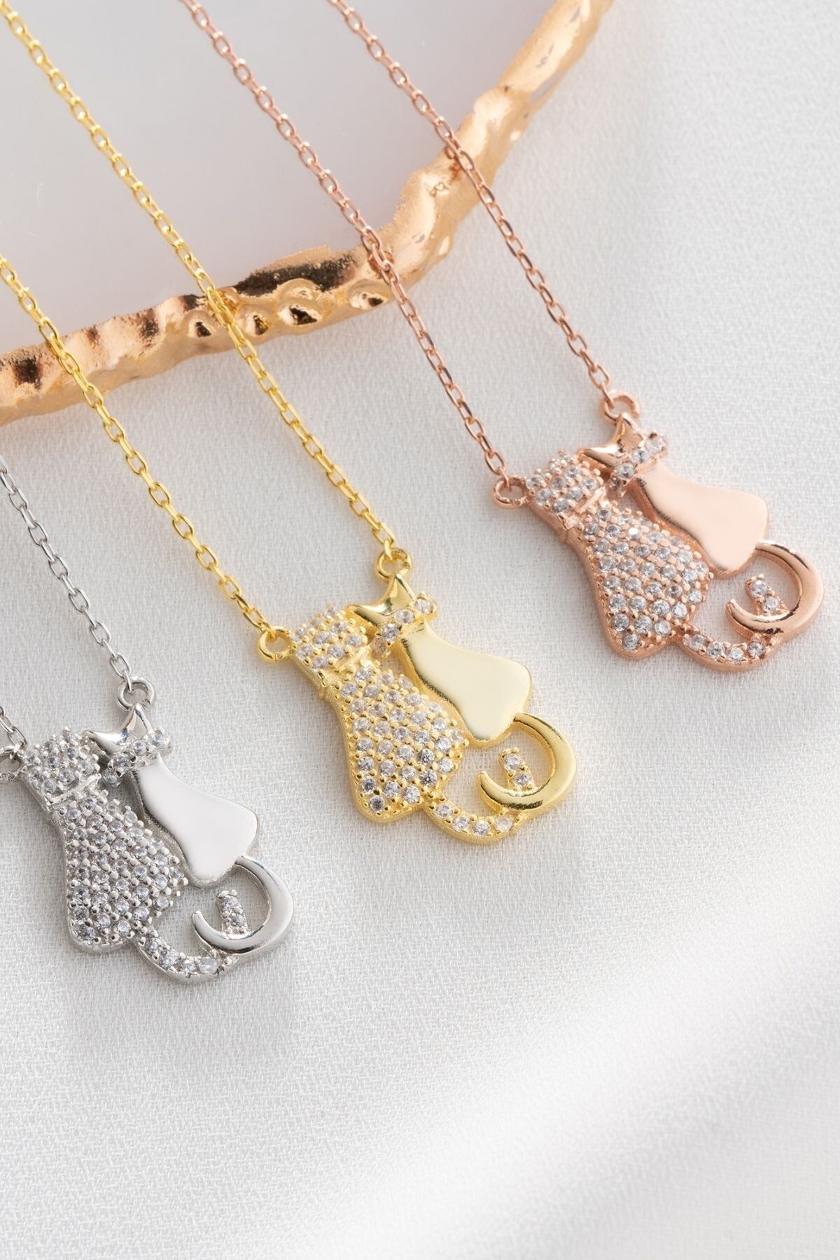 925 Ayar Gümüş Aşık Kedicikler Kolye