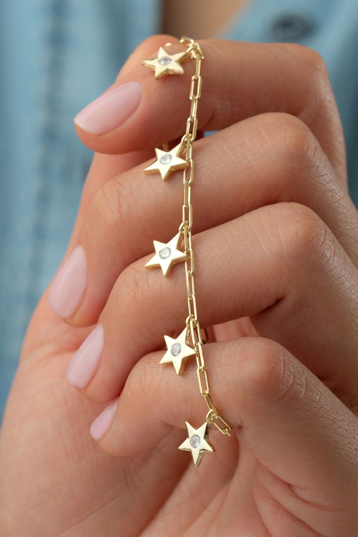 925 Ayar Gümüş Ataç Zincir Yıldız Bileklik