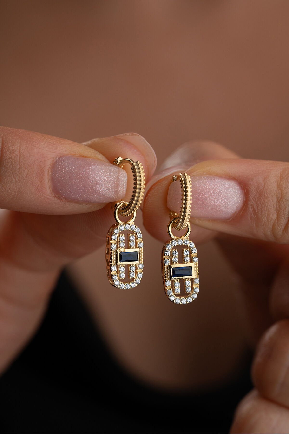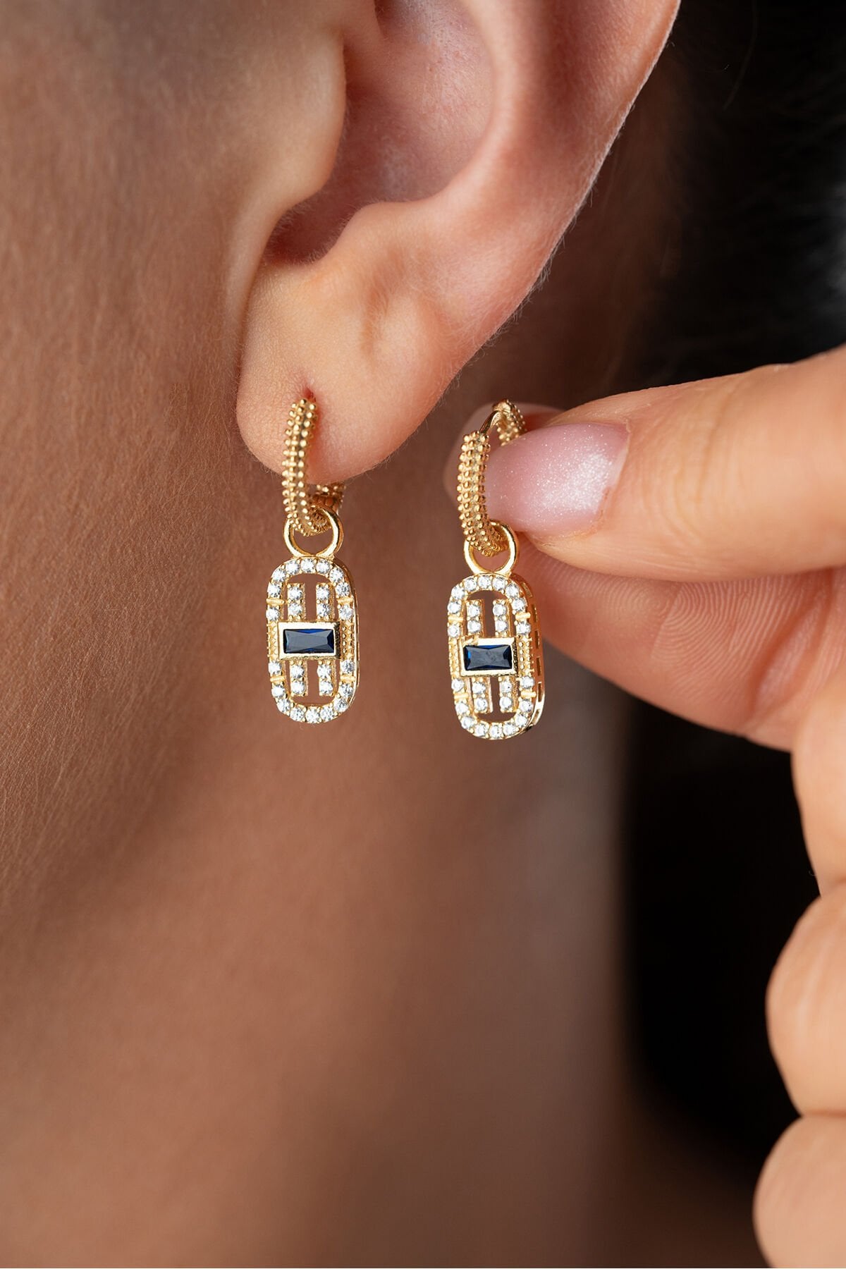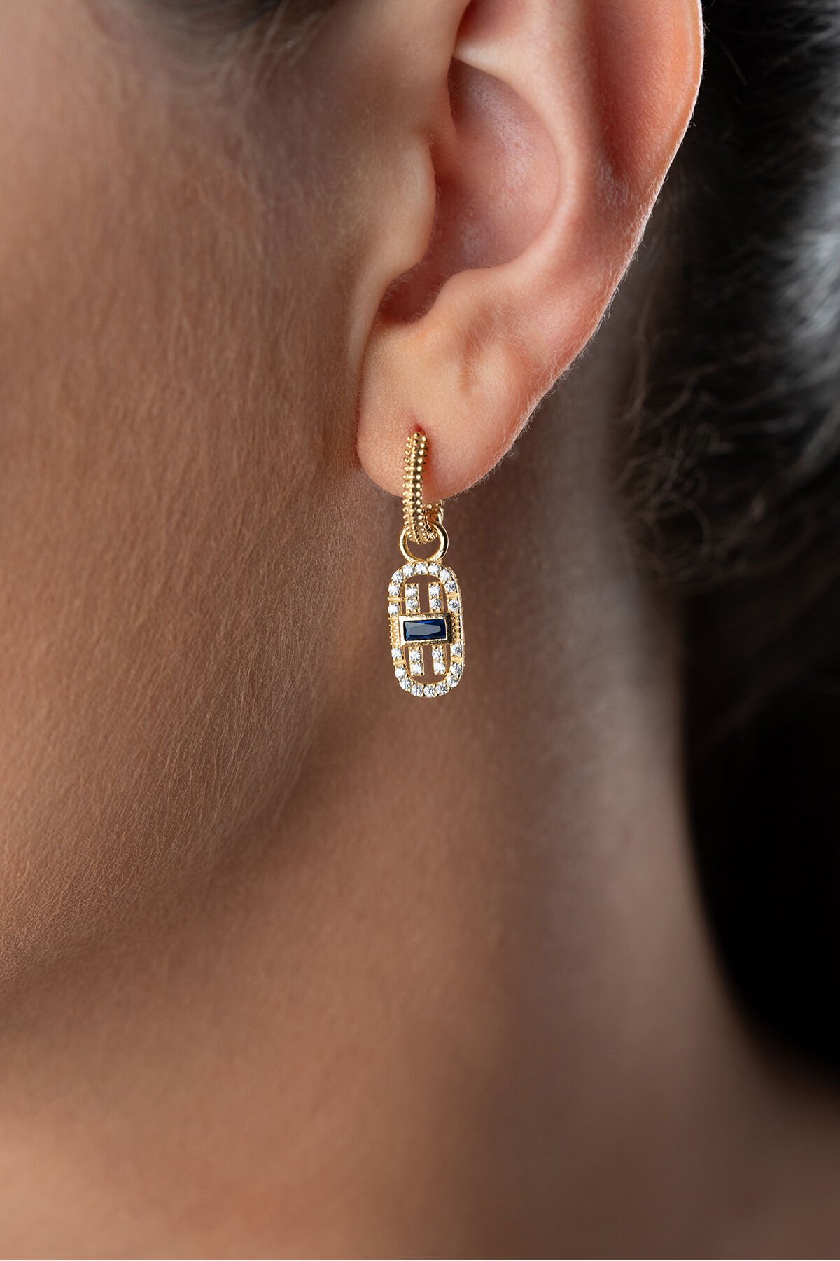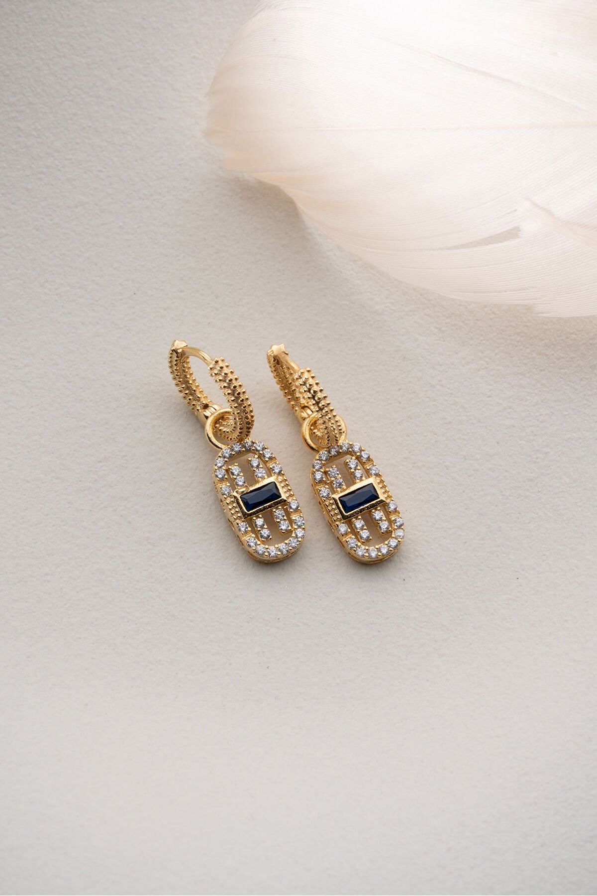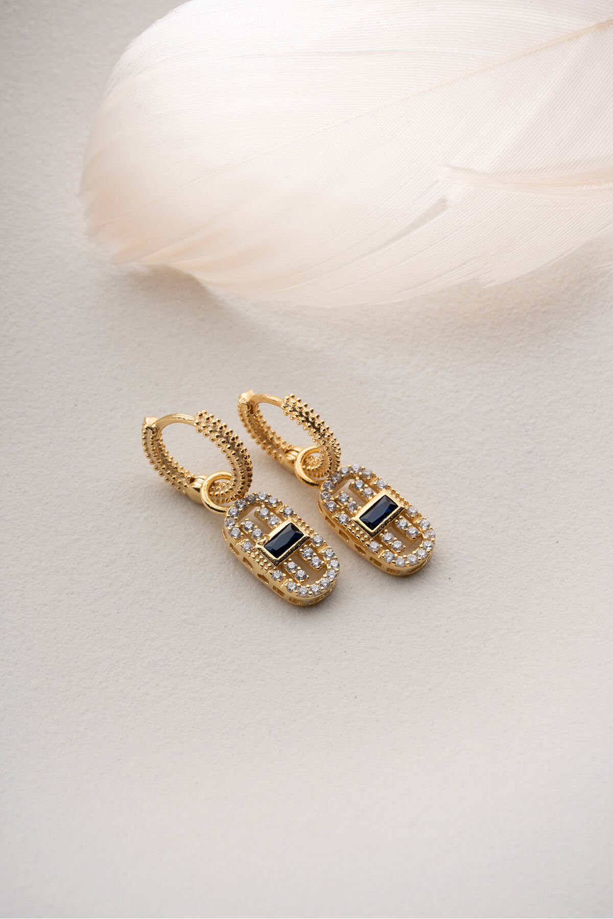 925 Ayar Gümüş Atın Kaplama Safir Taşlı Baget Model Küpe