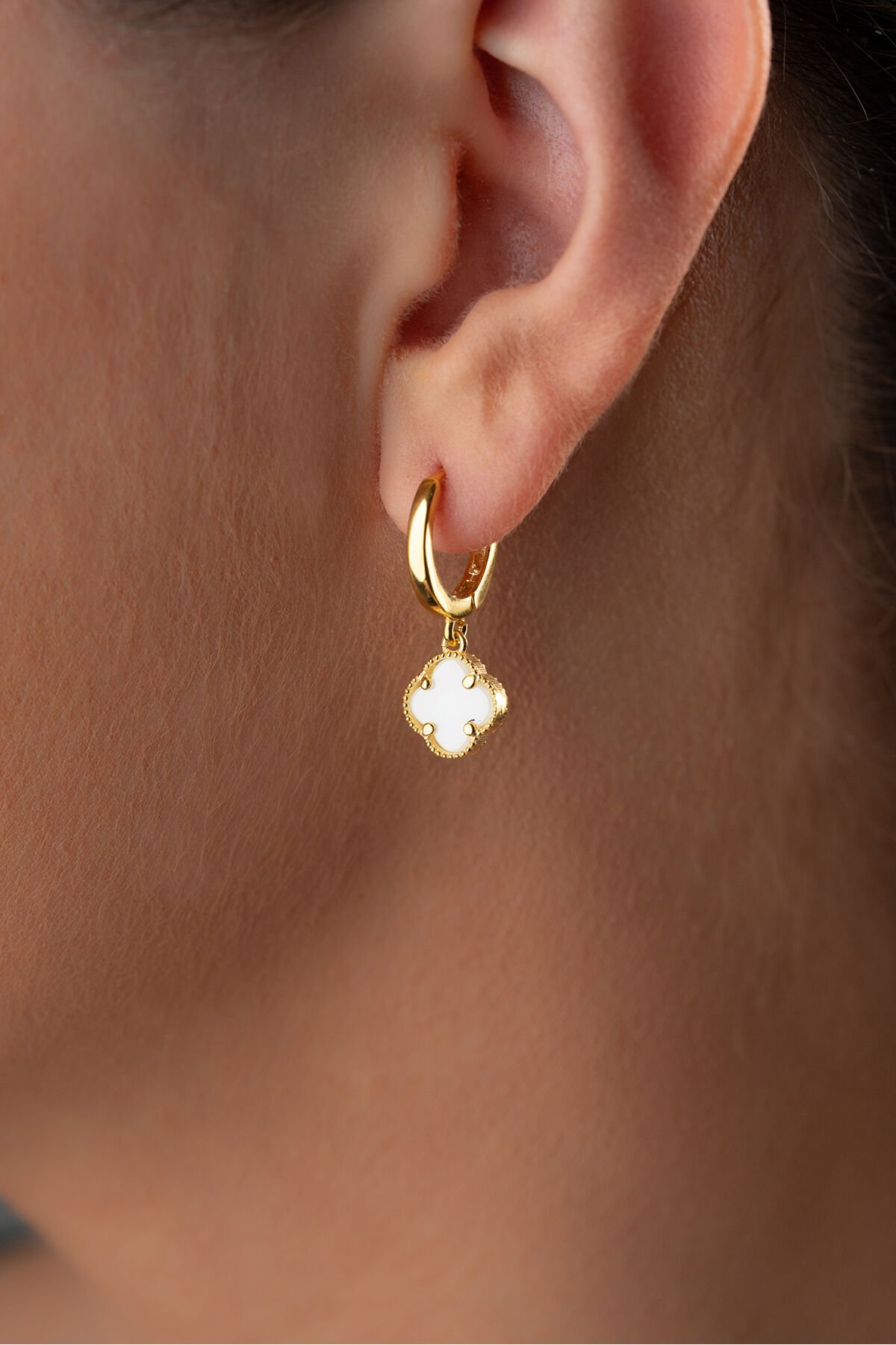 925 Ayar Gümüş Atın Kaplama Yonca Küpe