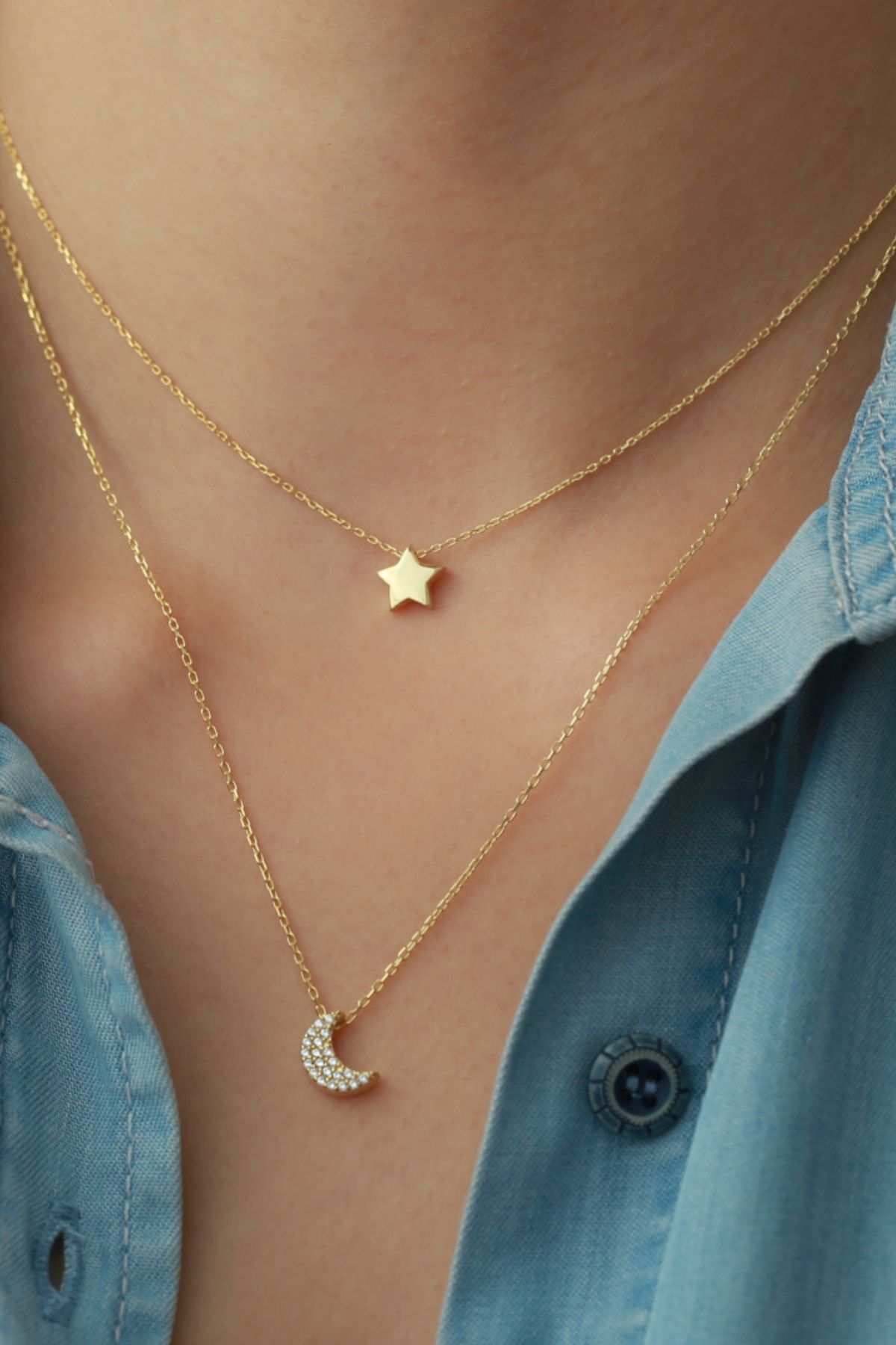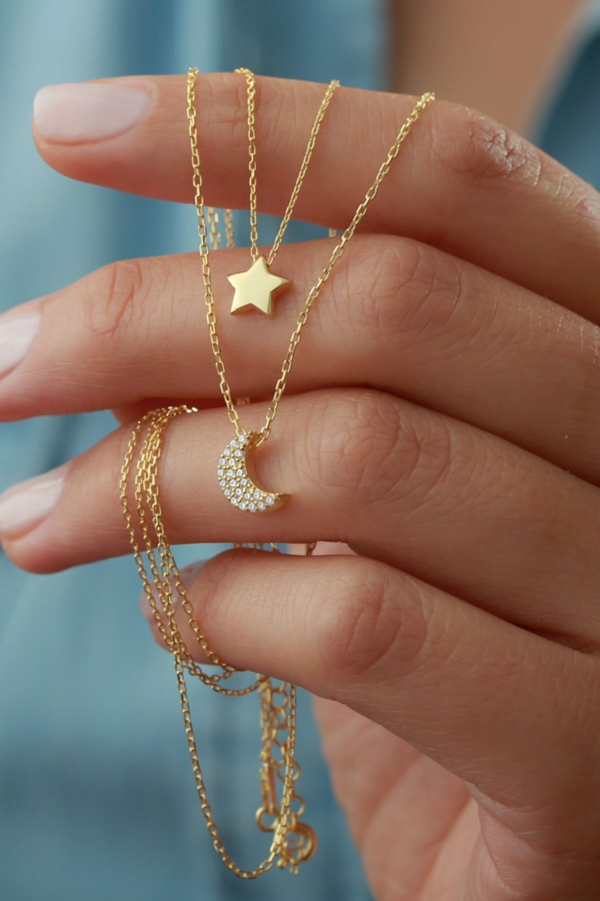 925 Ayar Gümüş Ay Yıldız Çiftli Kolye