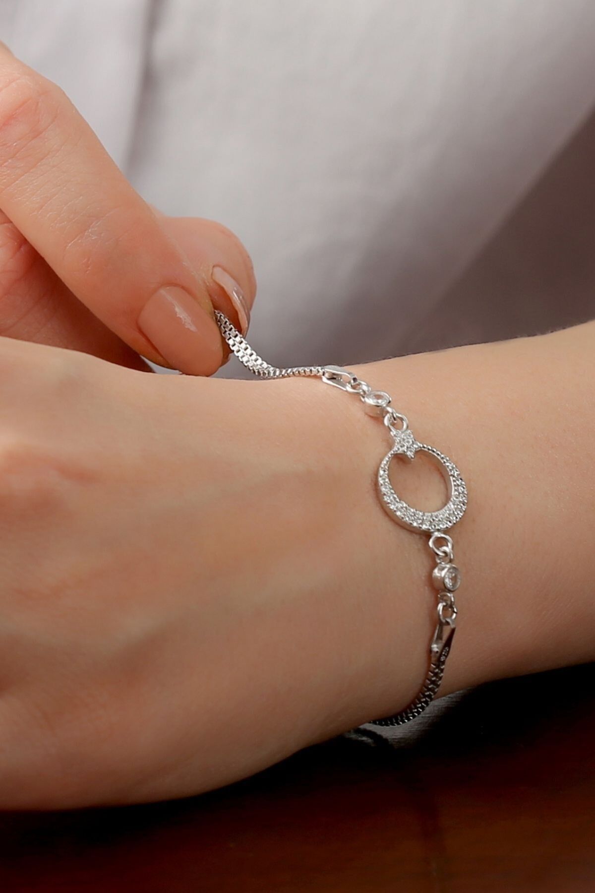 925 Ayar Gümüş Ay Yıldızlı Bileklik