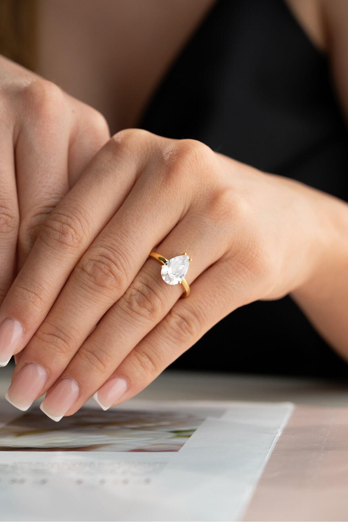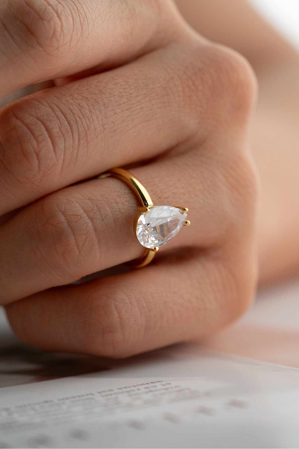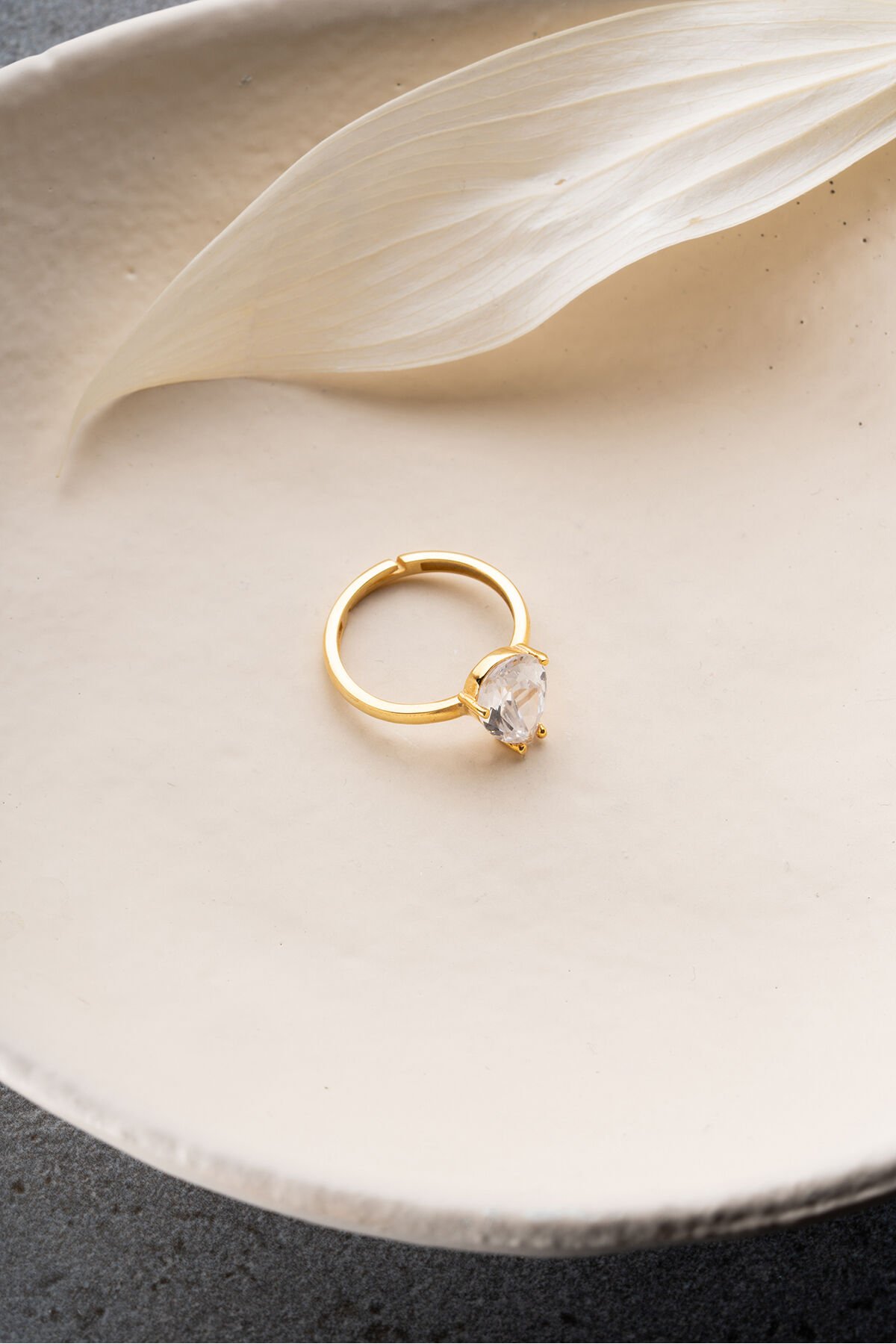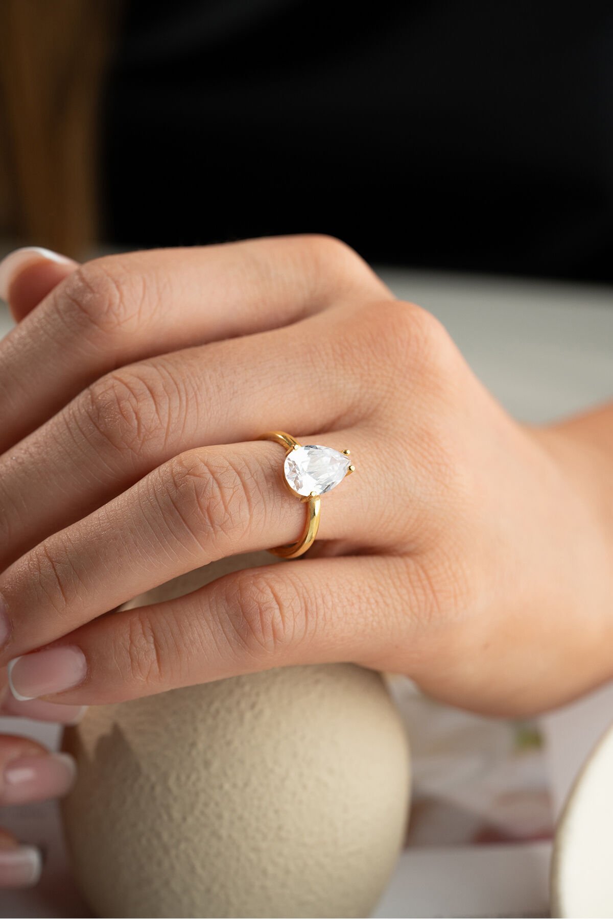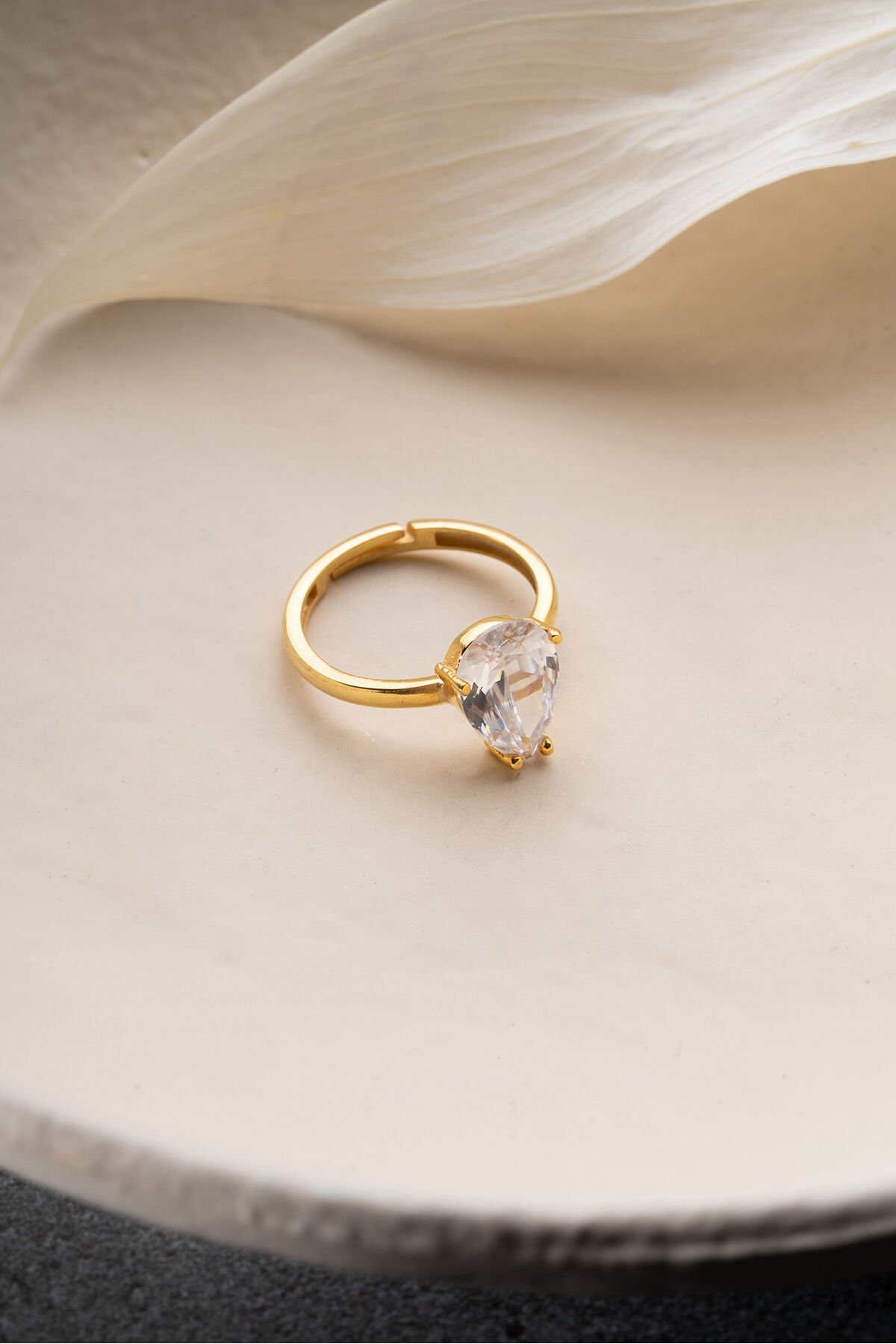 925 Ayar Gümüş Ayarlanabilir Damla Taş Yüzük