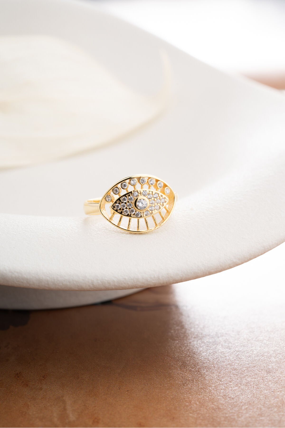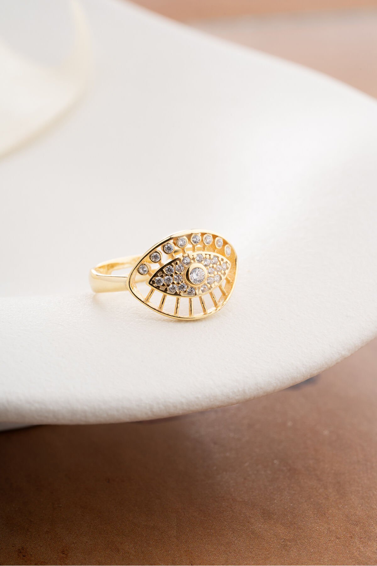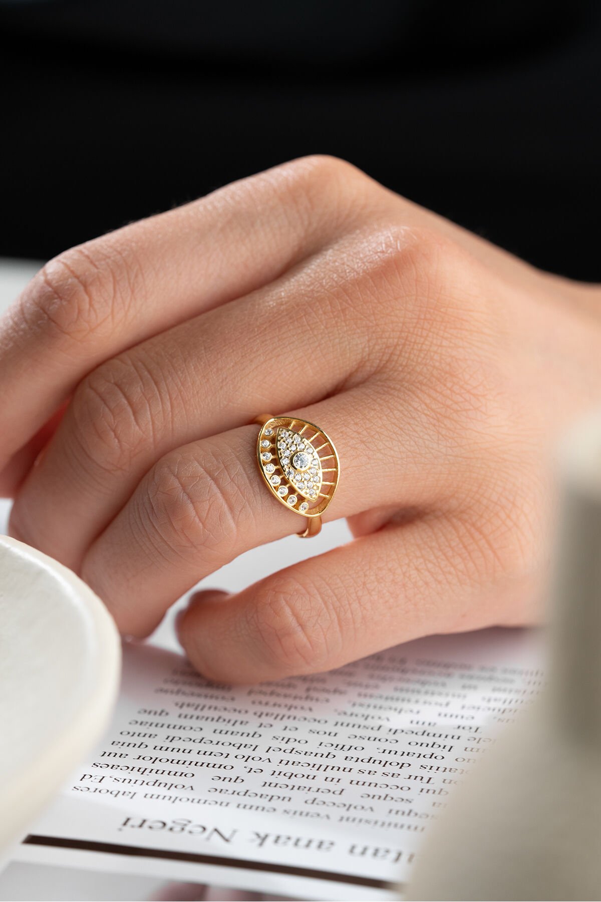 925 Ayar Gümüş Ayarlanabilir Zirkon Taşlı Göz Yüzük
