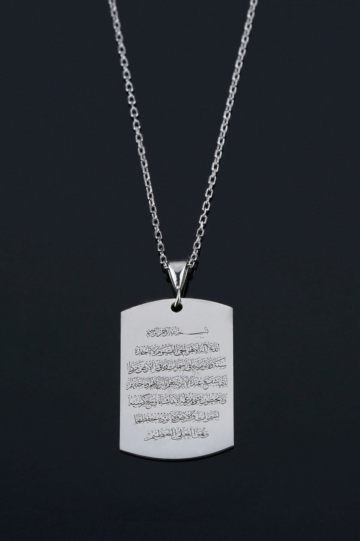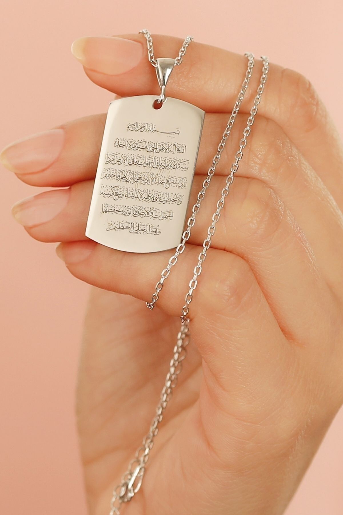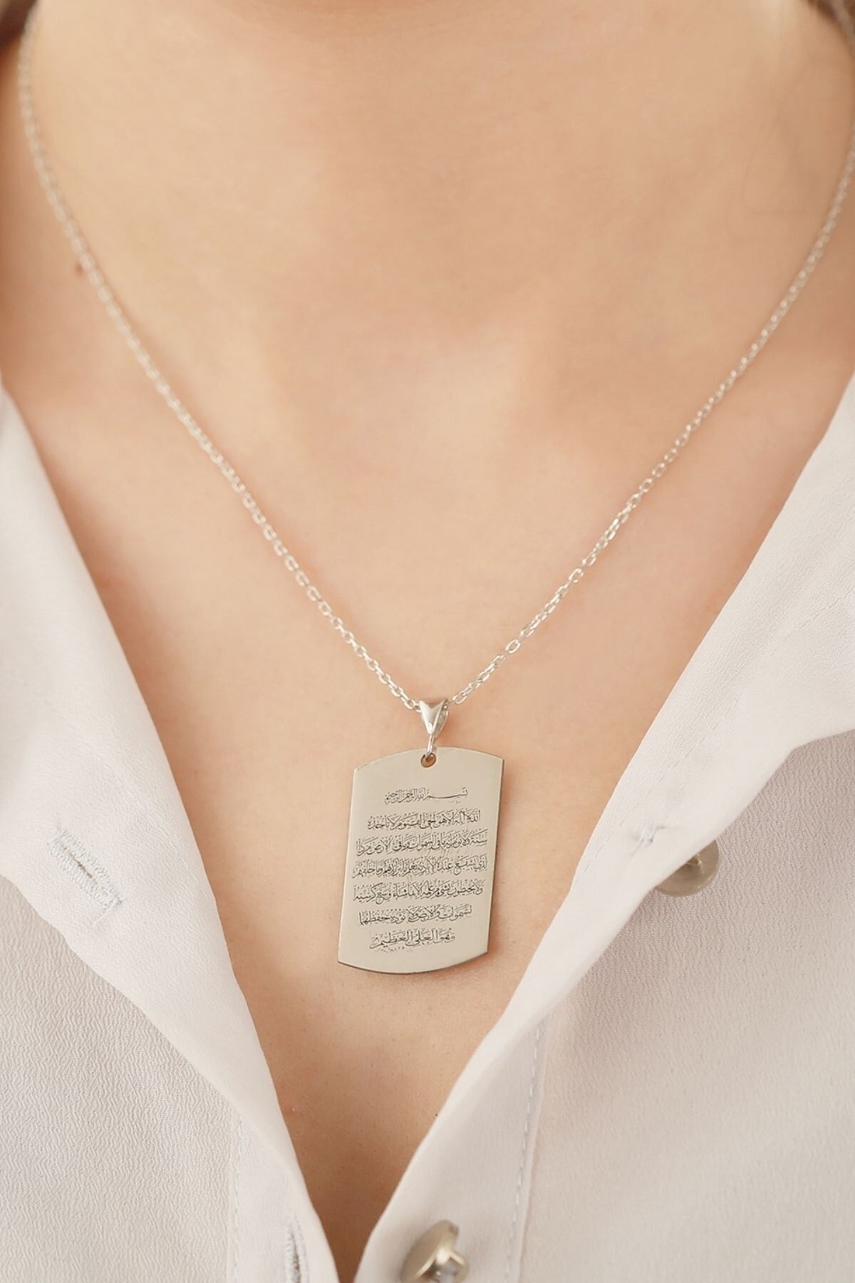 925 Ayar Gümüş Ayetel Kursi Dualı Plaka Kolye
