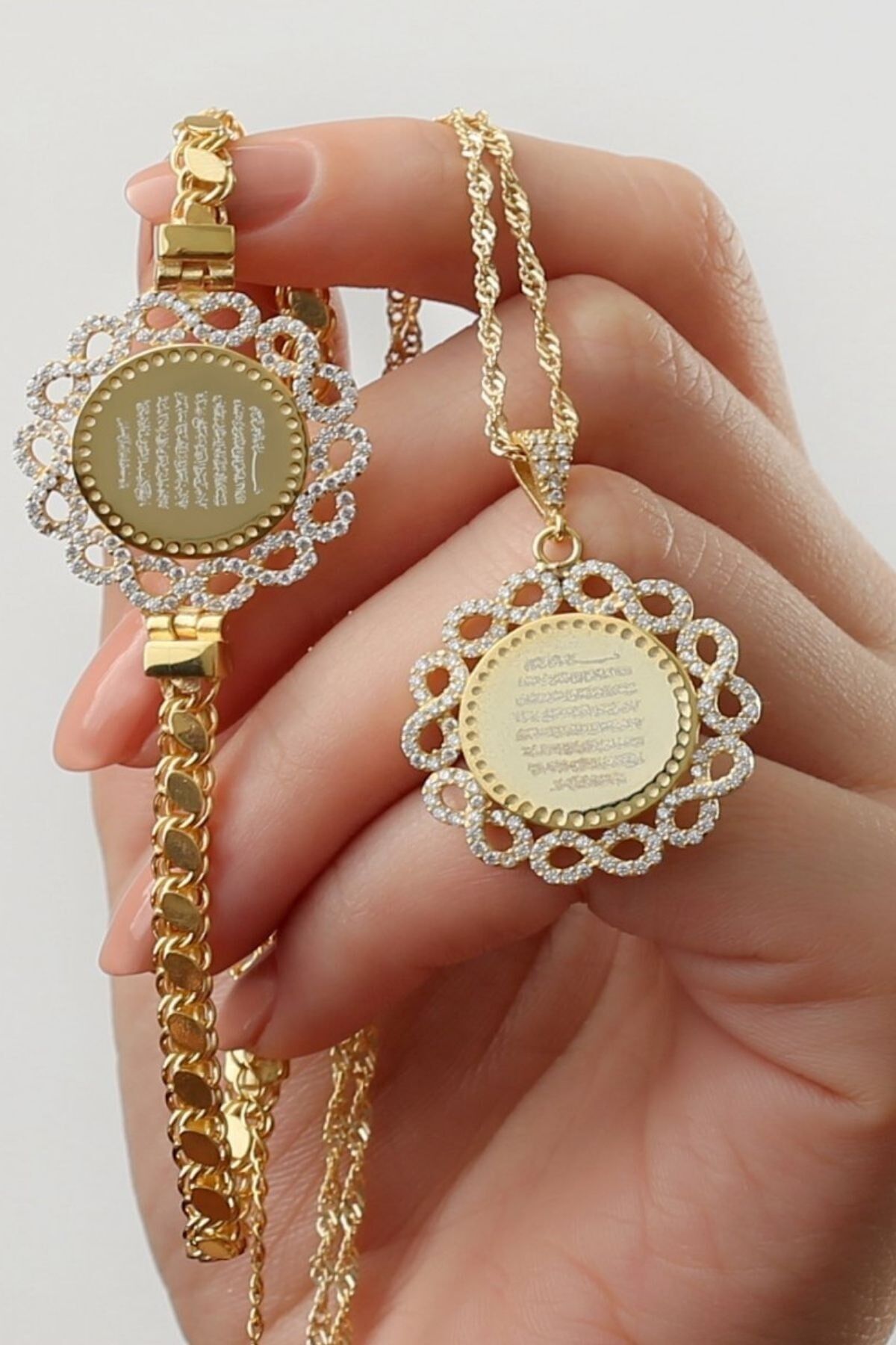 925 Ayar Gümüş Ayetel Kürsi Yazılı Kolye Bileklik Set