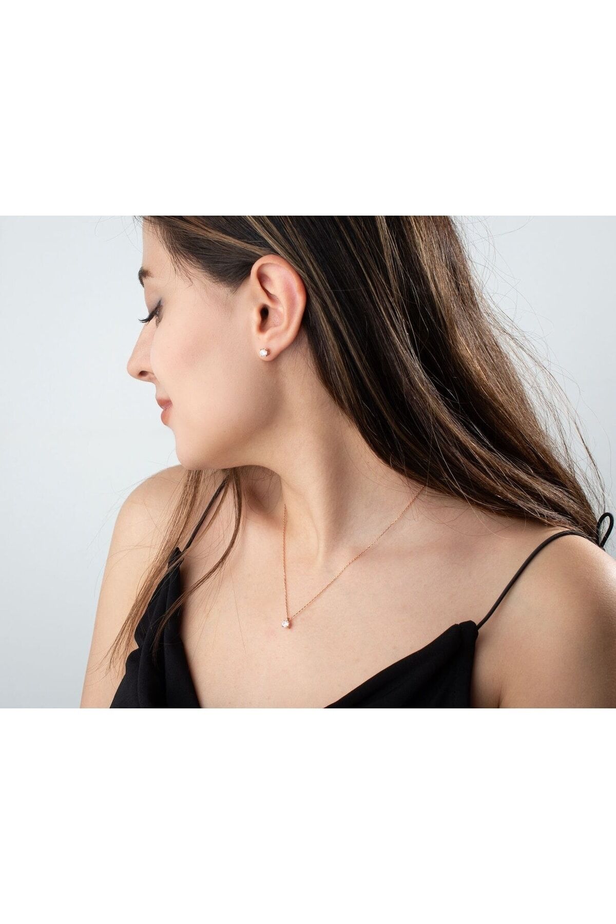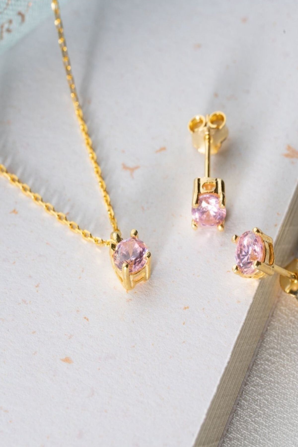 925 Ayar Gümüş Aylara Göre Doğum Taşı Tektaş Kolye - Küpe Seti