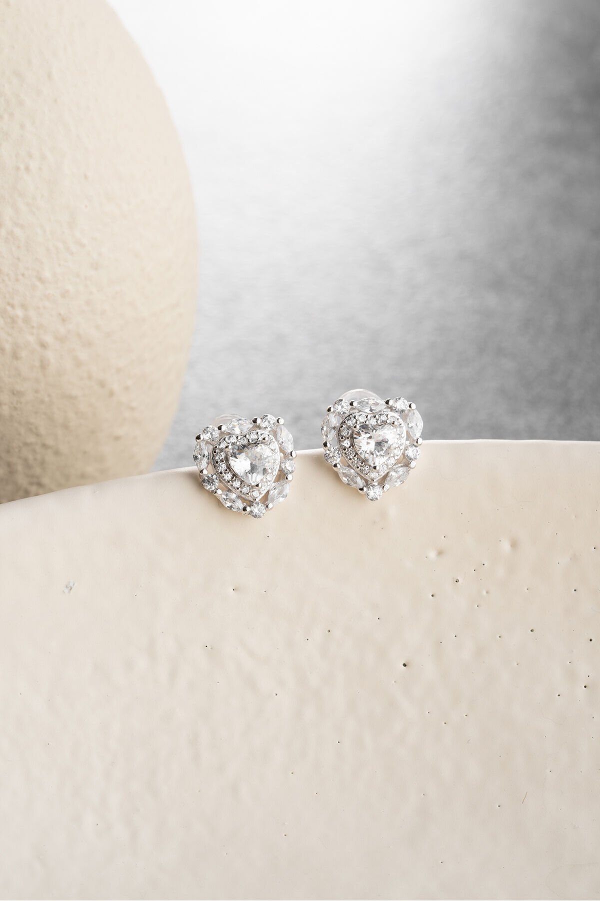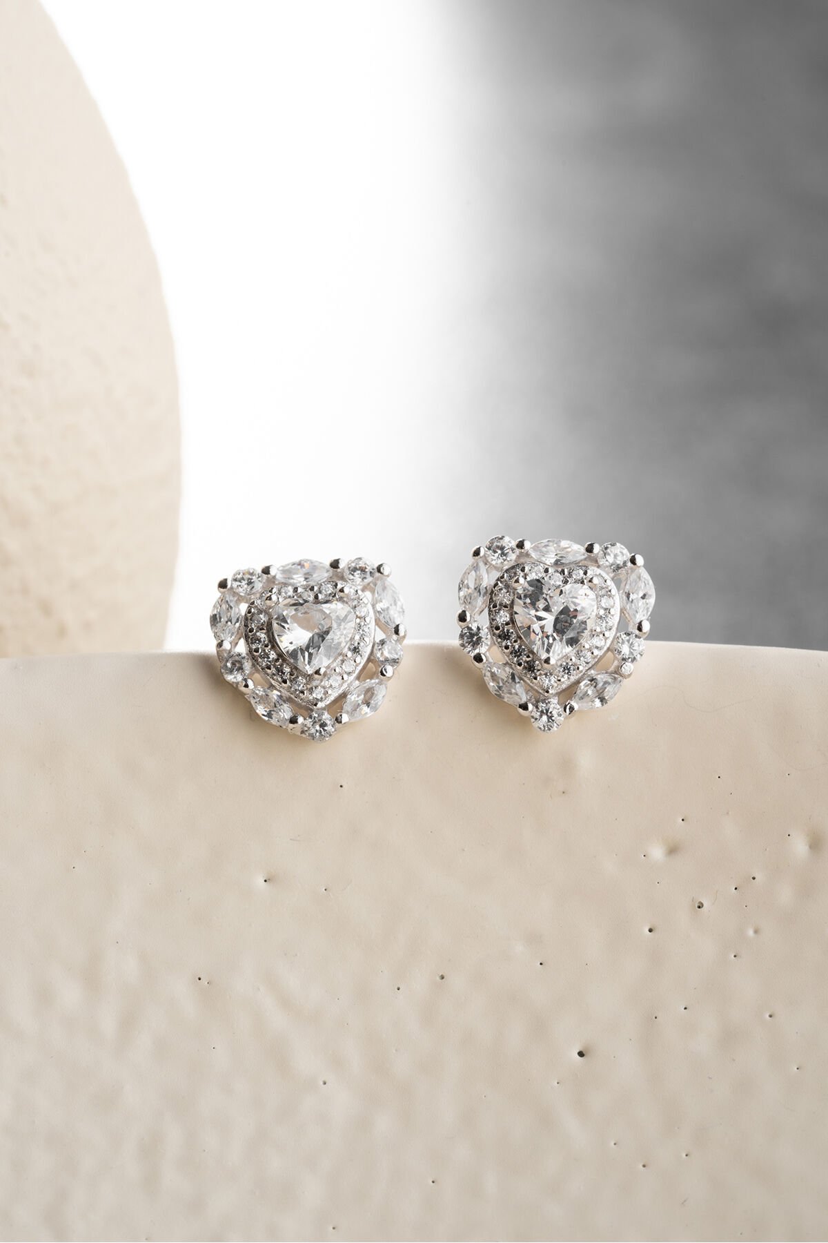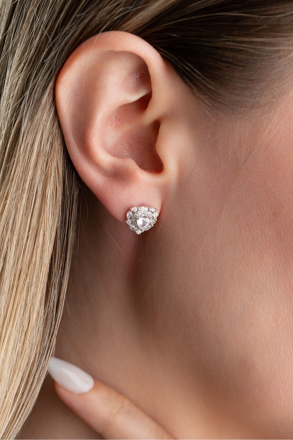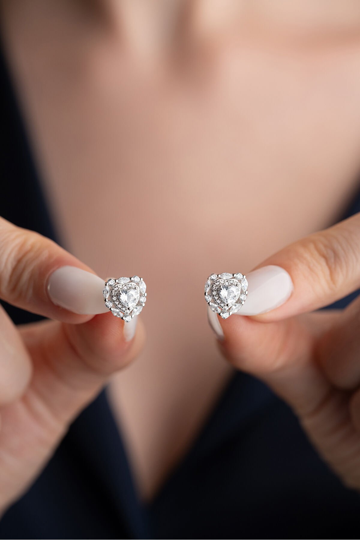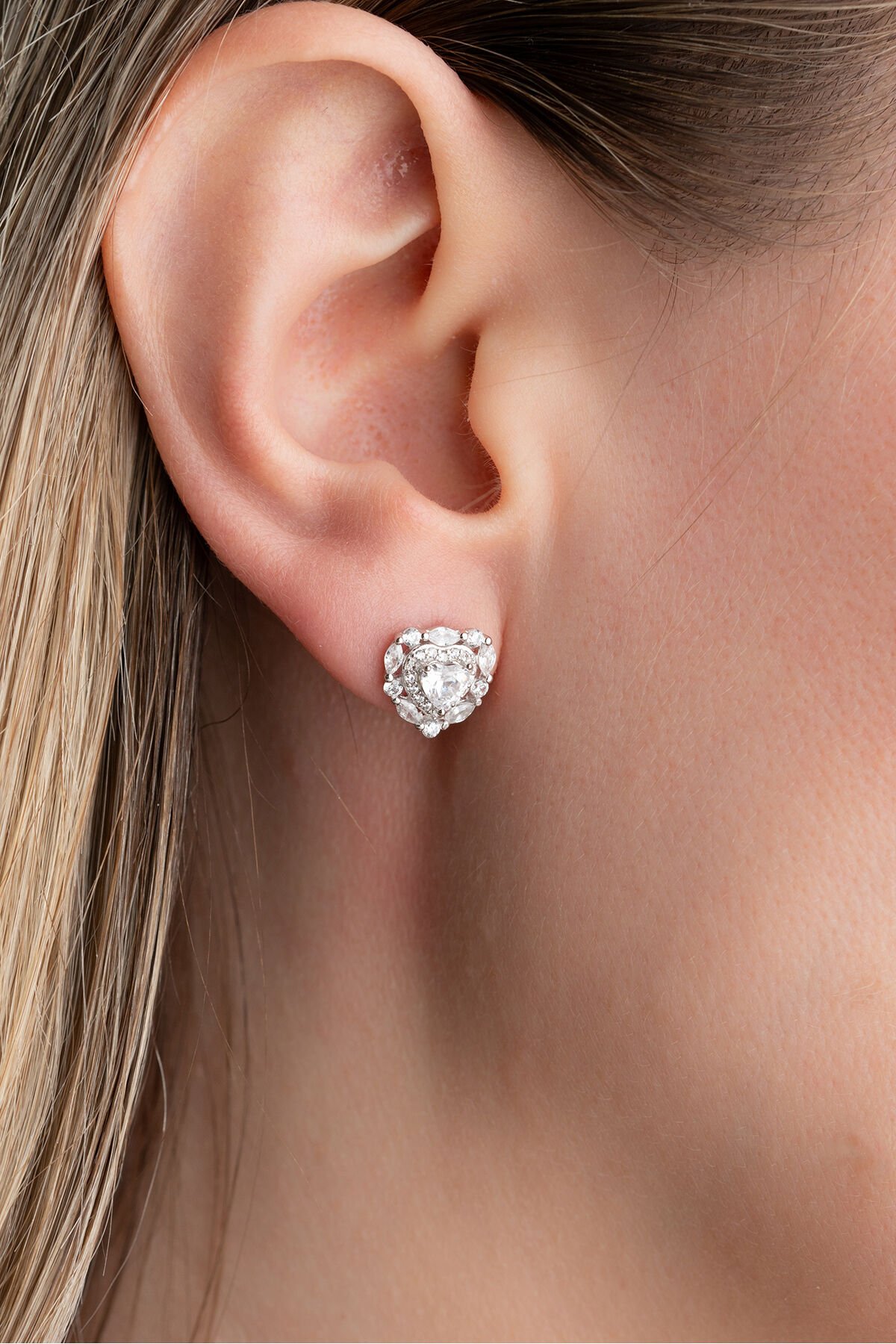 925 Ayar Gümüş Baget Detay Kalp Küpe
